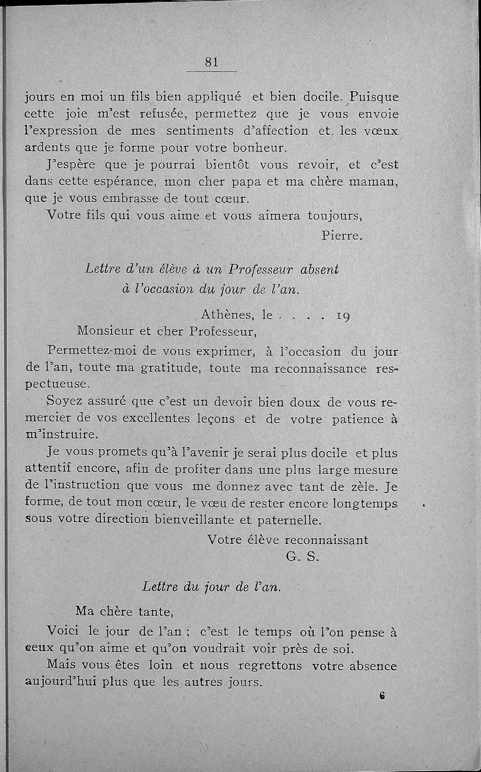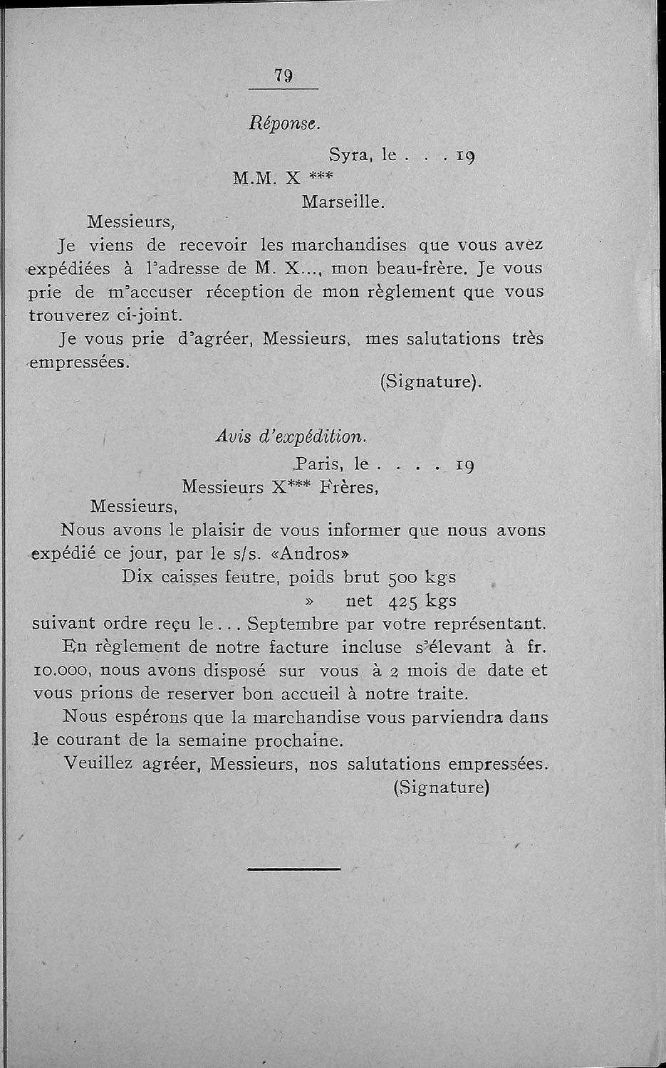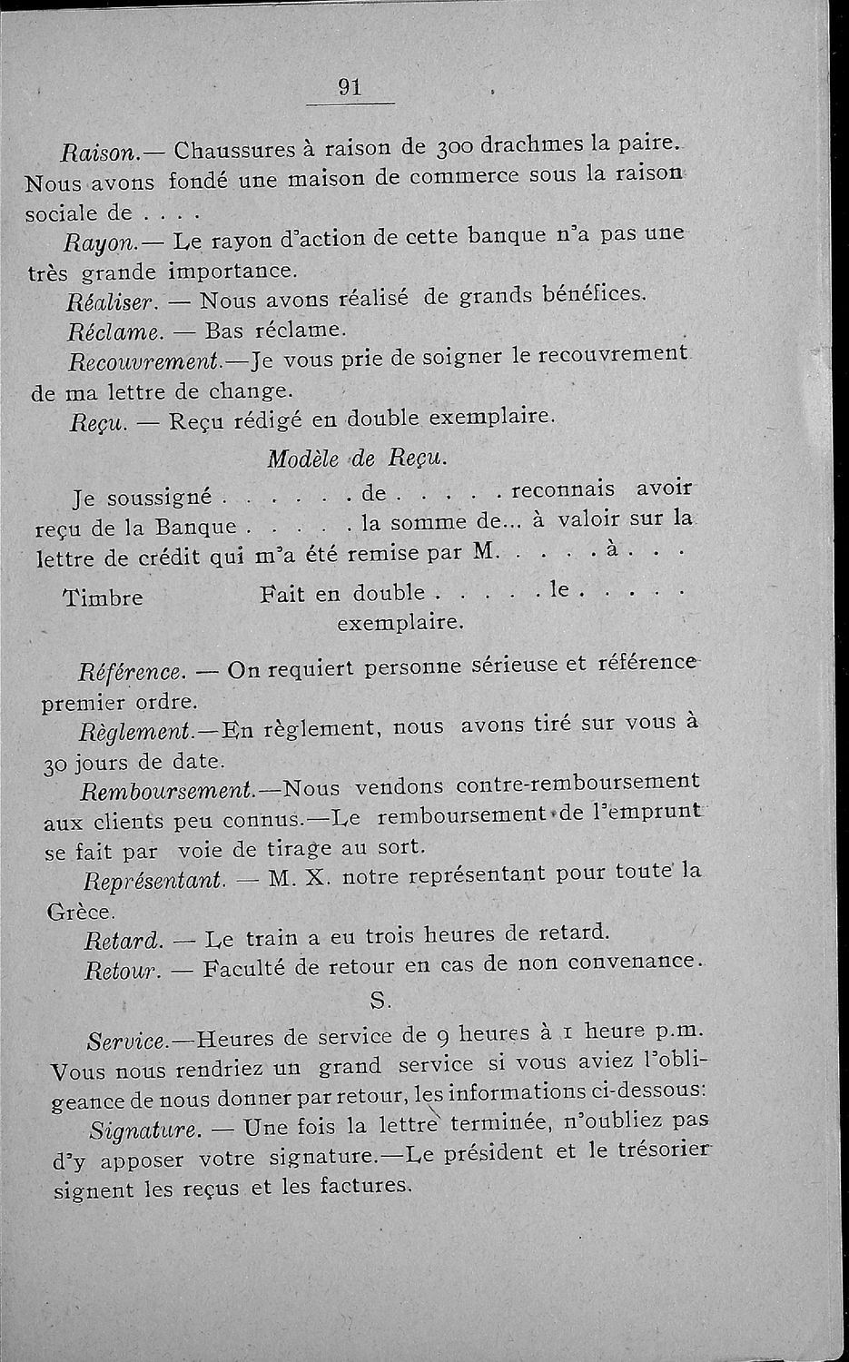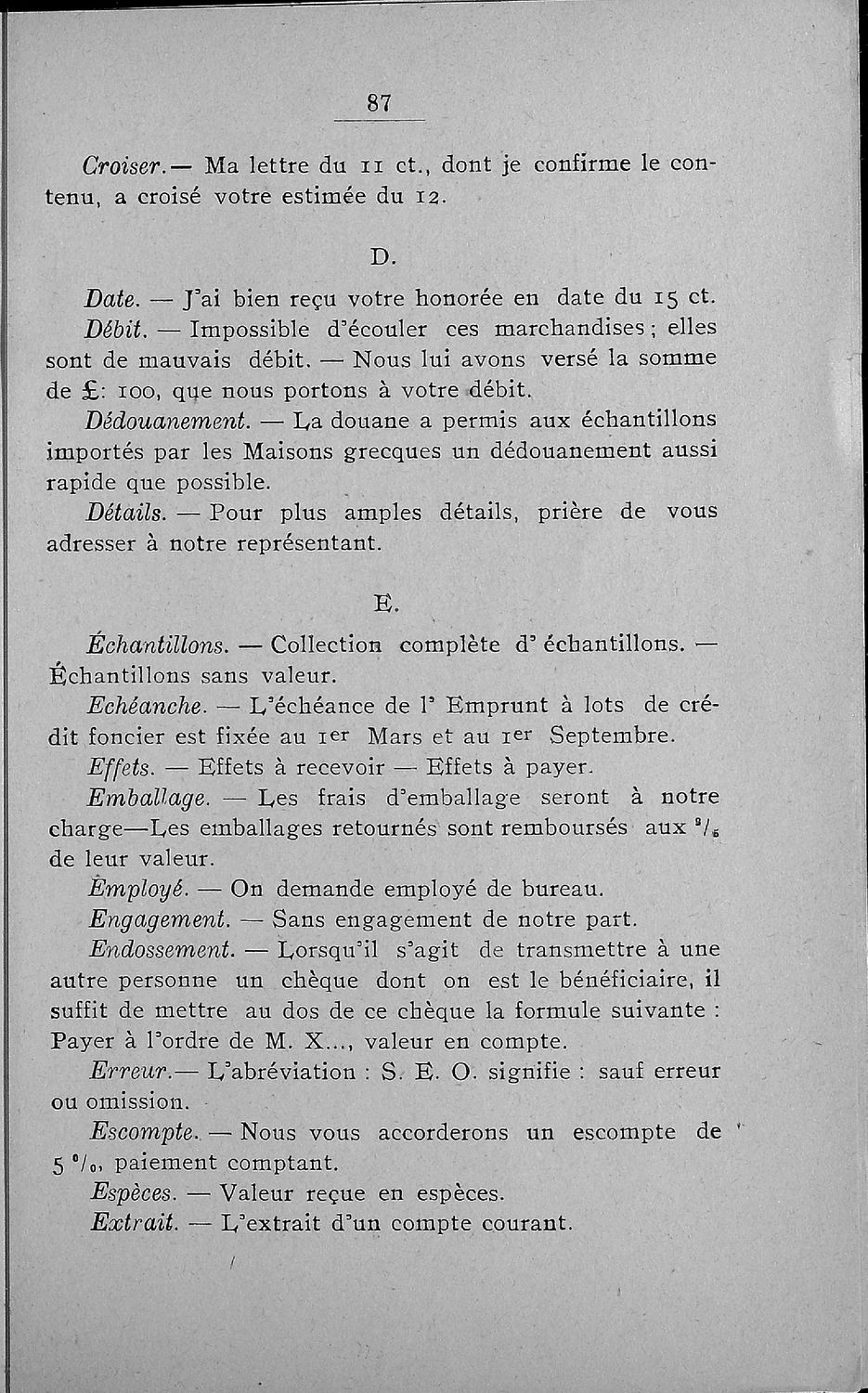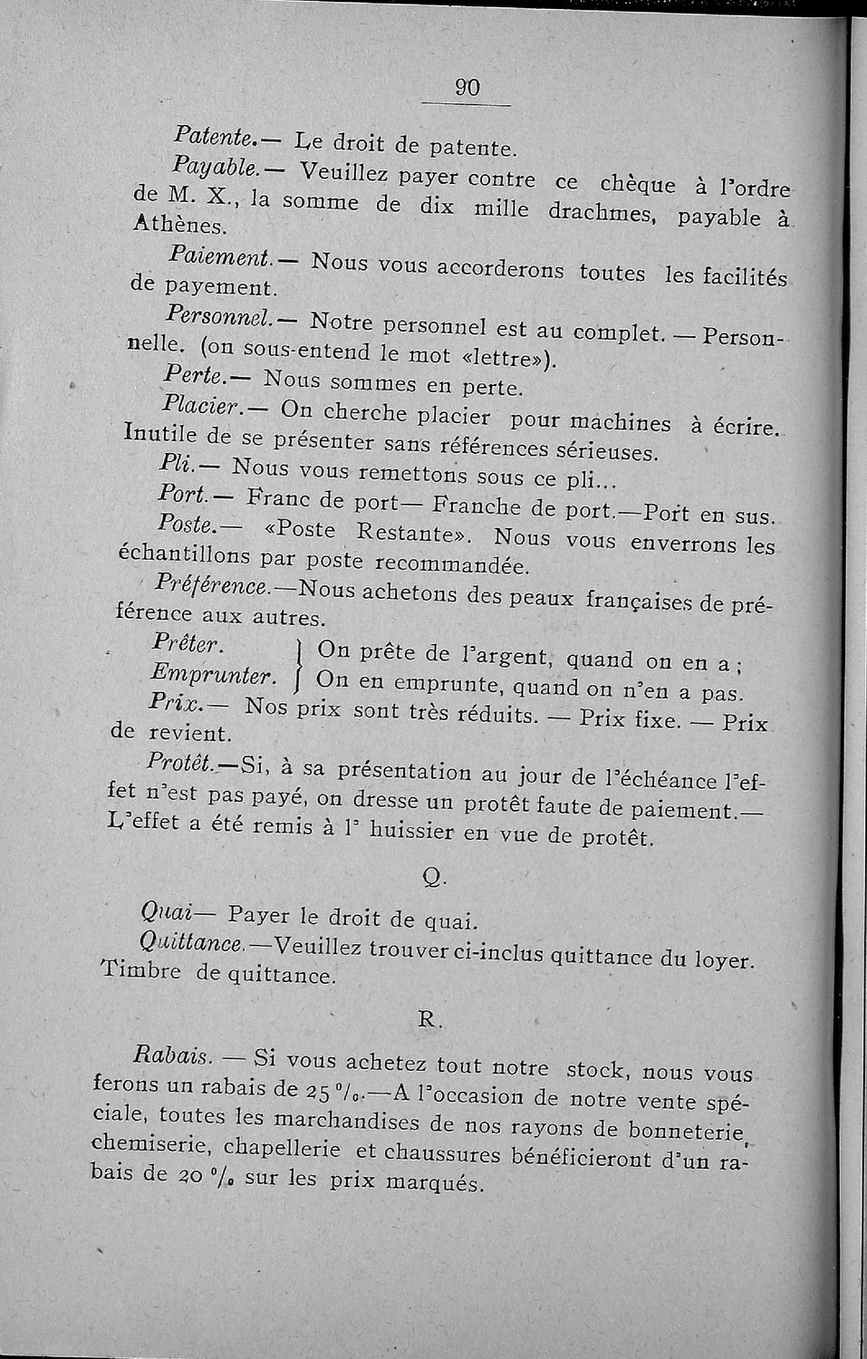 Σχολικό εγχειρίδιο Γαλλικών για τις εμπορικές και πρακτικές σχολές που περιλαμβάνει γραμματική, ασκήσεις και υποδείγματα εμπορικών επιστολών. Ο συγγραφέας ήταν καθηγητής στην Γ’ Δημόσια Εμπορική Σχολή Αθηνών.