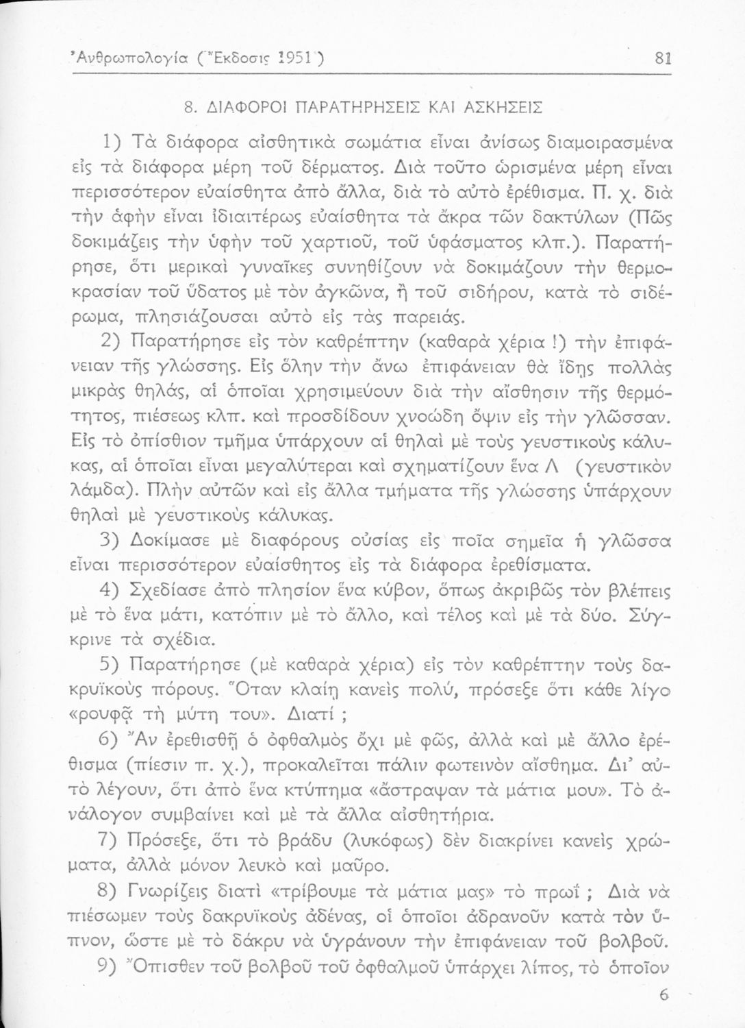 LDR 01150 2200193 4500 035 ## _a01-18334 040 ## _aΙνστιτούτο Εκπαιδευτικής Πολιτικής 041 ## _ael 100 ## _aΕυαγόρας Μ. Παντελούρης 110 ## _a18334 245 0# _aΑνθρωπολογία 260 ## _aΑθήνα _bΟργανισμός Εκδόσεως Σχολικών Βιβλίων _c1951 300 ## _a107 _bΣκίτσα (ασπρόμαυρα) 520 ## _aΣχολικό εγχειρίδιο Ανθρωπολογίας Δ΄ Γυμνασίου που εστιάζει στην κατασκευή, ανάπτυξη και λειτουργία του ανθρώπινου οργανισμού, και τη σχέση του ανθρώπου με το φυσικό περιβάλλον. Περιέχει και αναφορά στις ανθρώπινες φυλές. 521 ## _aΔ' Γυμνασίου 522 ## _aΕλλάδα 546 ## _aΑπλή καθαρεύουσα 563 ## _aΣκληρό Εξώφυλλο 650 #4 _aΑισθήσεις _aΚαρδιά _aΟργανισμός _aΟφθαλμός _aΠνεύμονας _aΣκελετός
