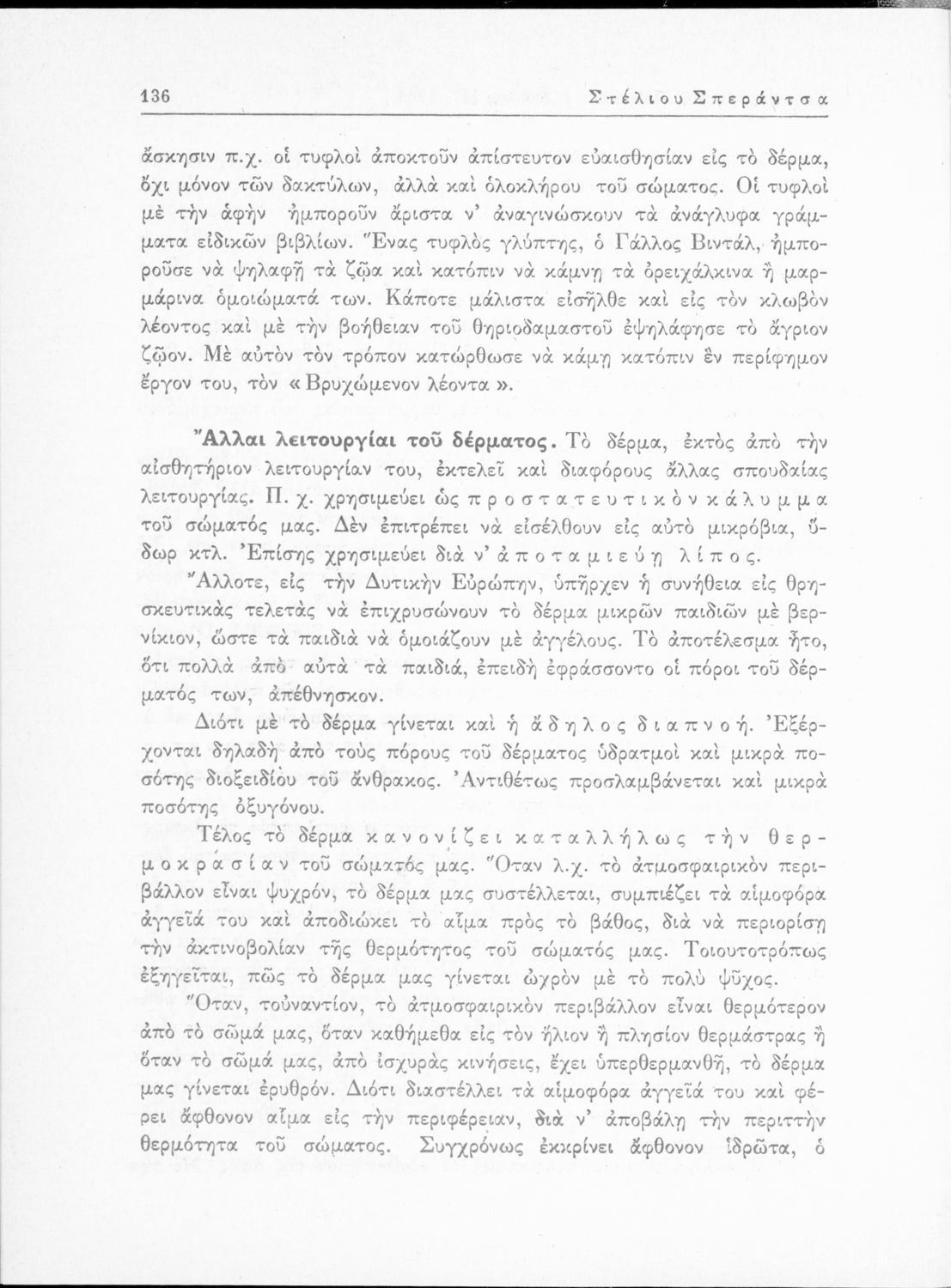LDR 01314 2200217 4500 035 ## _a01-18335 040 ## _aΙνστιτούτο Εκπαιδευτικής Πολιτικής 041 ## _ael 100 ## _aΣτέλιος Σπεράντσας _aΚ. Καυκής (επιμέλεια) 110 ## _a18335 245 0# _aΣωματολογία του ανθρώπου μετά στοιχείων υγιεινής δια την Ε΄ Τάξιν των Εξαταξίων Γυμνασίων 250 ## _a13η Έκδοση 260 ## _aΑθήνα _bΟργανισμός Εκδόσεως Διδακτικών Βιβλίων _c1963 300 ## _a171 _bΣκίτσα (ασπρόμαυρα) 520 ## _aΣχολικό εγχειρίδιο Ανθρωπολογίας για την Ε΄ τάξη των Εξαταξίων Γυμνασίων που εστιάζει στην ανατομία και φυσιολογία του ανθρώπινου σώματος καθώς και στα μικρόβια και νοσήματα. 521 ## _aΕ' Γυμνασίου 522 ## _aΕλλάδα 546 ## _aΔημοτική 563 ## _aΣκληρό Εξώφυλλο 583 ## _a1157/2-3-1963 _c1963 650 #4 _aΑίμα _aΑκοή _aΑναπνοή _aΚαρδιά _aΝεύρα _aΟστά _aΠεπτικό σύστημα _aΣκελετός