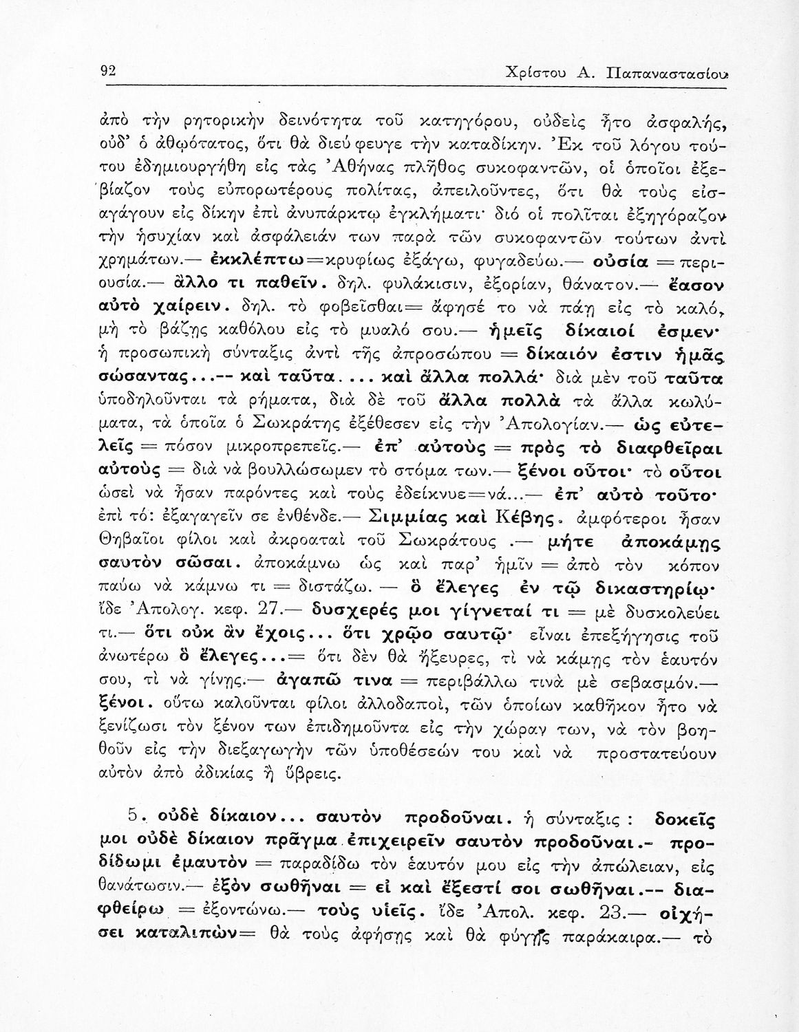 Παιδαγωγικό βοήθημα Αρχαίων Ελληνικών που περιέχει μετάφραση της Απολογίας του Σωκράτη του Πλάτωνα.