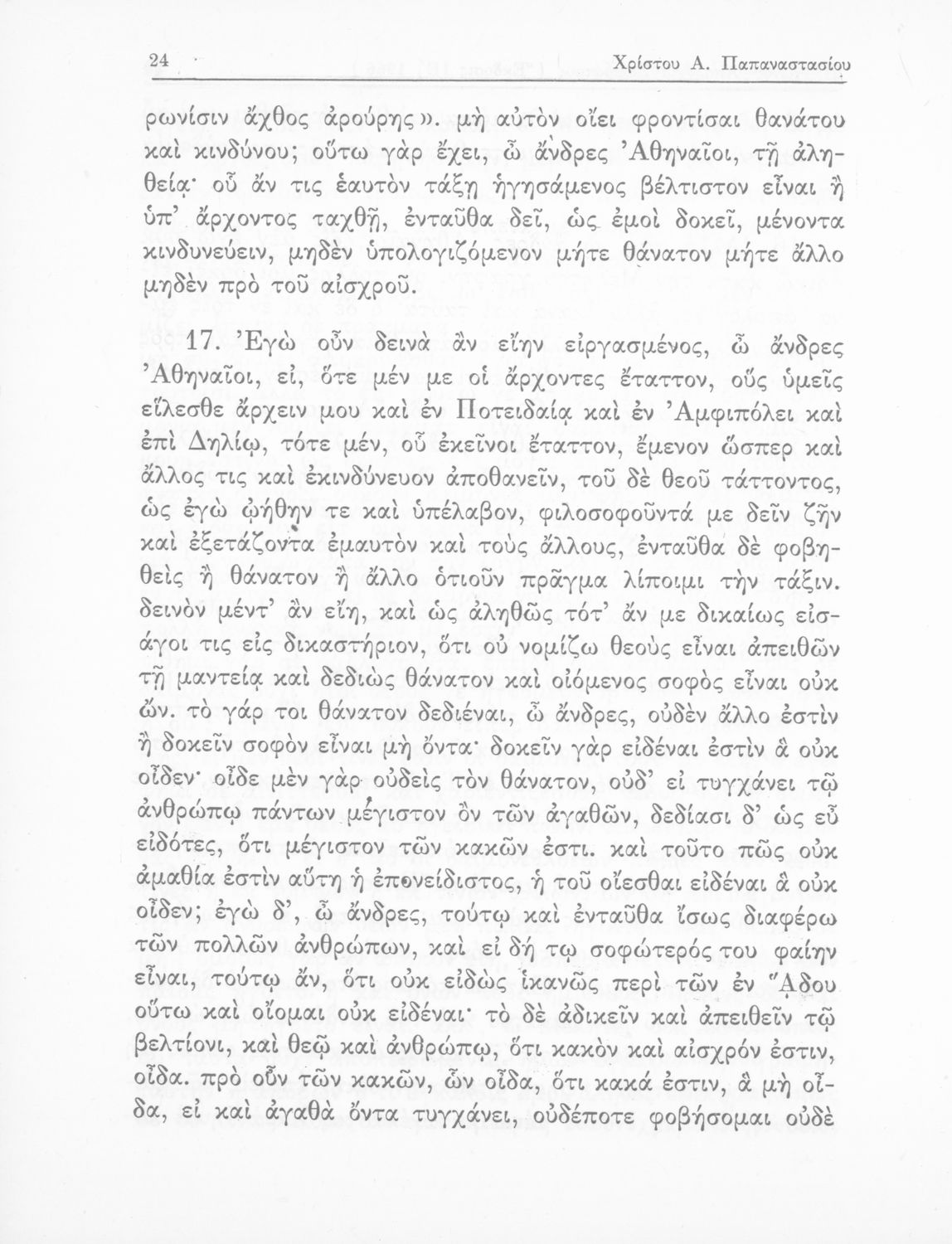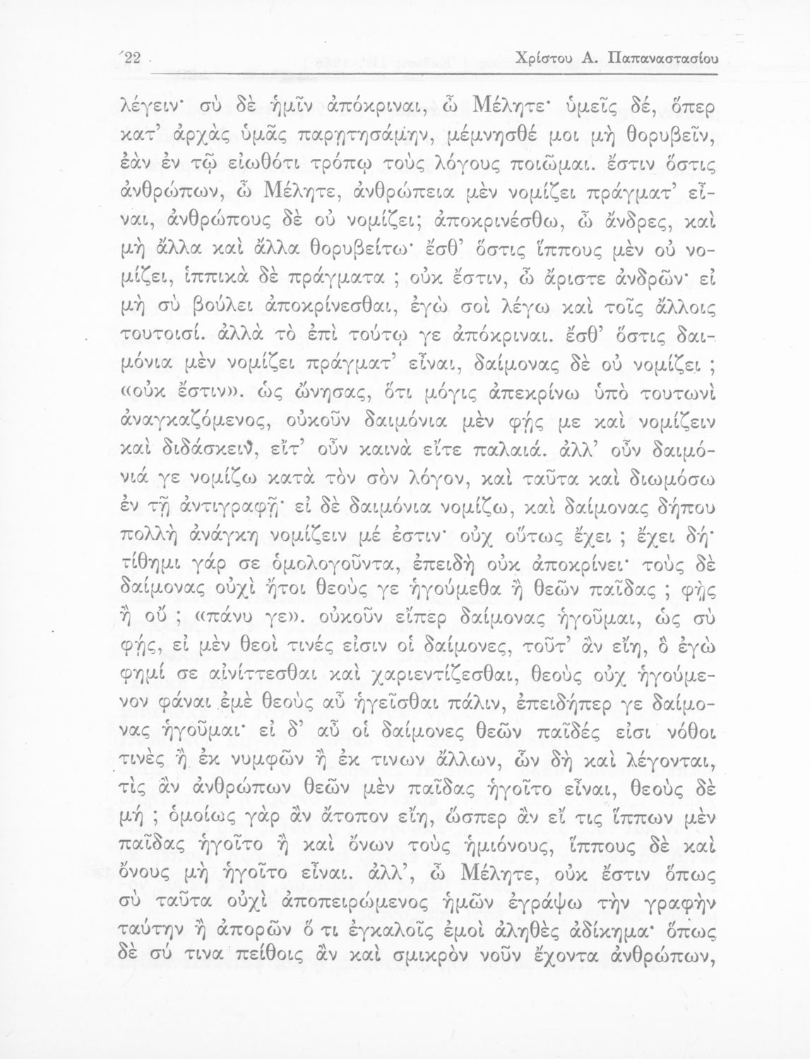 Πλάτων, Χρίστος Α. Παπαναστασίου (σχόλια)
