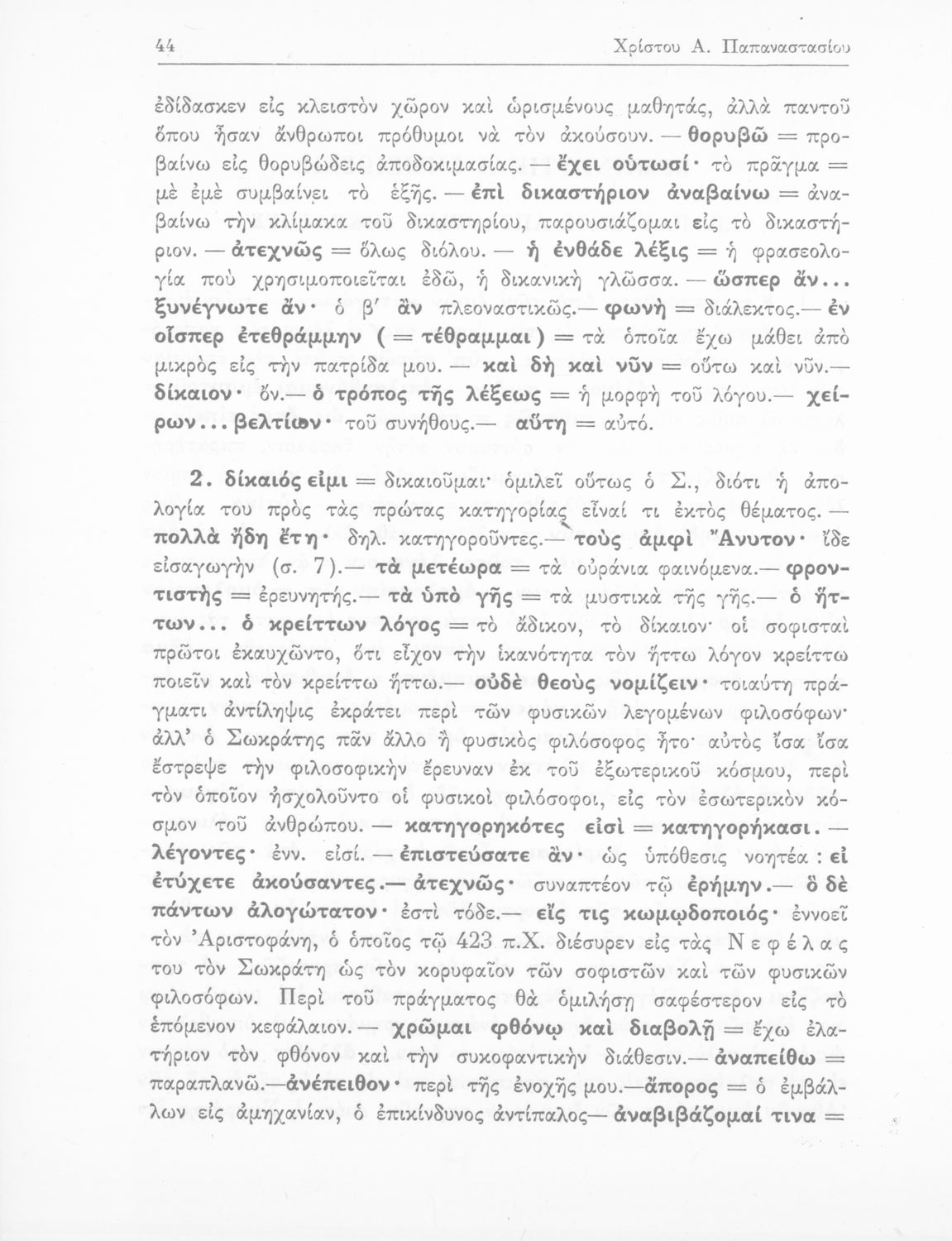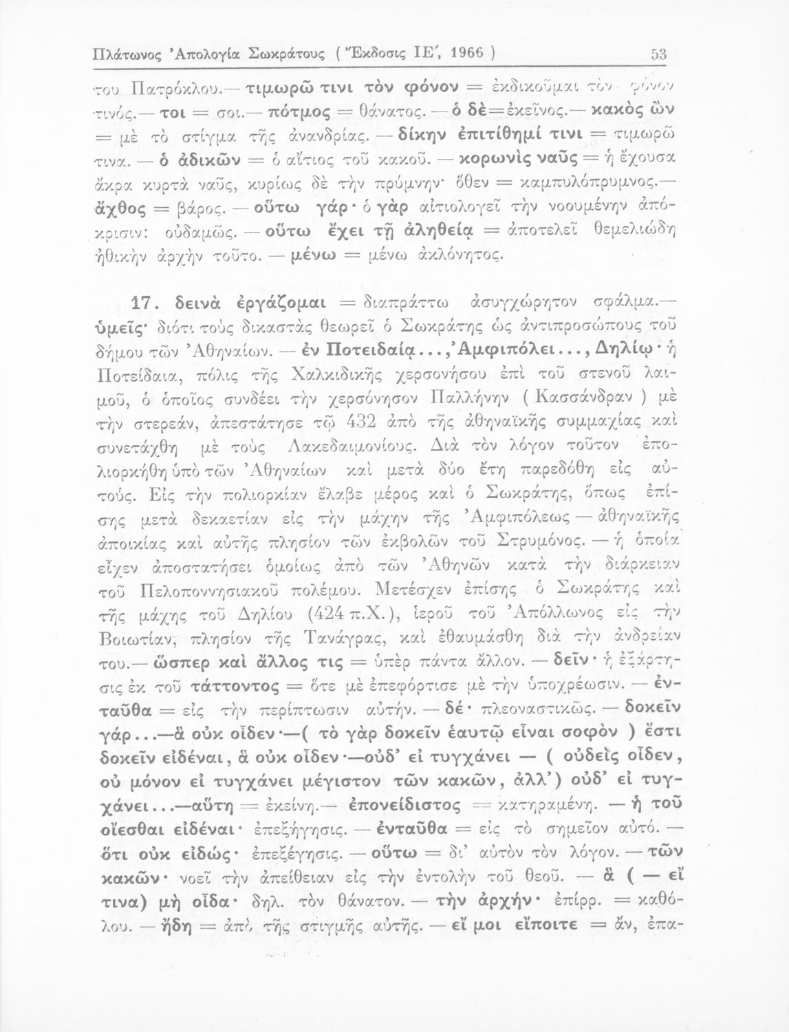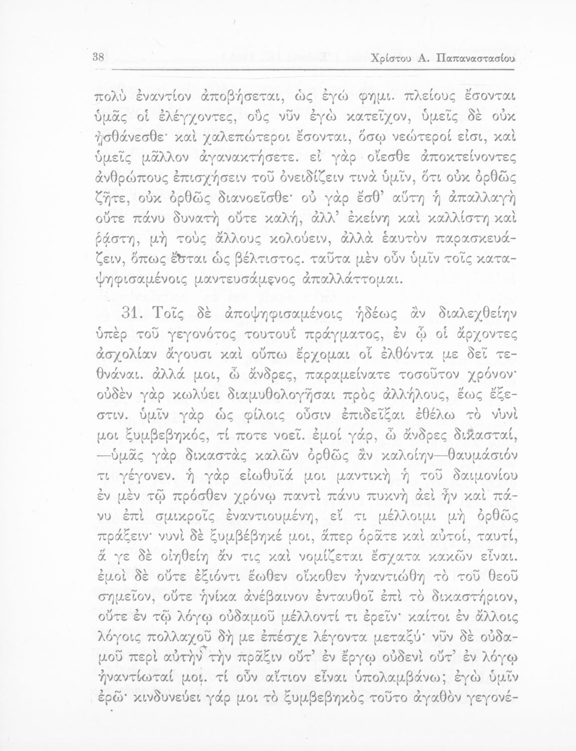 Σχολικό εγχειρίδιο της Β΄ Λυκείου για το μάθημα των Αρχαίων Ελληνικών. Πρόκειται για τα έργα του Πλάτωνα, Απολογία του Σωκράτη και Κρίτων. Περιλαμβάνει ερμηνευτικά σχόλια και λεξιλογικές παρατηρήσεις του συγγραφέα.