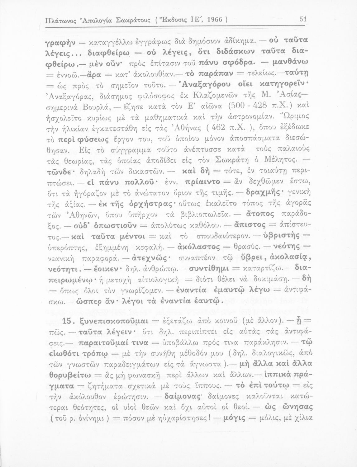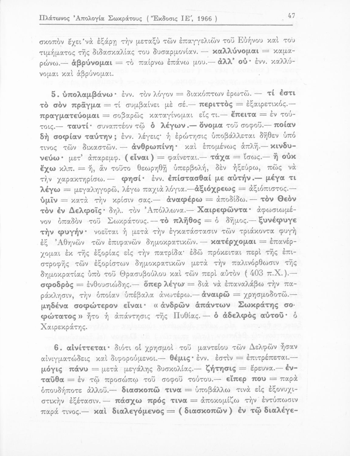 Σχολικό εγχειρίδιο της Ε΄ Γυμνασίου για το μάθημα των Αρχαίων Ελληνικών. Περιέχει το πρωτότυπο κείμενο του Πλάτωνα από την απολογία του Κρίτωνα με ερμηνευτικά, πραγματολογικά σχόλια και λεξιλογικές ...