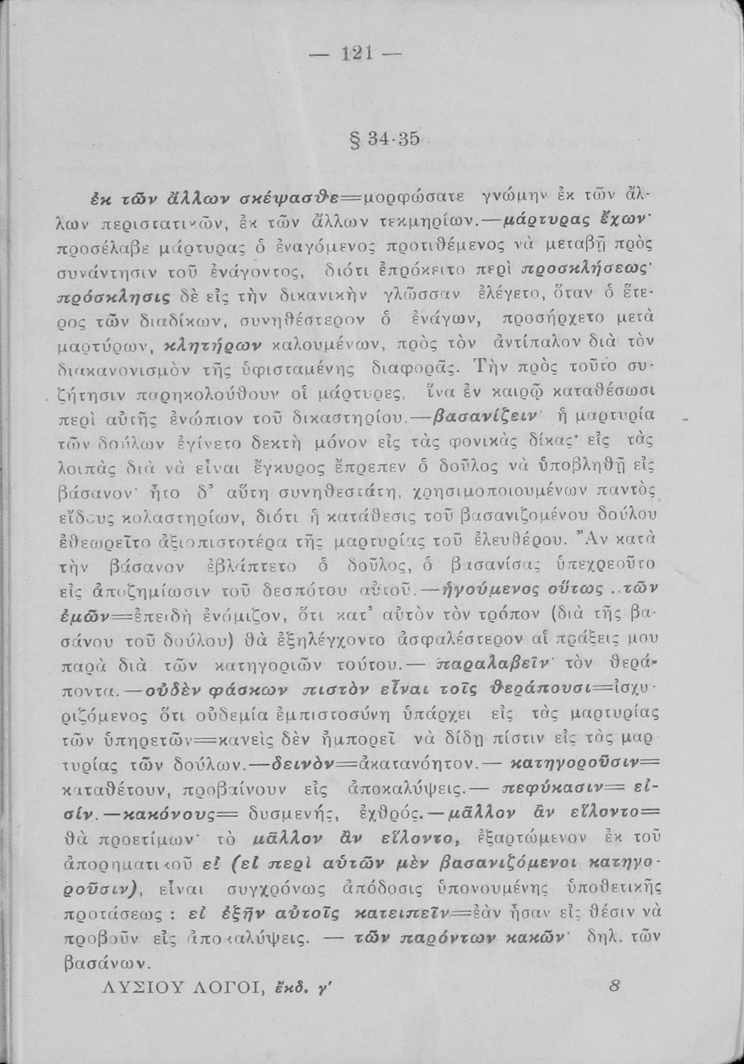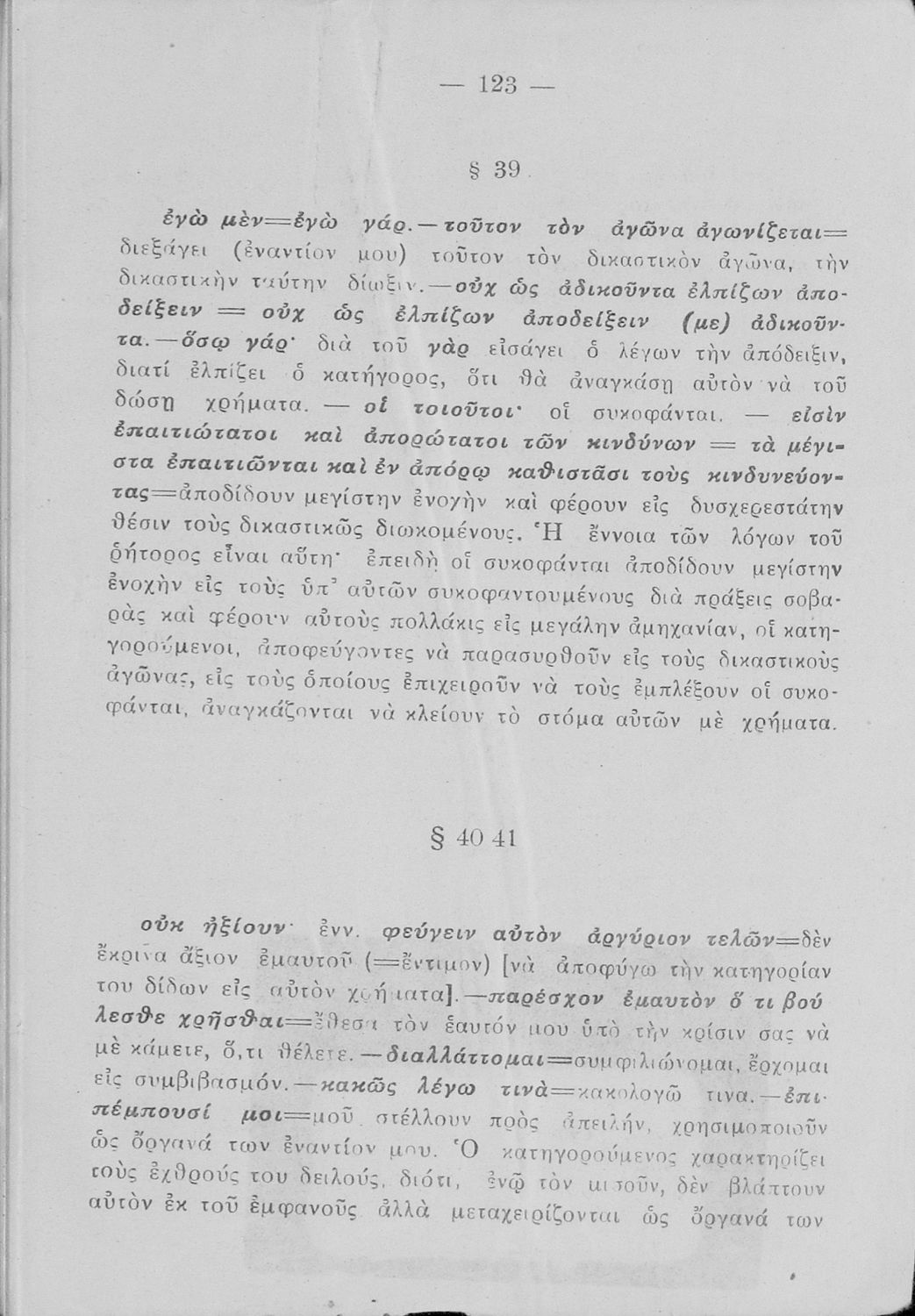 Βαθμίδα εκπαίδευσης: Δευτεροβάθμια Τάξη: Γ' Γυμνασίου Μάθημα: Αρχαία Ελληνικά Γλώσσα: Καθαρεύουσα Παρουσίαση περιεχομένου: Σχολικό εγχειρίδιο Αρχαίων Ελληνικών Γ΄ Γυμνασίου που περιέχει τους λόγους του Λυσία Υπέρ Μαντιθέου, Κατά Εργοκλέους, Περί του σηκού απολογία, Υπέρ του αδυνάτου, Κατά των σιτοπωλών, και ερμηνευτικά και πραγματολογικά σχόλια |