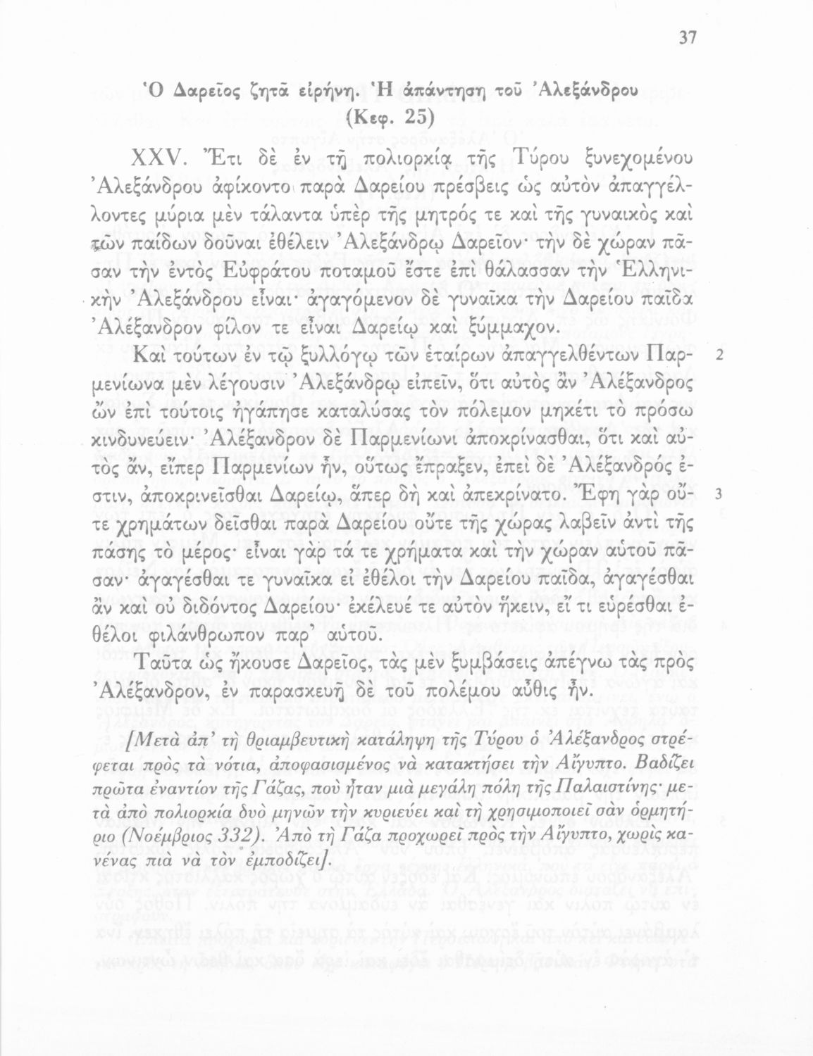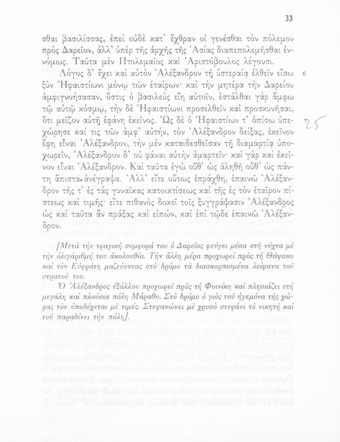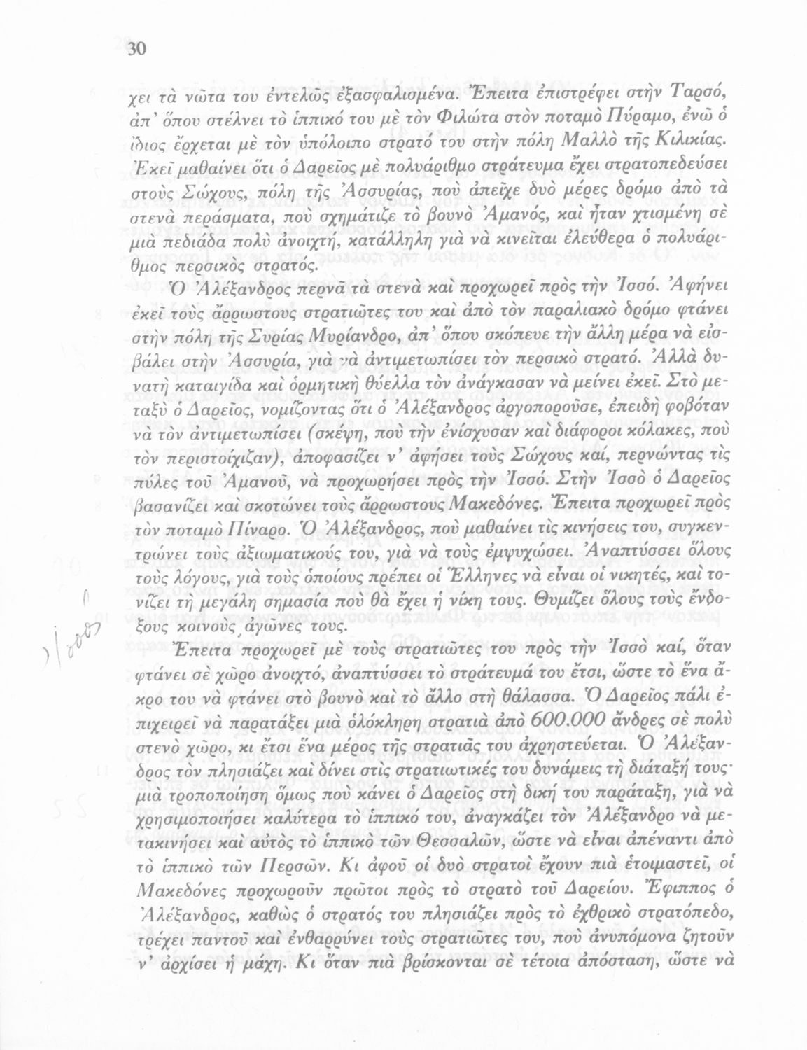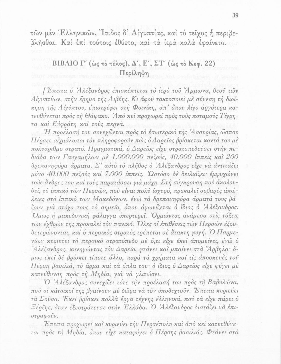Σχολικό εγχειρίδιο Αρχαίων Ελληνικών Γ΄ Γυμνασίου που περιλαμβάνεται εισαγωγή σχετικά με την εποχή του Αρριανού, τη ζωή και το έργο του αποσπάσματα από το Αλεξάνδρου Ανάβασις, ερμηνευτικές σημειώσεις, εικόνες, διαγράμματα της θέσης του στρατού και χάρτης του κράτους του Μ. Αλεξάνδρου (323 π.Χ.).