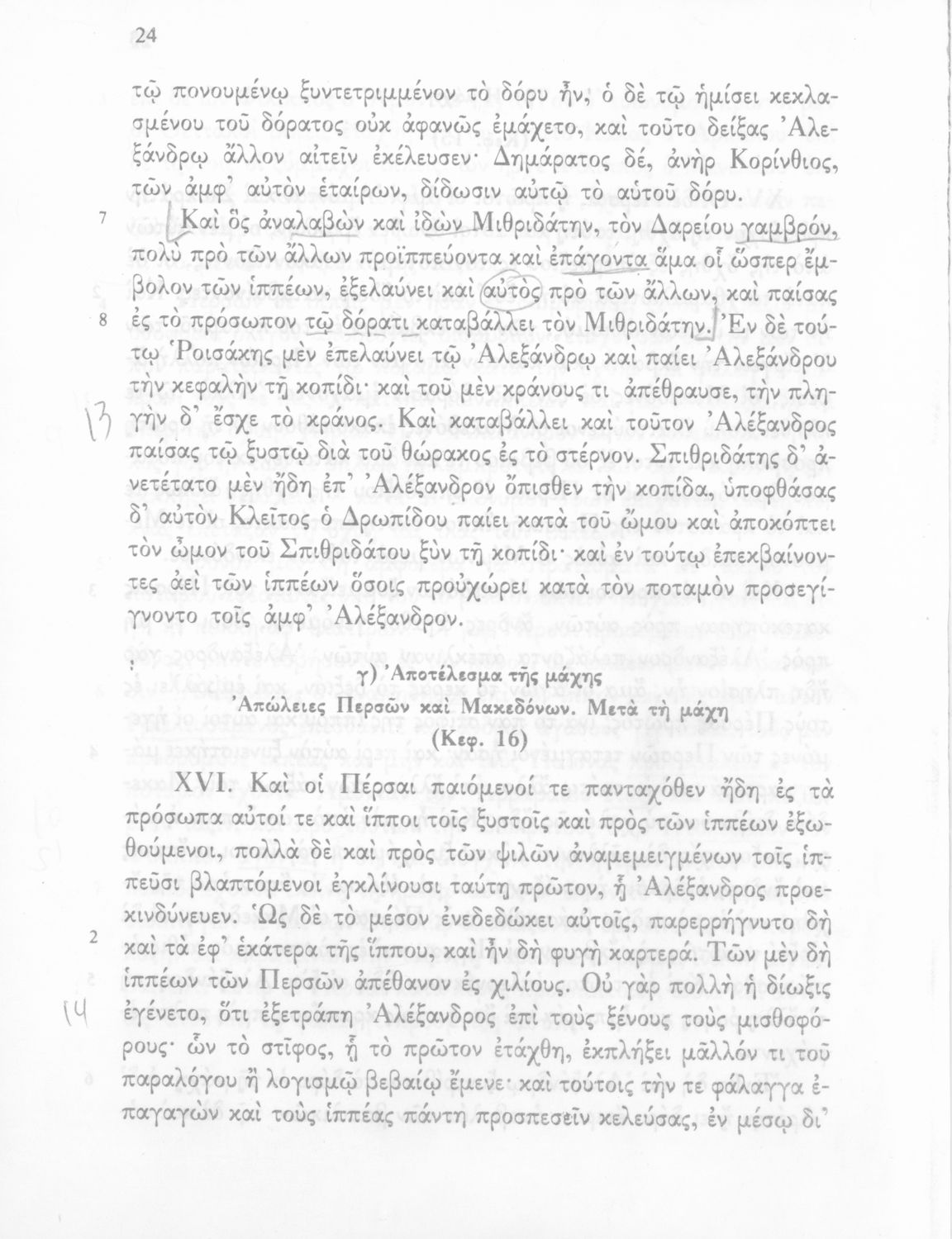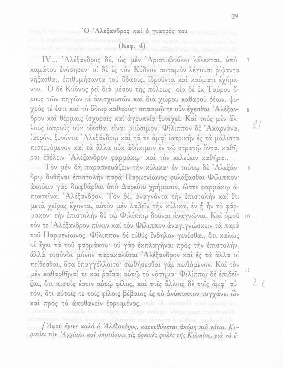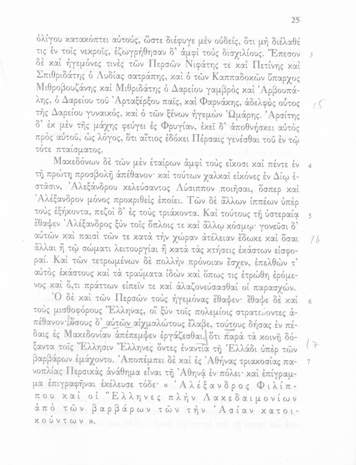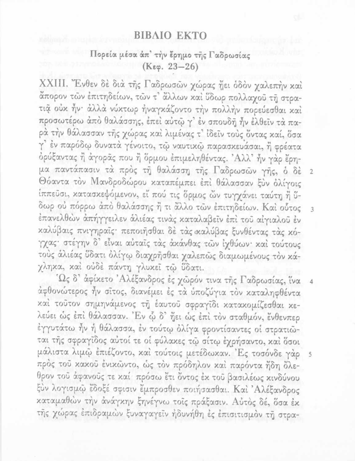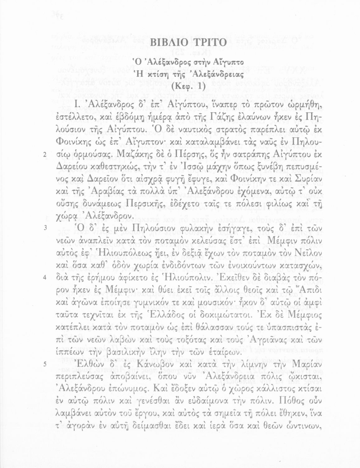 Σχολικό εγχειρίδιο Αρχαίων Ελληνικών Γ΄ Γυμνασίου που περιλαμβάνεται εισαγωγή σχετικά με την εποχή του Αρριανού, τη ζωή και το έργο του αποσπάσματα από το Αλεξάνδρου Ανάβασις, ερμηνευτικές σημειώσεις, εικόνες, διαγράμματα της θέσης του στρατού και χάρτης του κράτους του Μ. Αλεξάνδρου (323 π.Χ.).