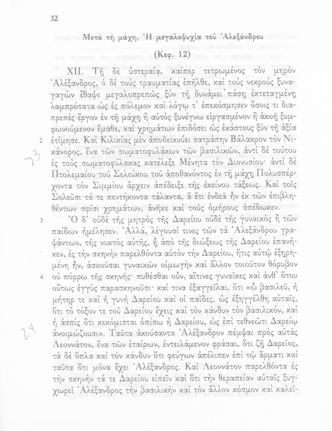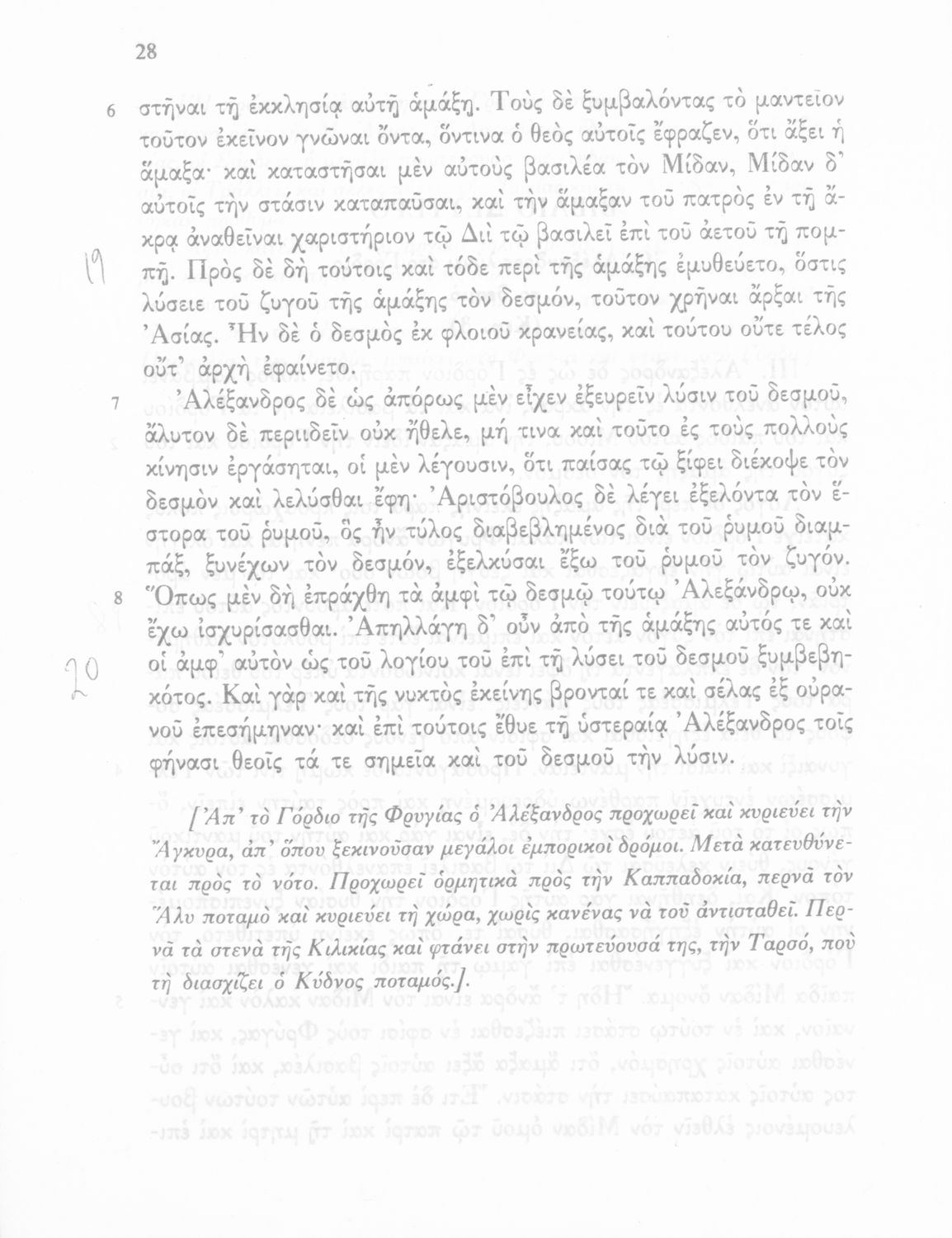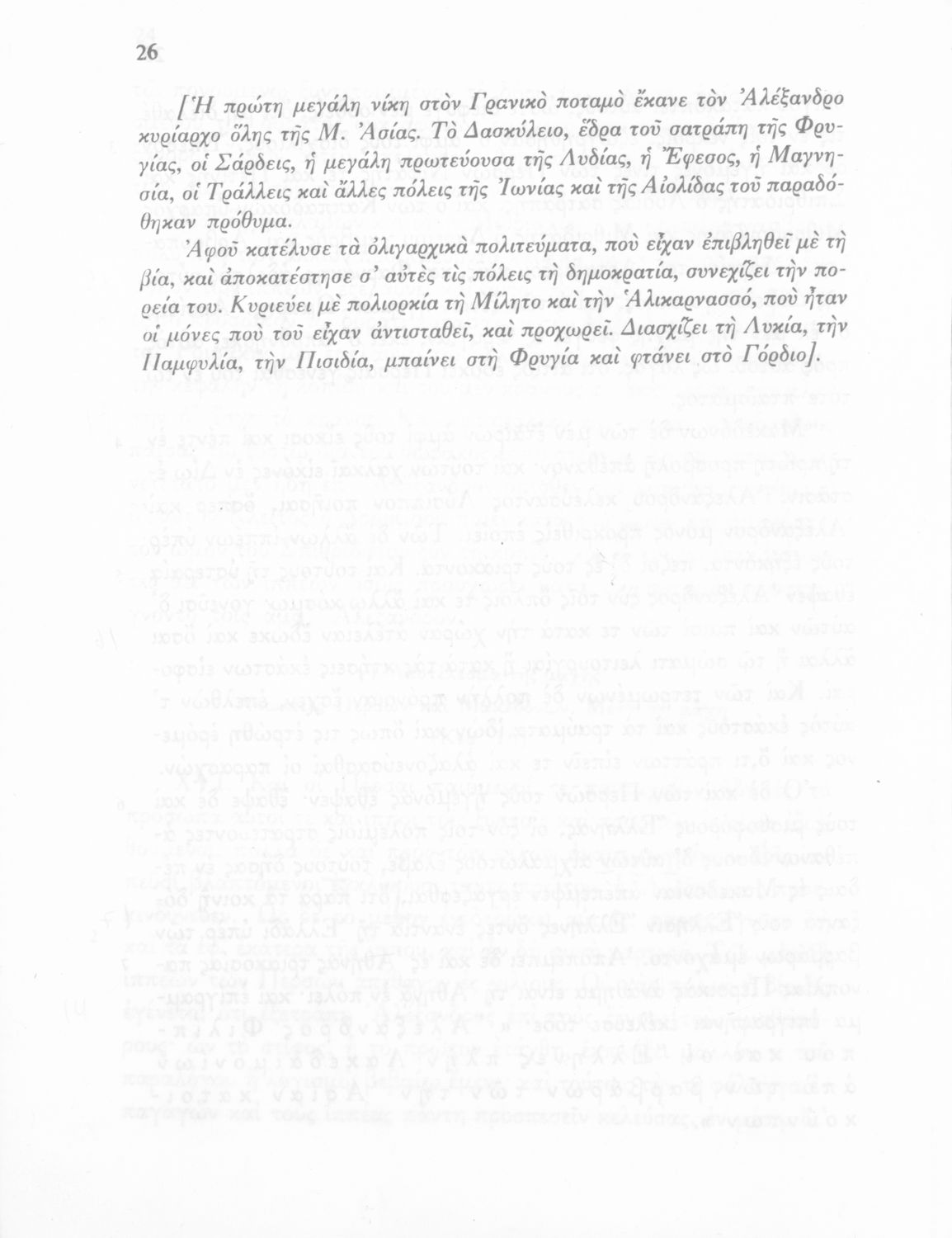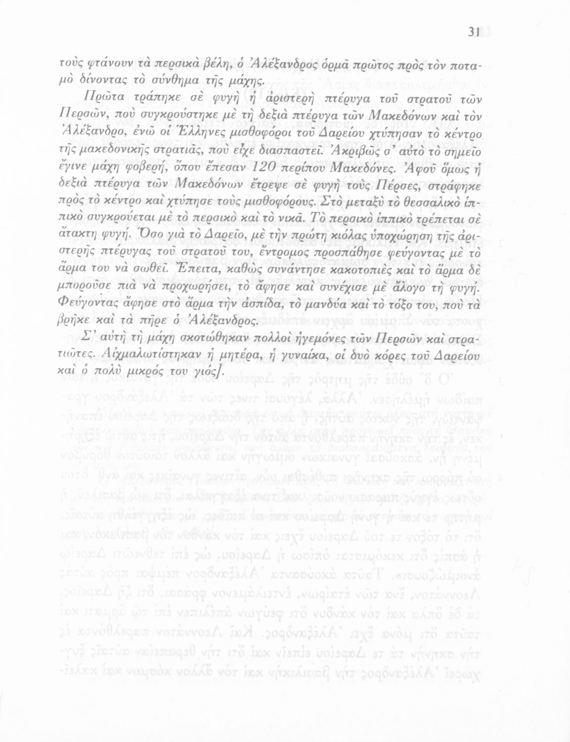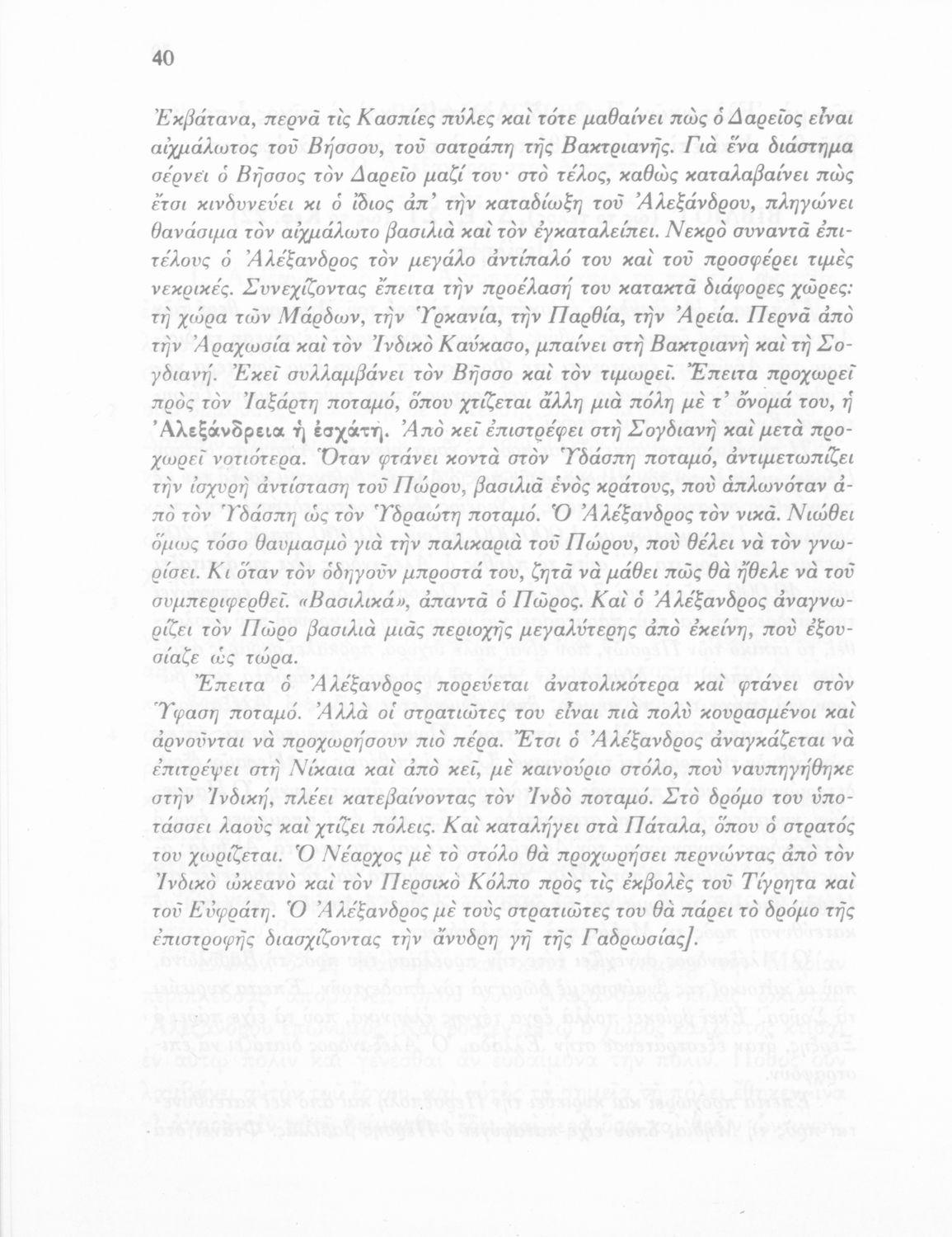 Βαθμίδα εκπαίδευσης: Δευτεροβάθμια Τάξη: Γ' Γυμνασίου Μάθημα: Αρχαία Ελληνικά Γλώσσα: Δημοτική Παρουσίαση περιεχομένου: Σχολικό εγχειρίδιο Αρχαίων Ελληνικών Γ΄ Γυμνασίου που περιλαμβάνεται εισαγωγή σχετικά με την εποχή του Αρριανού, τη ζωή και το έργο του αποσπάσματα από το Αλεξάνδρου Ανάβασις, ερμηνευτικές σημειώσεις, εικόνες, διαγράμματα της θέσης του στρατού και χάρτης του κράτους του Μ. Αλεξάνδρου (323 π.Χ.). |