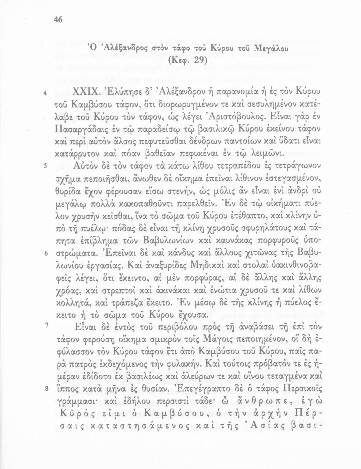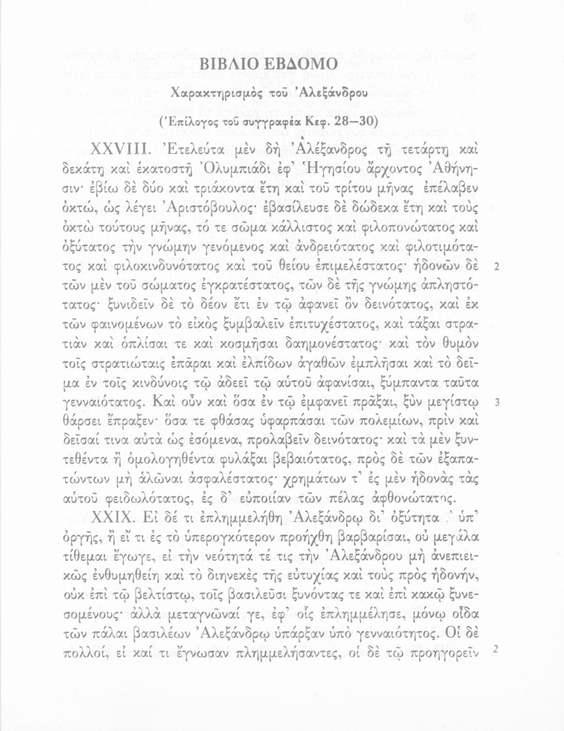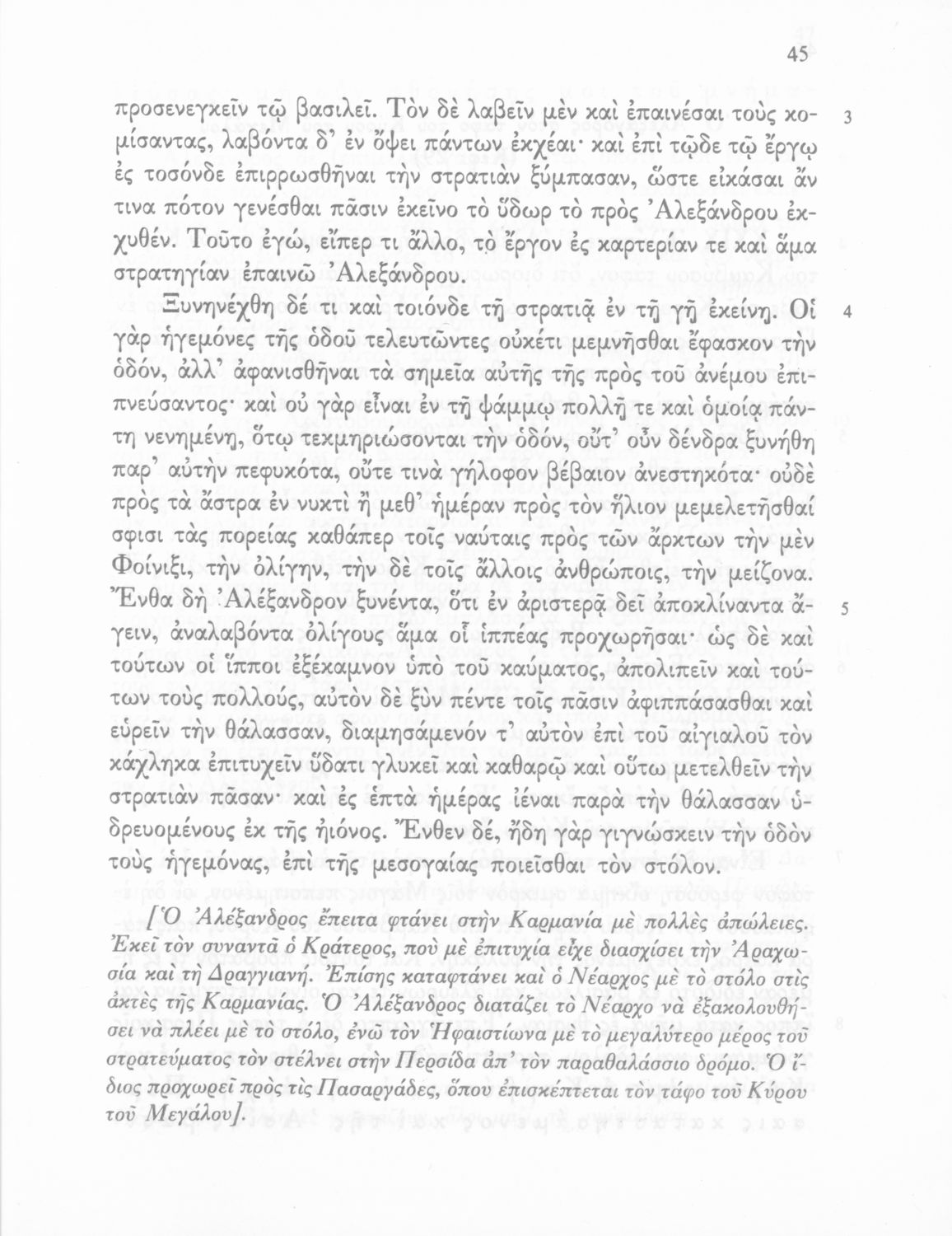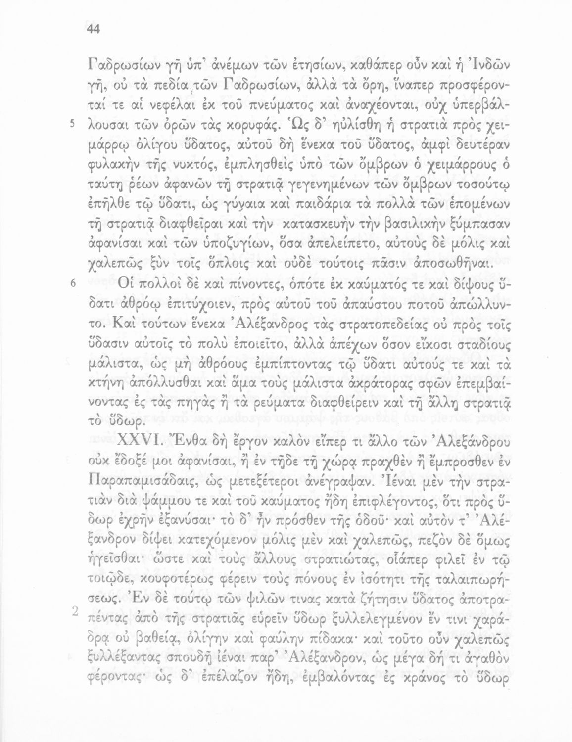 Σχολικό εγχειρίδιο Αρχαίων Ελληνικών Γ΄ Γυμνασίου που περιλαμβάνεται εισαγωγή σχετικά με την εποχή του Αρριανού, τη ζωή και το έργο του αποσπάσματα από το Αλεξάνδρου Ανάβασις, ερμηνευτικές σημειώσεις, εικόνες, διαγράμματα της θέσης του στρατού και χάρτης του κράτους του Μ. Αλεξάνδρου (323 π.Χ.).