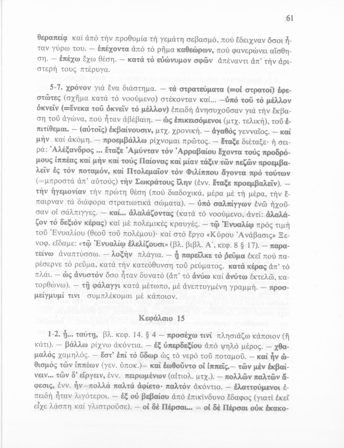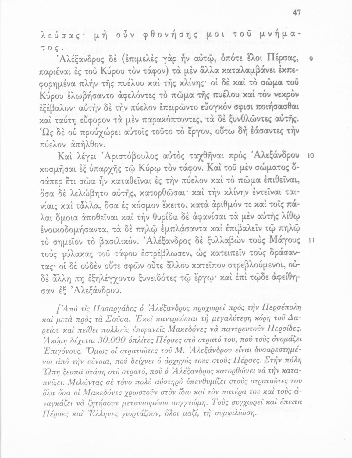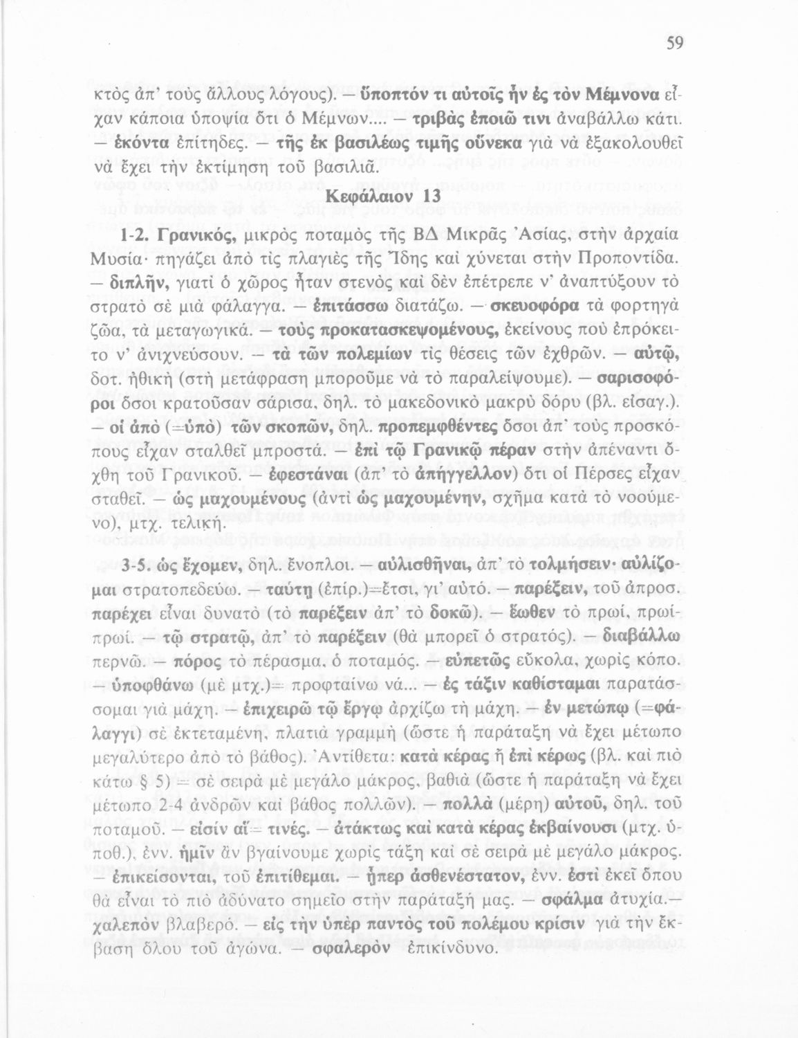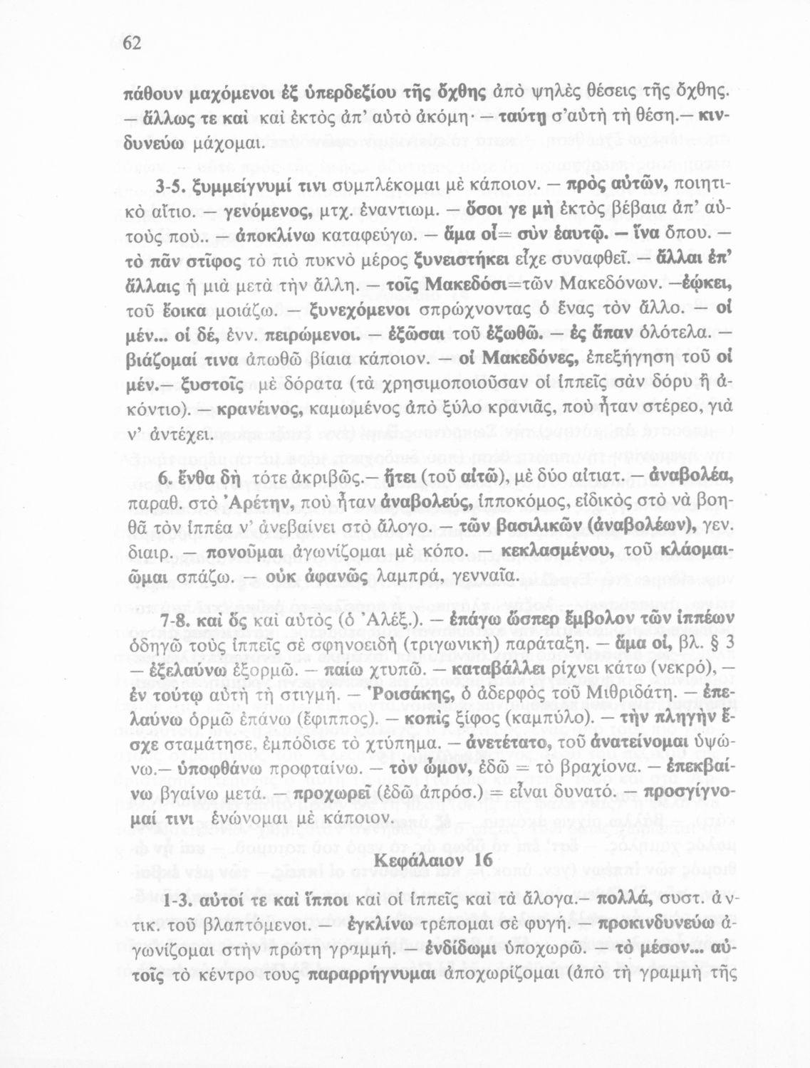 Βαθμίδα εκπαίδευσης: Δευτεροβάθμια Τάξη: Γ' Γυμνασίου Μάθημα: Αρχαία Ελληνικά Γλώσσα: Δημοτική Παρουσίαση περιεχομένου: Σχολικό εγχειρίδιο Αρχαίων Ελληνικών Γ΄ Γυμνασίου που περιλαμβάνεται εισαγωγή σχετικά με την εποχή του Αρριανού, τη ζωή και το έργο του αποσπάσματα από το Αλεξάνδρου Ανάβασις, ερμηνευτικές σημειώσεις, εικόνες, διαγράμματα της θέσης του στρατού και χάρτης του κράτους του Μ. Αλεξάνδρου (323 π.Χ.). |