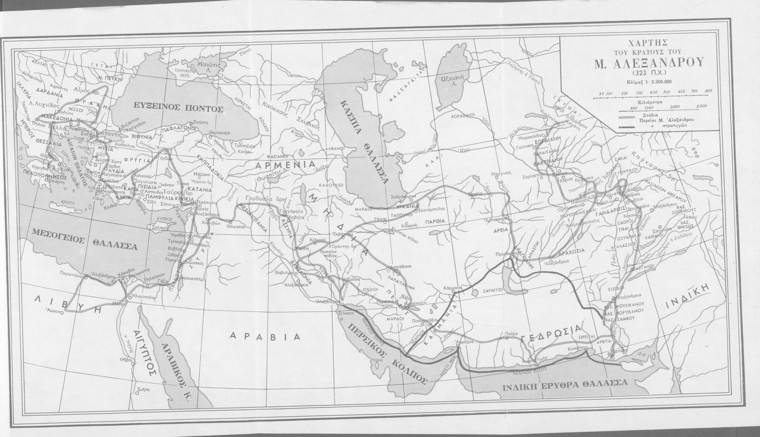 Σχολικό εγχειρίδιο Αρχαίων Ελληνικών Γ΄ Γυμνασίου που περιλαμβάνεται εισαγωγή σχετικά με την εποχή του Αρριανού, τη ζωή και το έργο του αποσπάσματα από το Αλεξάνδρου Ανάβασις, ερμηνευτικές σημειώσεις, εικόνες, διαγράμματα της θέσης του στρατού και χάρτης του κράτους του Μ. Αλεξάνδρου (323 π.Χ.).