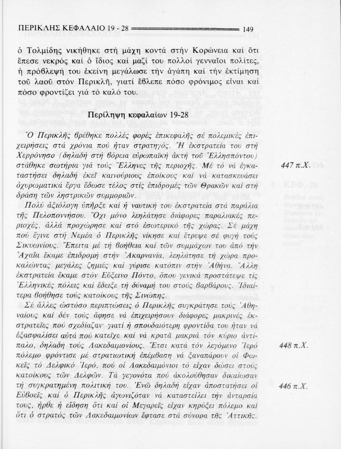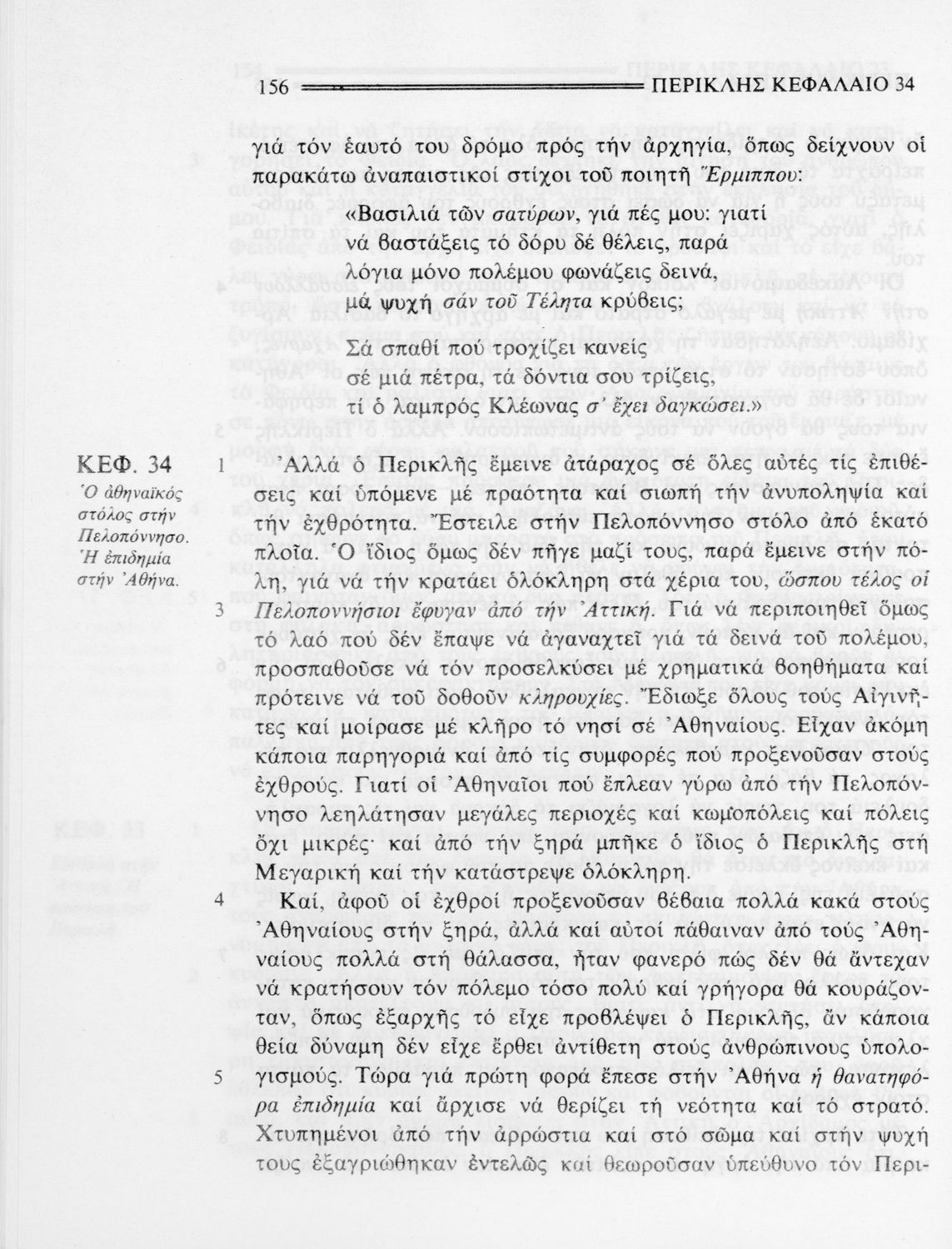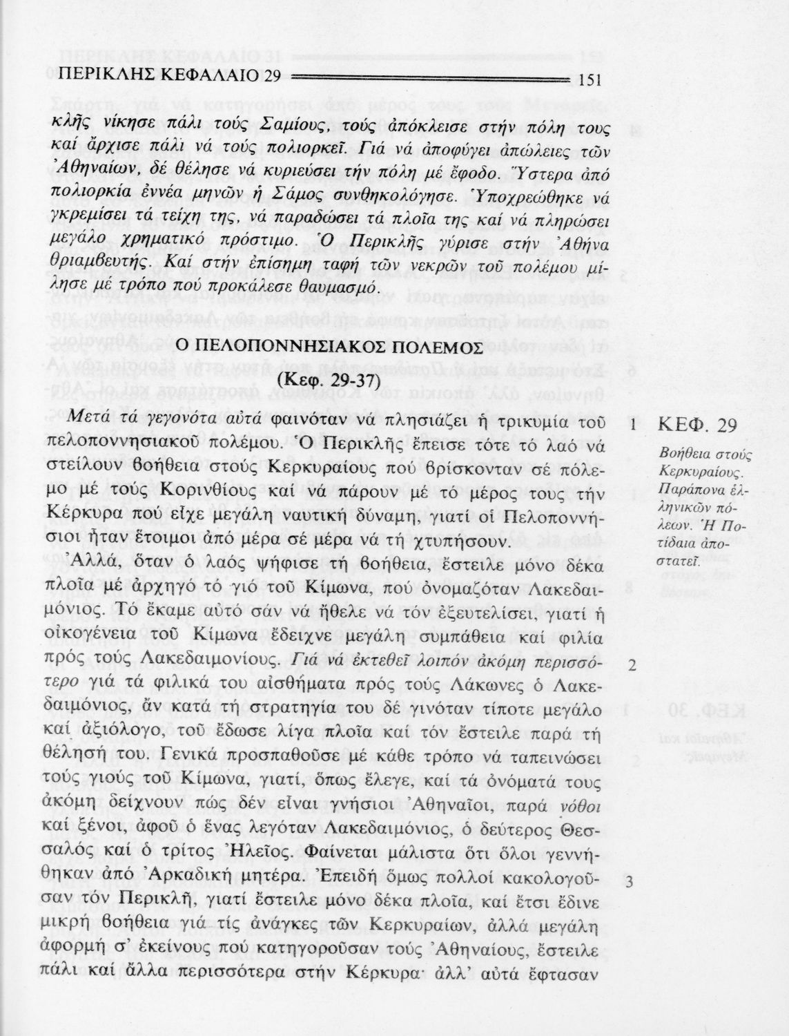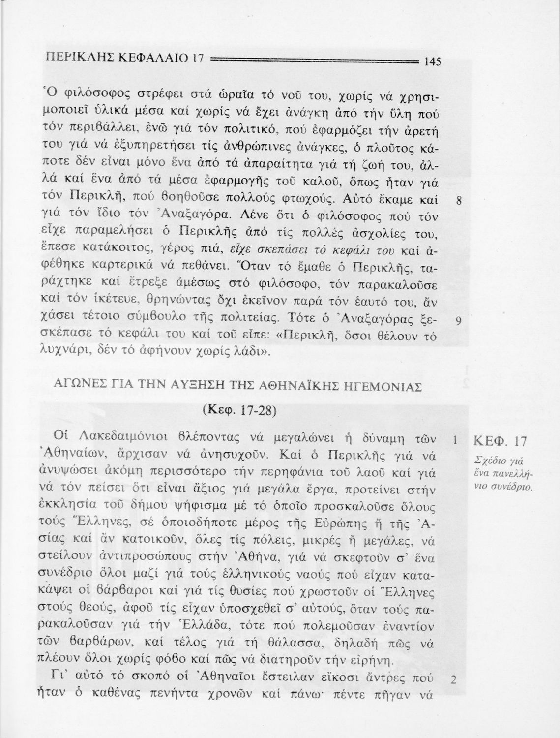 Σχολικό εγχειρίδιο Αρχαίων Ελληνικών Β΄ Γυμνασίου που περιέχει μετάφραση του έργο του Πλούταρχου Θεμιστοκλής και Περικλής, εισαγωγή και ερμηνευτικά σχόλια.