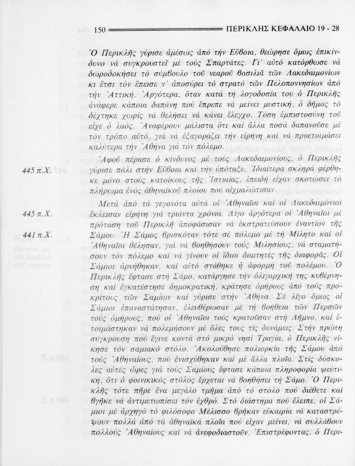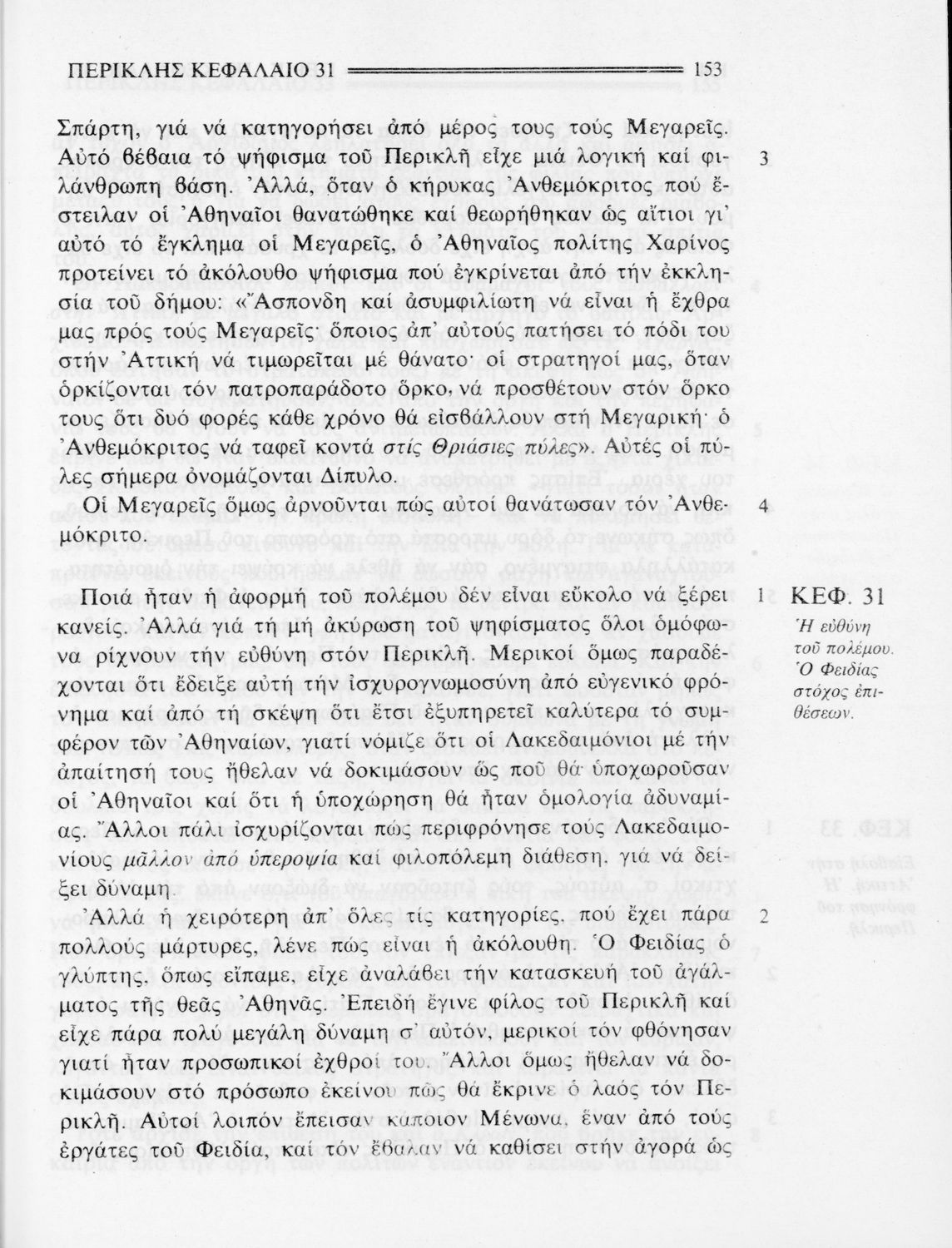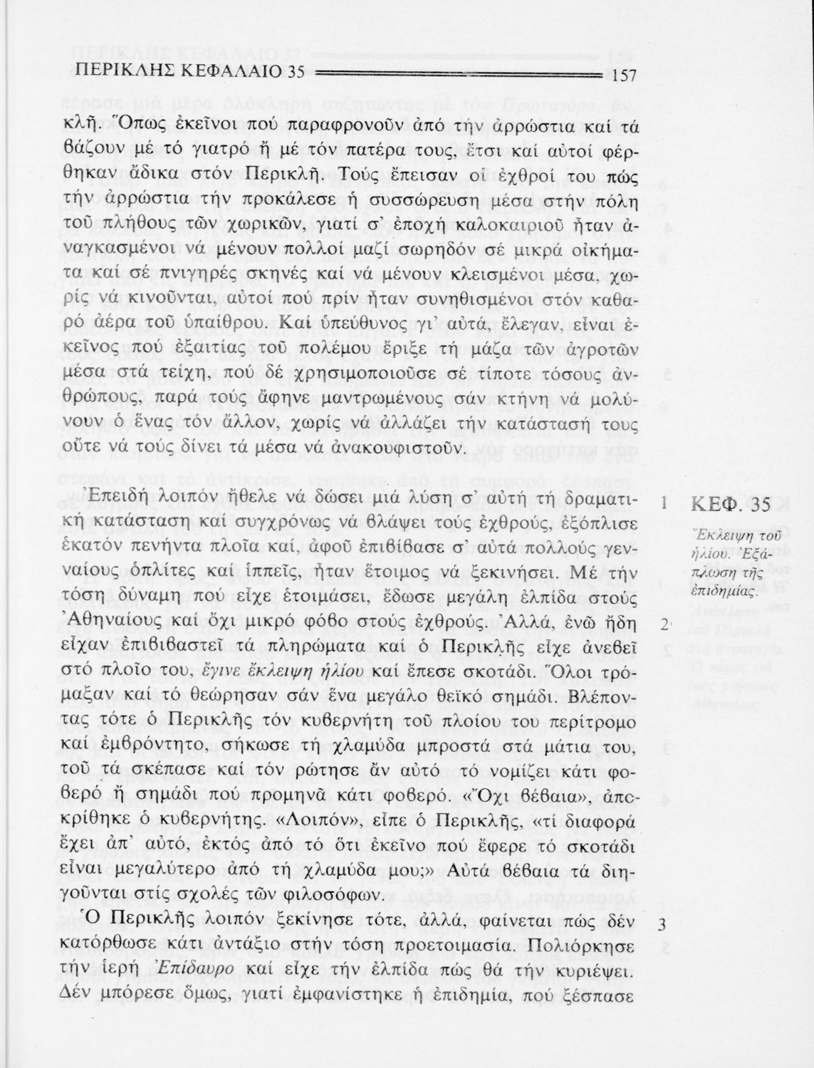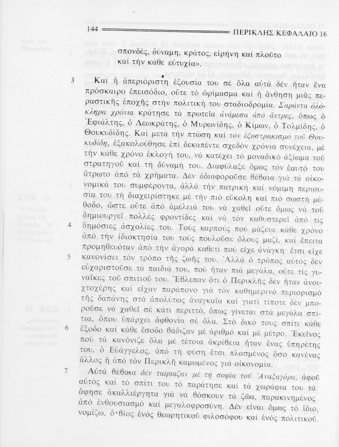 Σχολικό εγχειρίδιο Αρχαίων Ελληνικών Β΄ Γυμνασίου που περιέχει μετάφραση του έργο του Πλούταρχου Θεμιστοκλής και Περικλής, εισαγωγή και ερμηνευτικά σχόλια.