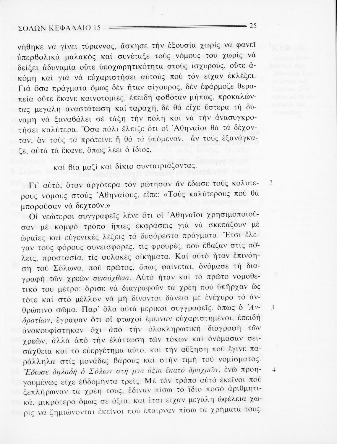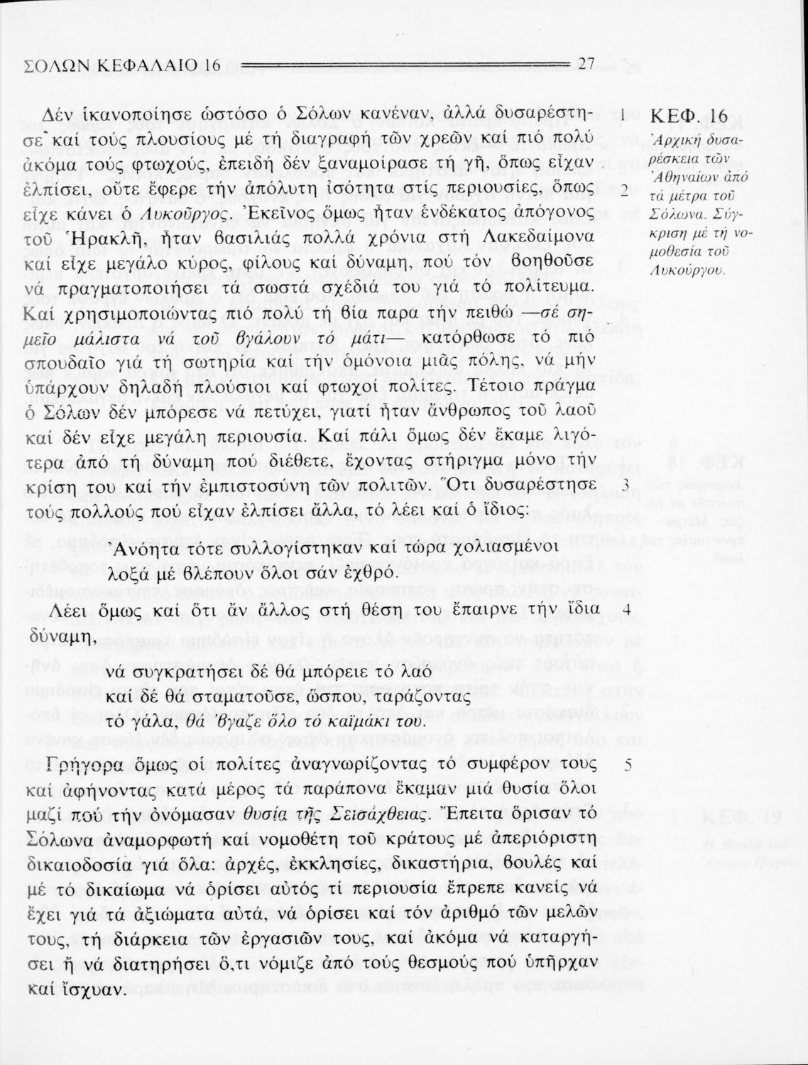 Σχολικό εγχειρίδιο Αρχαίων Ελληνικών. Αρχικά ένα εισαγωγικό σημείωμα αναφέρεται στη ζωή και το έργο του Πλουτάρχου. Ακολουθούν από το έργο του "Παράλληλοι Βίοι", σε μετάφραση, οι βιογραφίες του Σόλωνα, του ...