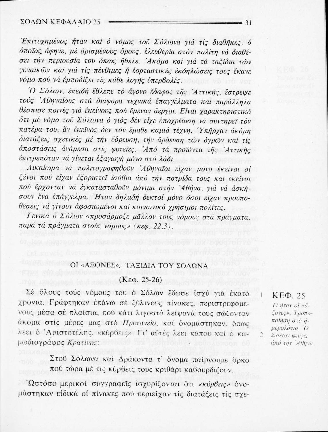 Σχολικό εγχειρίδιο Αρχαίων Ελληνικών της Β' Γυμνασίου. Το βιβλίο περιλαμβάνει τέσσερις από τους “Βίους” του Πλούταρχου: του Σόλωνα, του Θεμιστοκλή, του Περικλή και του Φωκίωνα