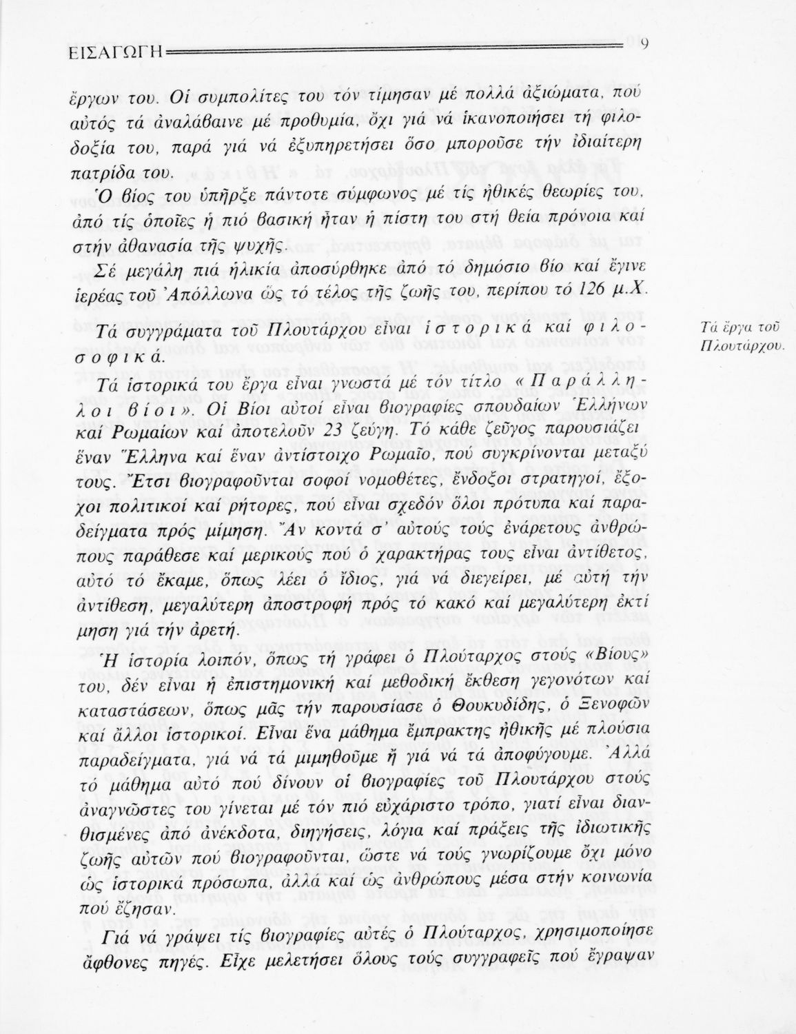 Σχολικό εγχειρίδιο Αρχαίων Ελληνικών για τις Β΄ Γυμνασίου και Γ΄ Αστικού Σχολείου που περιλαμβάνει αποσπάσματα από το έργο του Πλούταρχου Βίοι Παράλληλοι και ερμηνευτικά και πραγματολογικά σχόλια.