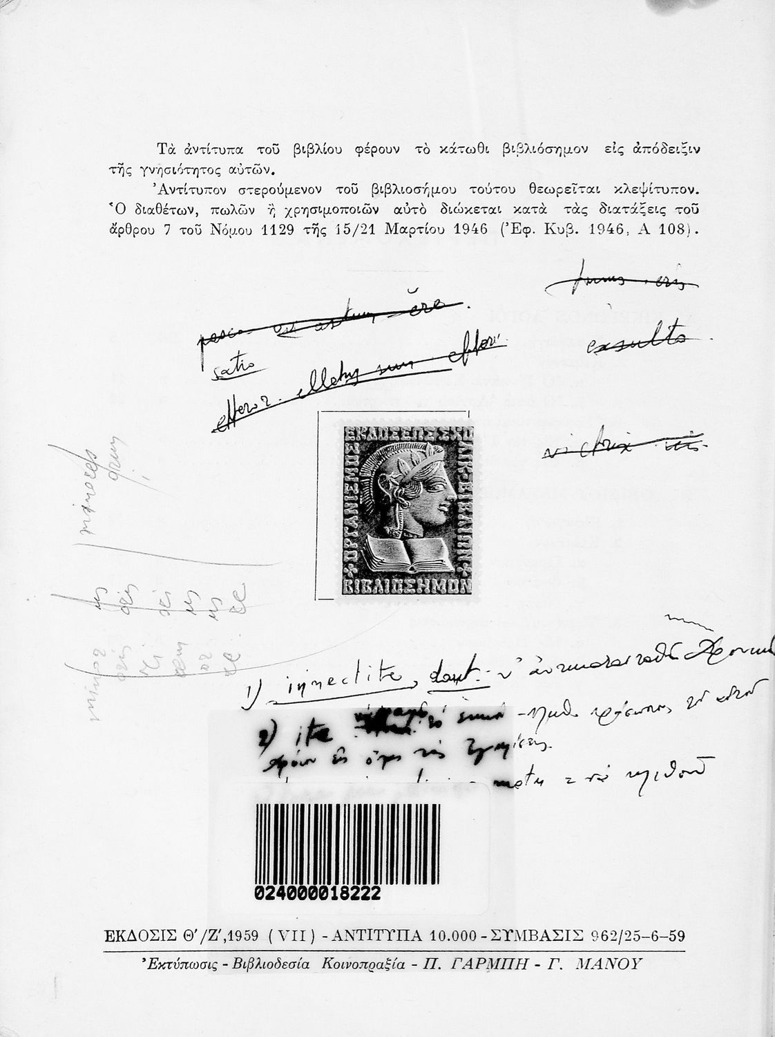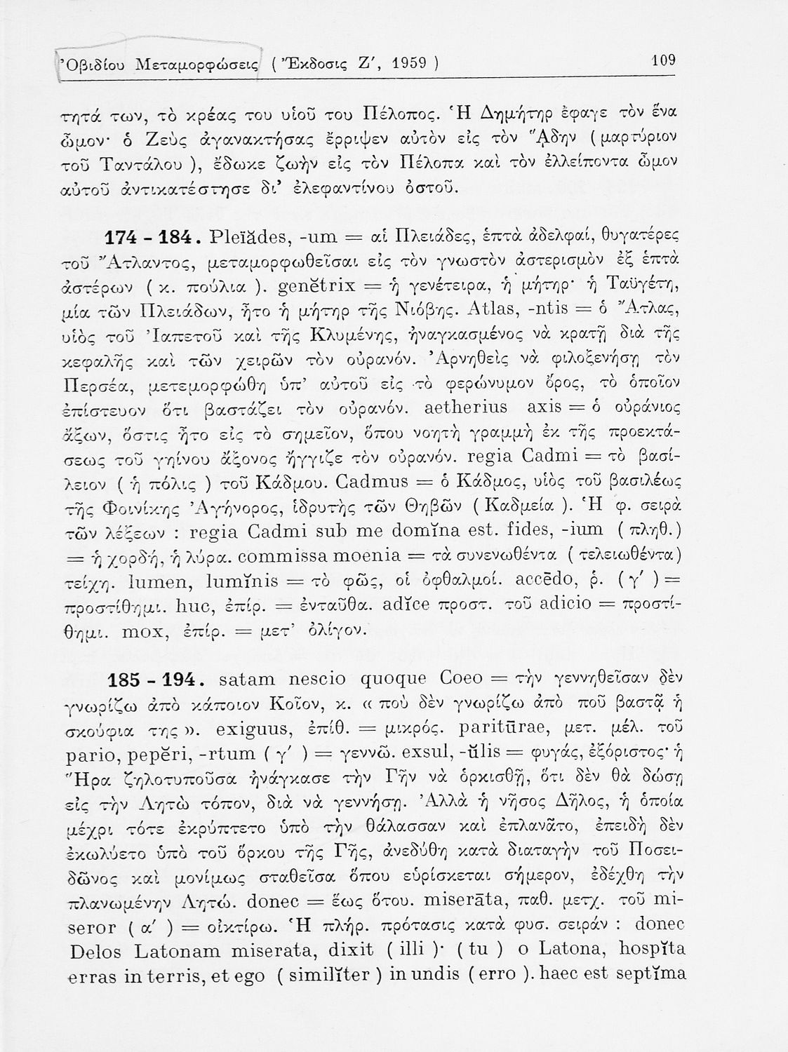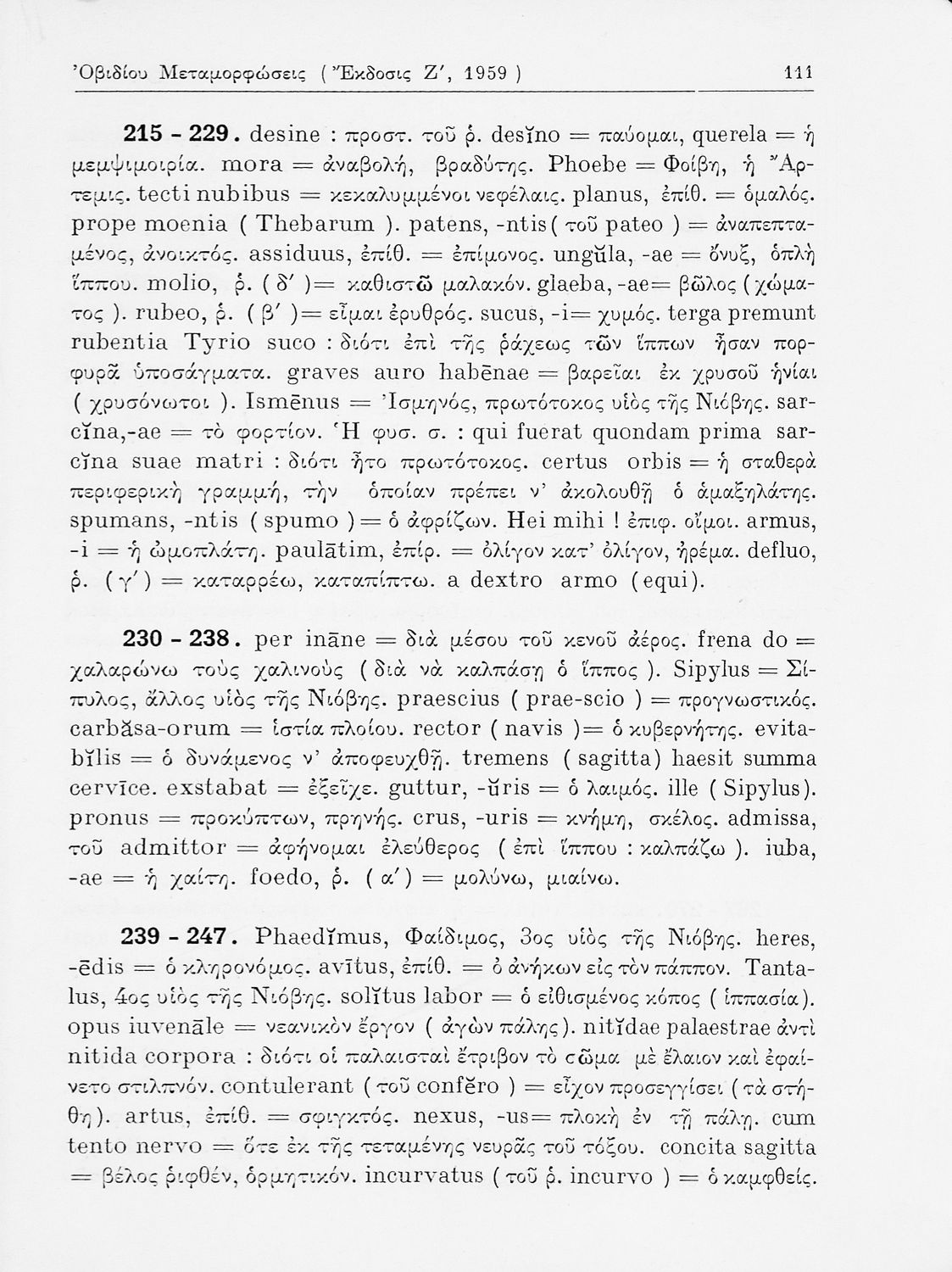Σχολικό εγχειρίδιο Λατινικών για την Ε΄ Γυμνασίου παλαιού τύπου και την ΣΤ΄ Γυμνασίου νέου τύπου ου περιέχει βιογραφικό σημείωμα των Κικέρωνα και Οβίδιου, εισαγωγικά σχόλια, κείμενο και ερμηνευτικές σημειώσεις.