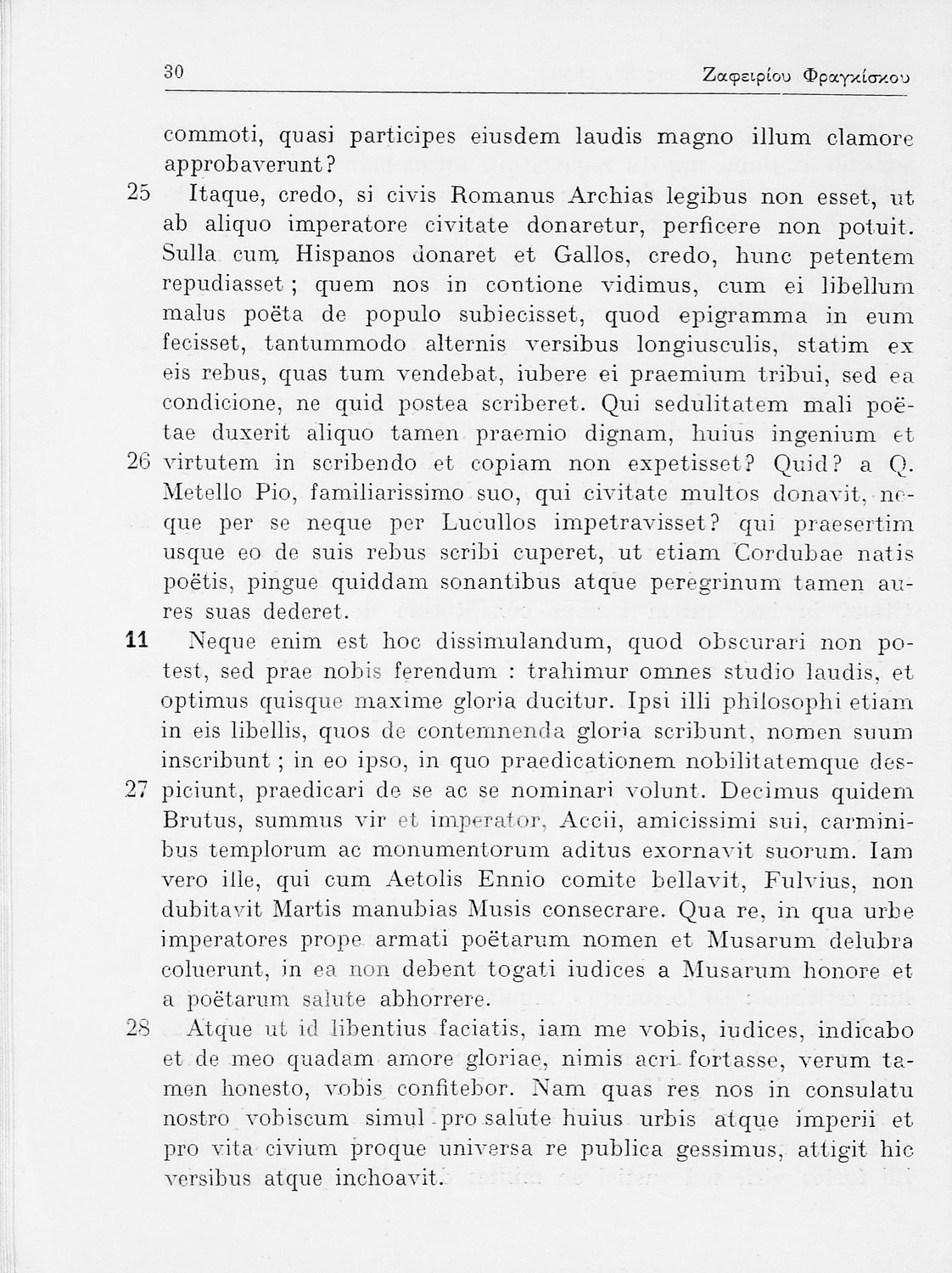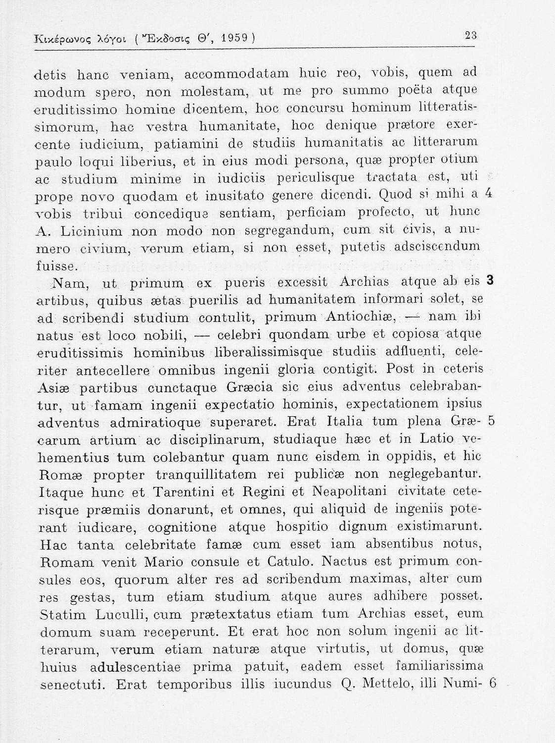 Σχολικό εγχειρίδιο Λατινικών Γ΄ Γυμνασίου που περιλαμβάνει το έργο του Κικέρωνα Υπέρ του Αρχία του ποιητή λόγος, εισαγωγή στη ζωή και την εργογραφία του Κικέρωνα, και ερμηνευτικά και γραμματολογικά σχόλια.