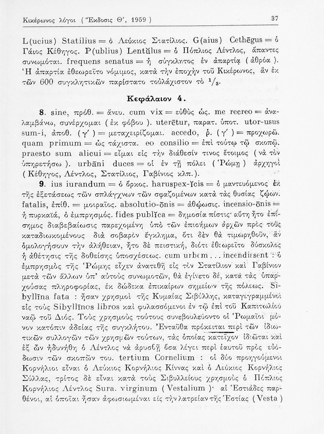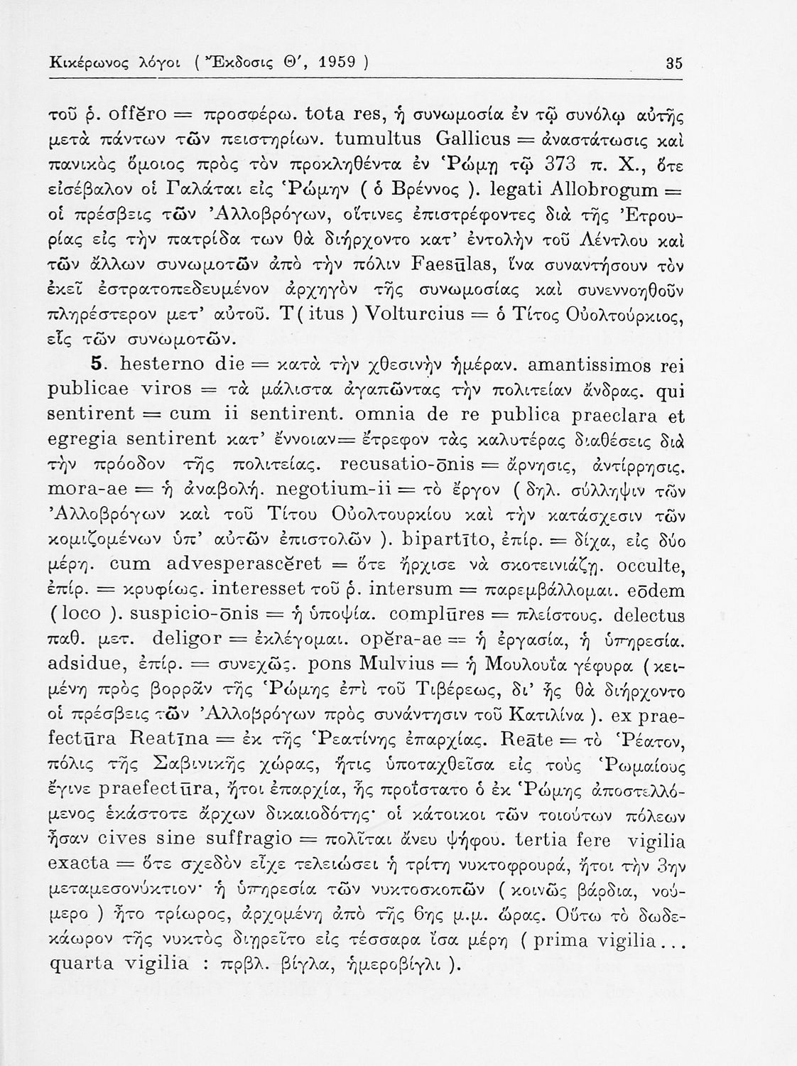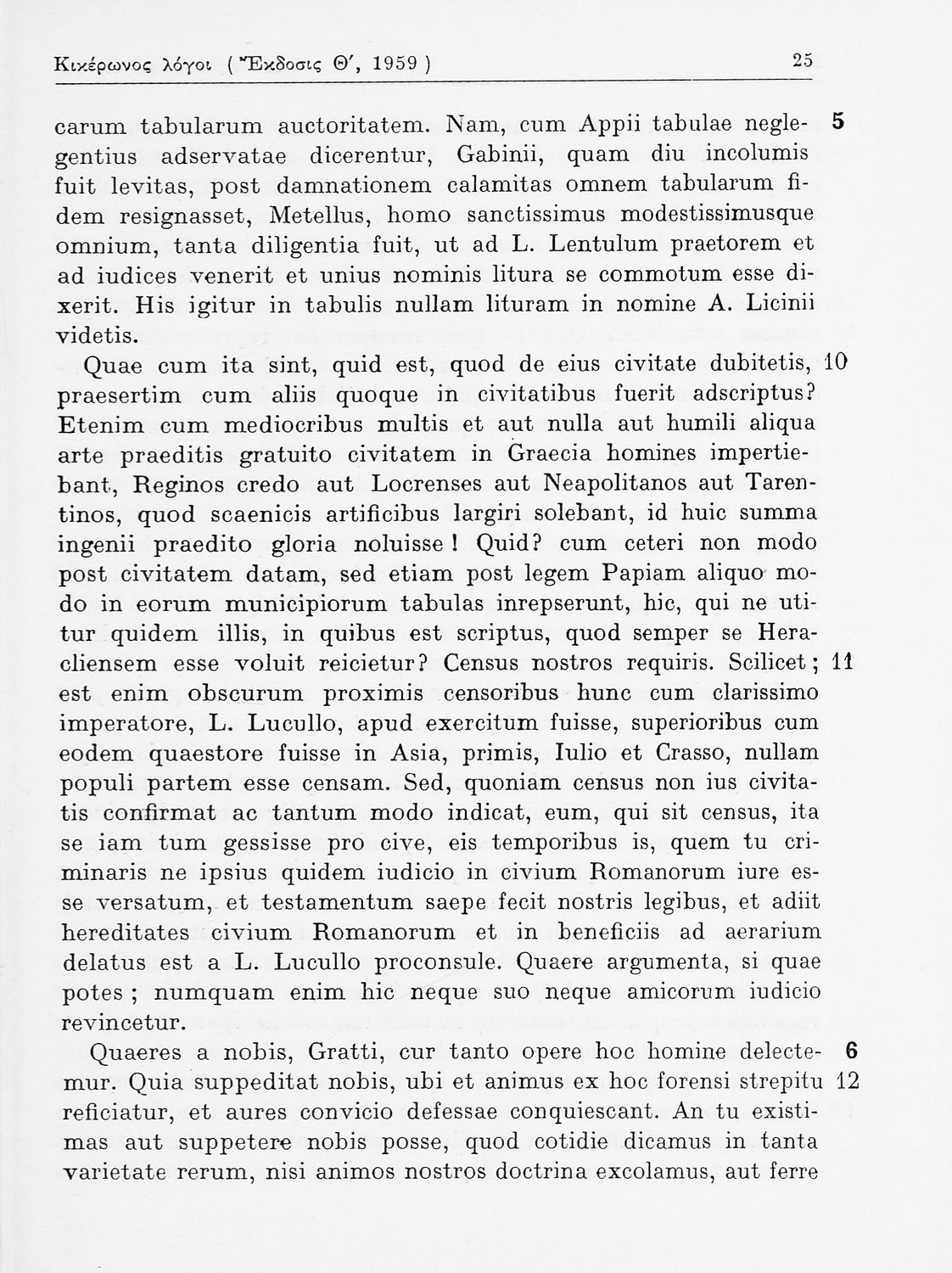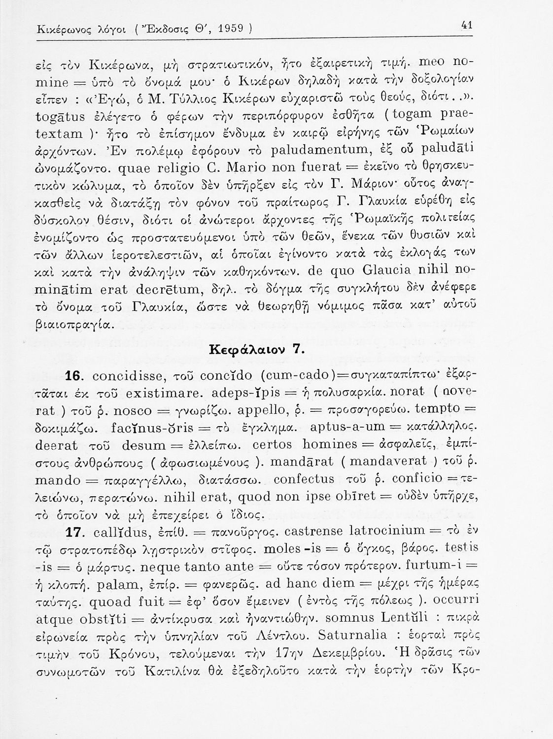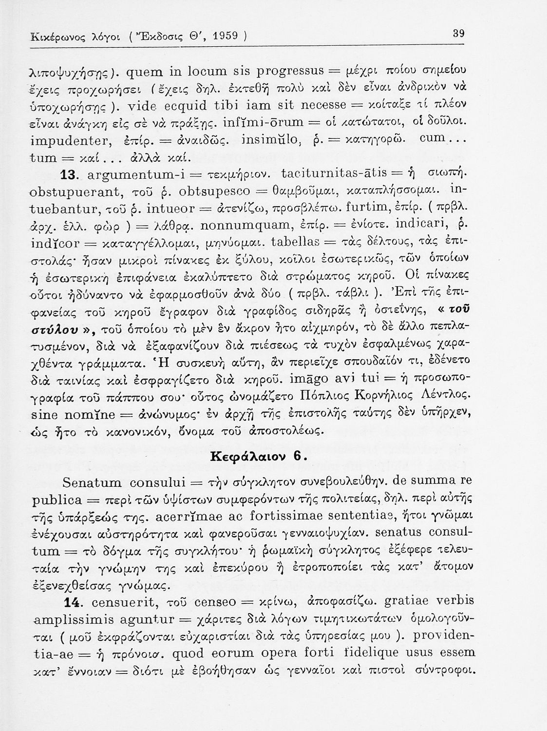 Σχολικό εγχειρίδιο Λατινικών για την Ε΄ Γυμνασίου παλαιού τύπου και την ΣΤ΄ Γυμνασίου νέου τύπου ου περιέχει βιογραφικό σημείωμα των Κικέρωνα και Οβίδιου, εισαγωγικά σχόλια, κείμενο και ερμηνευτικές σημειώσεις.