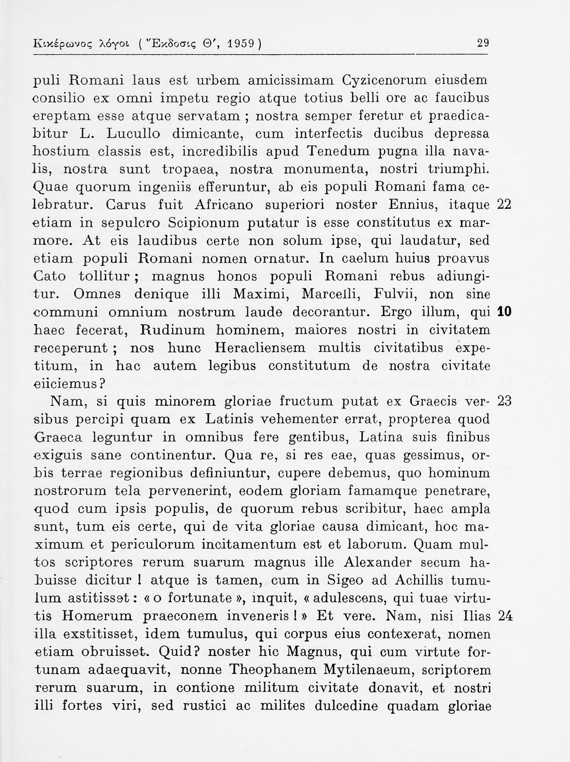 Μάρκος Τύλλιος Κικέρωνας (M. Tullius Cicero), Θεοφάνης Α. Κακριδής (σχόλια/παρατηρήσεις)