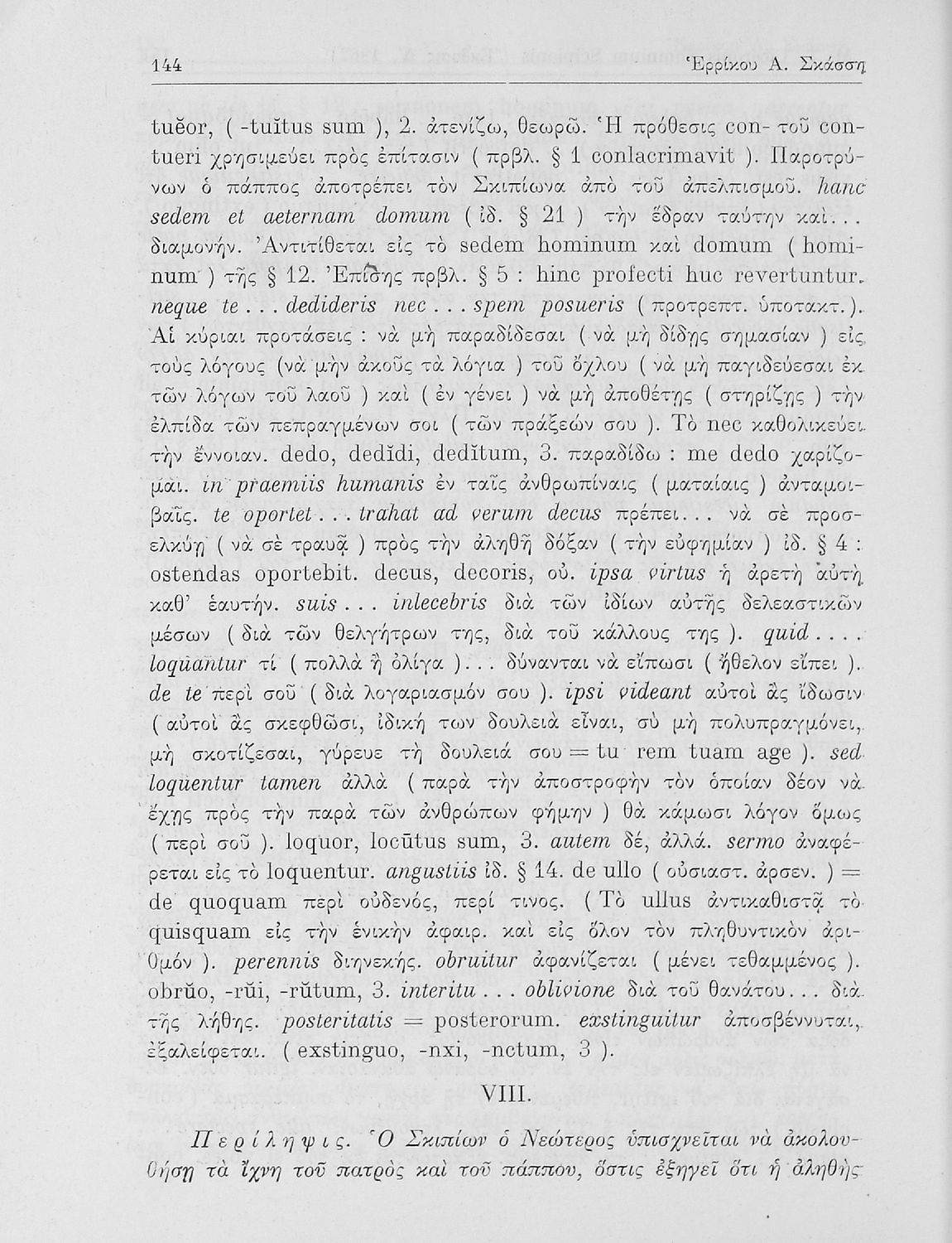LDR 01747 2200217 4500 035 ## _a01-18344 040 ## _aΙνστιτούτο Εκπαιδευτικής Πολιτικής 041 ## _ael 100 ## _aΠόπλιος Βιργίλιος Μάρων (P. Vergilius Maro) _aΜάρκος Τύλλιος Κικέρωνας (Marcus Tullius Ciceco) _aΚουίντος Οράτιος Φλάκκος (Q. Horati Flacci) _aΦωκίωνας Β. Βουσβούνης _aΕρρίκος Σκάσσης _aΖαφείριος Ν. Φραγκίσκος (εισαγωγή/σχόλια) 110 ## _a18344 245 0# _aΟυεργιλίου Αινειάς (Εκλογαί), M. Tulli Ciceronis Somnium Scipionis,Οράτιου Ωδαί 250 ## _a7η Έκδοση 260 ## _aΑθήνα _bΟργανισμός Εκδόσεως Σχολικών Βιβλίων _c1962 300 ## _a188 _c20 520 ## _aΣχολικό εγχειρίδιο Λατινικών για τη ΣΤ΄ Γυμνασίου που περιέχει αποσπάσματα από έργα τριών Λατίνων συγγραφέων, βιογραφικά σημειώματα των συγγραφέων, εισαγωγικά σχόλια, κείμενα και ερμηνευτικές παρατηρήσεις. 521 ## _aΣΤ' Γυμνασίου 522 ## _aΕλλάδα 546 ## _aΑπλή καθαρεύουσα 563 ## _aΣκληρό Εξώφυλλο 583 ## _a1095/18-4-1962 _c1962 650 #4 _aΆγχισος _aΑνδρομάχη _aΒάκχος _aΔίας _aΔούρειος Ίππος _aΕρμής _aΉρα _aΚαρχηδόνα _aΚορνήλιος Σκιπίων Αιμιλιανός _aΜ Αγρίππας _aΜαικήνας _aΜανίλιος _aΜόμμιος _aΠρίαμος _aΤρώες
