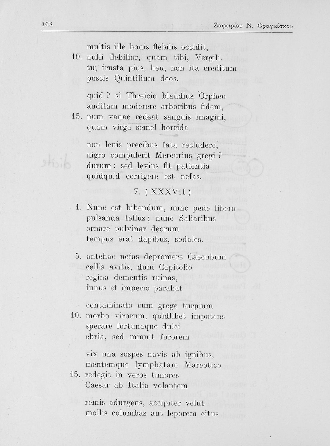 LDR 01747 2200217 4500 035 ## _a01-18344 040 ## _aΙνστιτούτο Εκπαιδευτικής Πολιτικής 041 ## _ael 100 ## _aΠόπλιος Βιργίλιος Μάρων (P. Vergilius Maro) _aΜάρκος Τύλλιος Κικέρωνας (Marcus Tullius Ciceco) _aΚουίντος Οράτιος Φλάκκος (Q. Horati Flacci) _aΦωκίωνας Β. Βουσβούνης _aΕρρίκος Σκάσσης _aΖαφείριος Ν. Φραγκίσκος (εισαγωγή/σχόλια) 110 ## _a18344 245 0# _aΟυεργιλίου Αινειάς (Εκλογαί), M. Tulli Ciceronis Somnium Scipionis,Οράτιου Ωδαί 250 ## _a7η Έκδοση 260 ## _aΑθήνα _bΟργανισμός Εκδόσεως Σχολικών Βιβλίων _c1962 300 ## _a188 _c20 520 ## _aΣχολικό εγχειρίδιο Λατινικών για τη ΣΤ΄ Γυμνασίου που περιέχει αποσπάσματα από έργα τριών Λατίνων συγγραφέων, βιογραφικά σημειώματα των συγγραφέων, εισαγωγικά σχόλια, κείμενα και ερμηνευτικές παρατηρήσεις. 521 ## _aΣΤ' Γυμνασίου 522 ## _aΕλλάδα 546 ## _aΑπλή καθαρεύουσα 563 ## _aΣκληρό Εξώφυλλο 583 ## _a1095/18-4-1962 _c1962 650 #4 _aΆγχισος _aΑνδρομάχη _aΒάκχος _aΔίας _aΔούρειος Ίππος _aΕρμής _aΉρα _aΚαρχηδόνα _aΚορνήλιος Σκιπίων Αιμιλιανός _aΜ Αγρίππας _aΜαικήνας _aΜανίλιος _aΜόμμιος _aΠρίαμος _aΤρώες