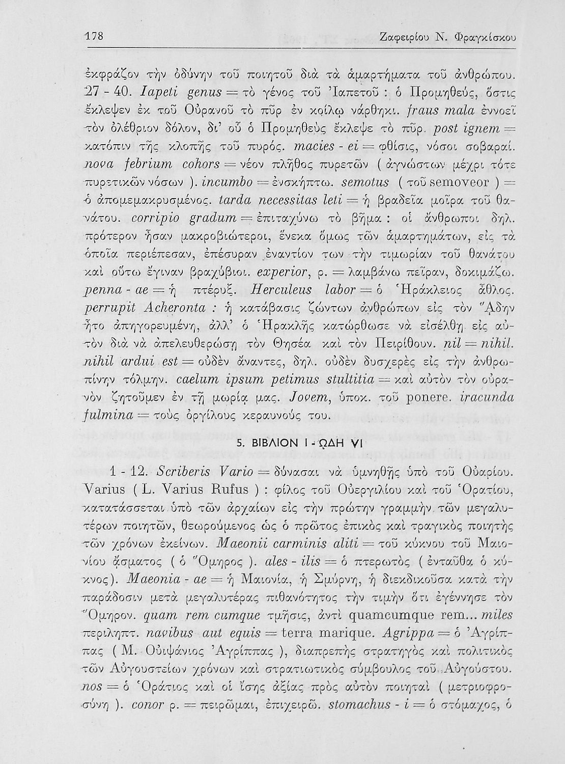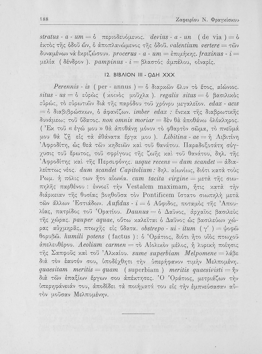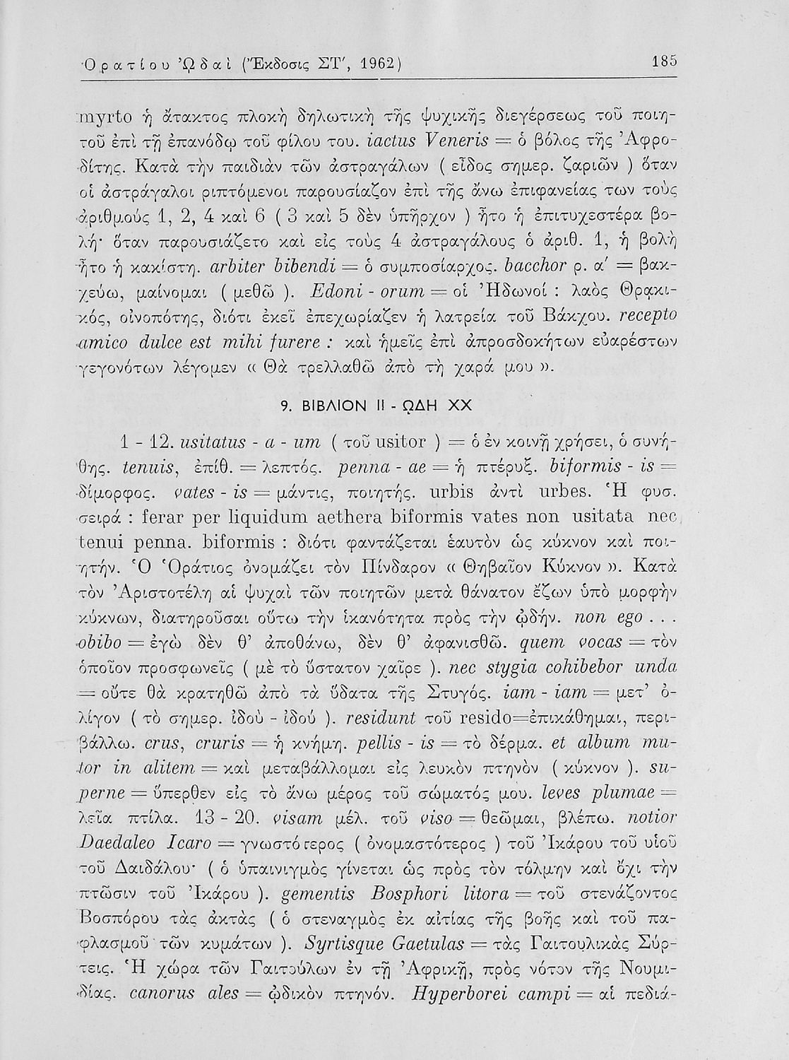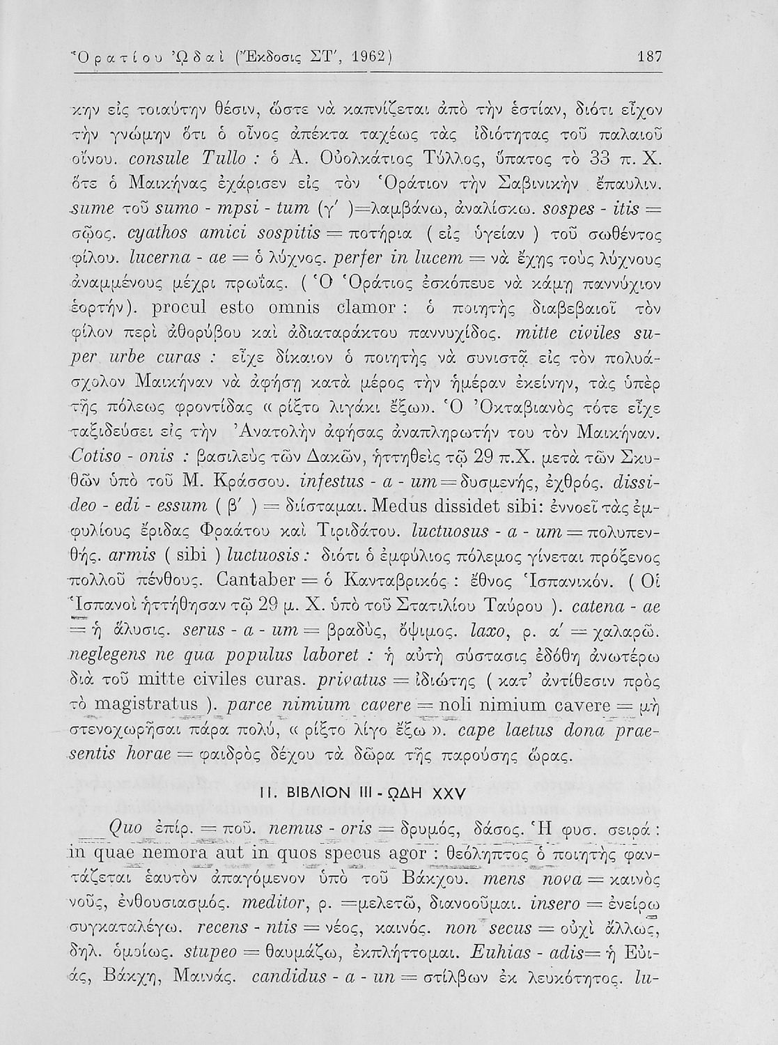 Πόπλιος Βιργίλιος Μάρων (P. Vergilius Maro), Μάρκος Τύλλιος Κικέρωνας (Marcus Tullius Ciceco), Κουίντος Οράτιος Φλάκκος (Q. Horati Flacci), Φωκίωνας Β. Βουσβούνης, Ερρίκος Σκάσσης, Ζαφείριος Ν. Φραγκίσκος (σχόλια)