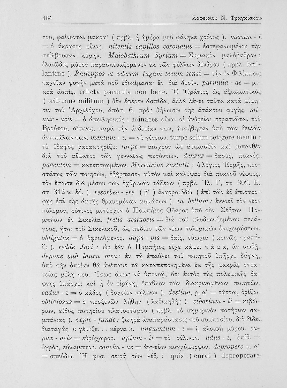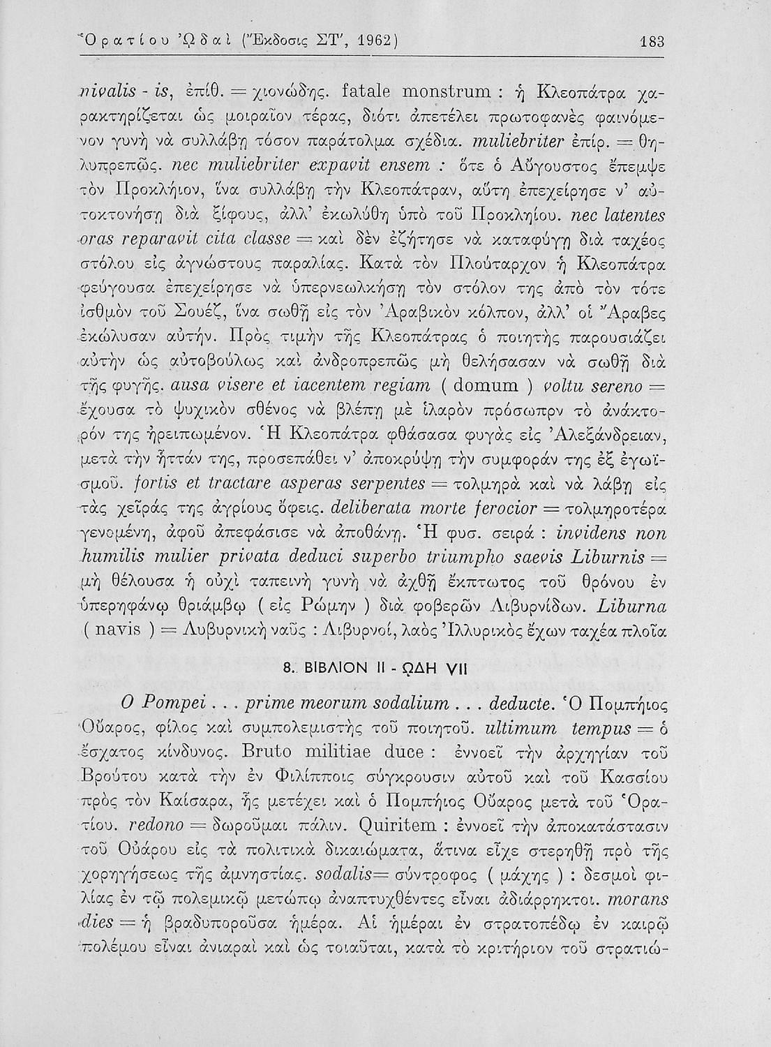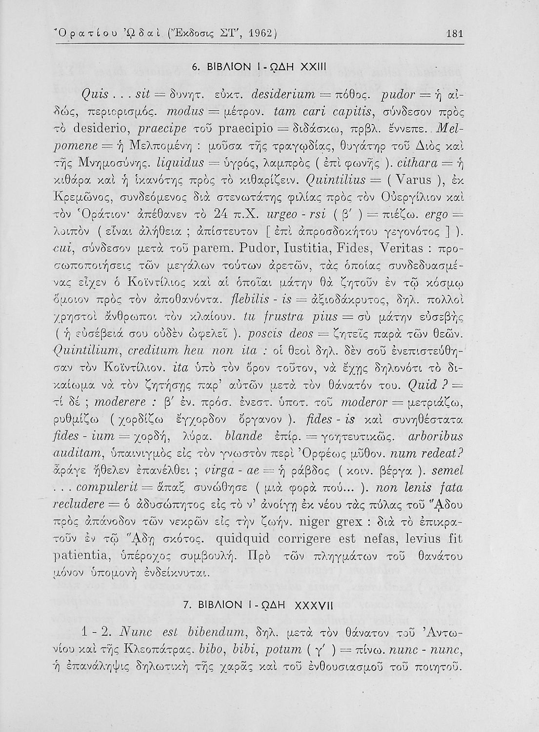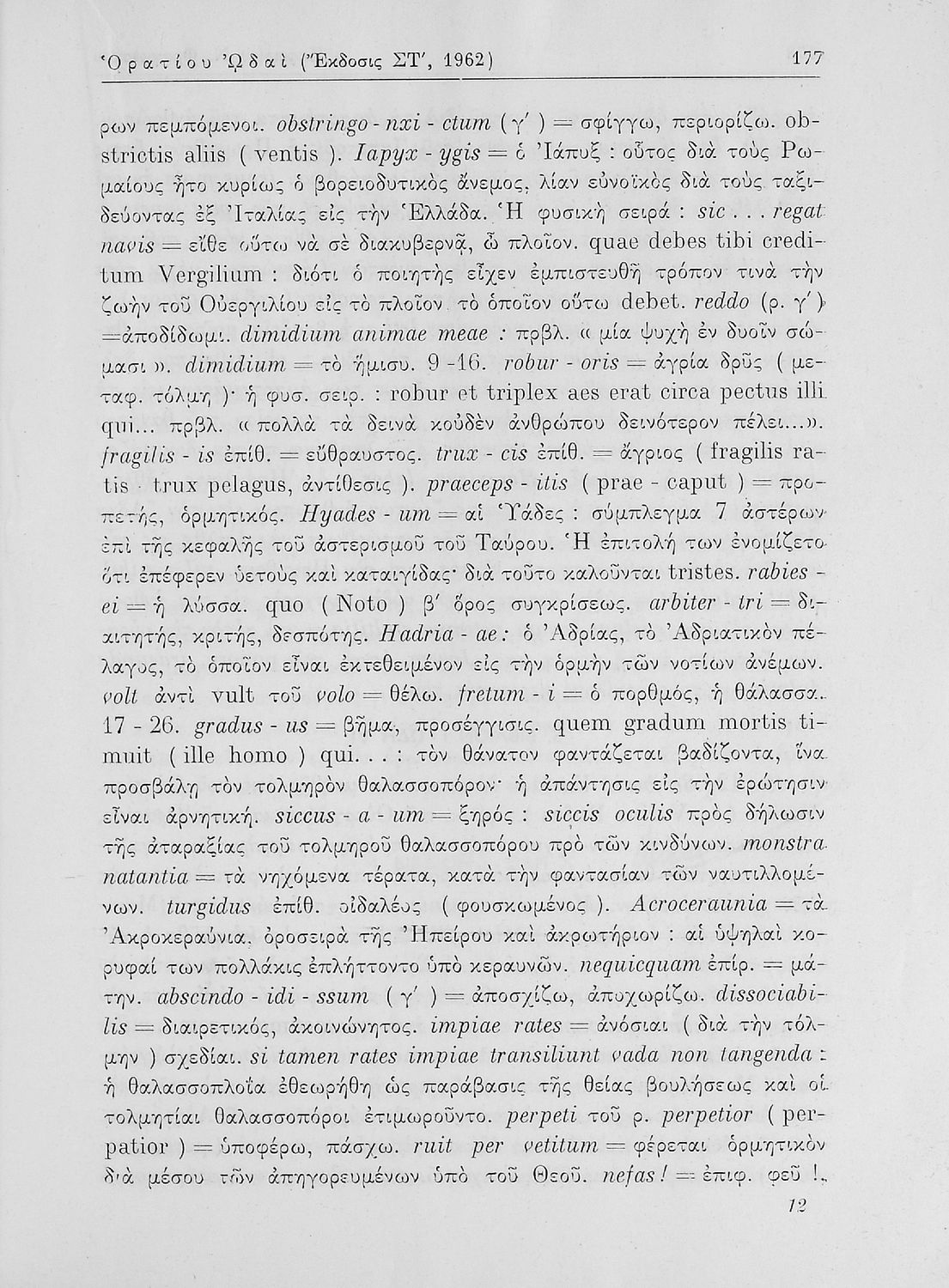 Πόπλιος Βιργίλιος Μάρων (P. Vergilius Maro), Μάρκος Τύλλιος Κικέρωνας (Marcus Tullius Ciceco), Κουίντος Οράτιος Φλάκκος (Q. Horati Flacci), Φωκίωνας Β. Βουσβούνης, Ερρίκος Σκάσσης, Ζαφείριος Ν. Φραγκίσκος (σχόλια)