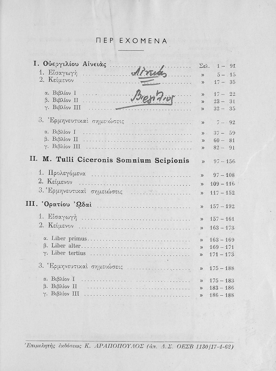Τίτλος: Ουεργιλίου Αινειάς (Εκλογαί), M. Tulli Ciceronis Somnium Scipionis,Οράτιου Ωδαί