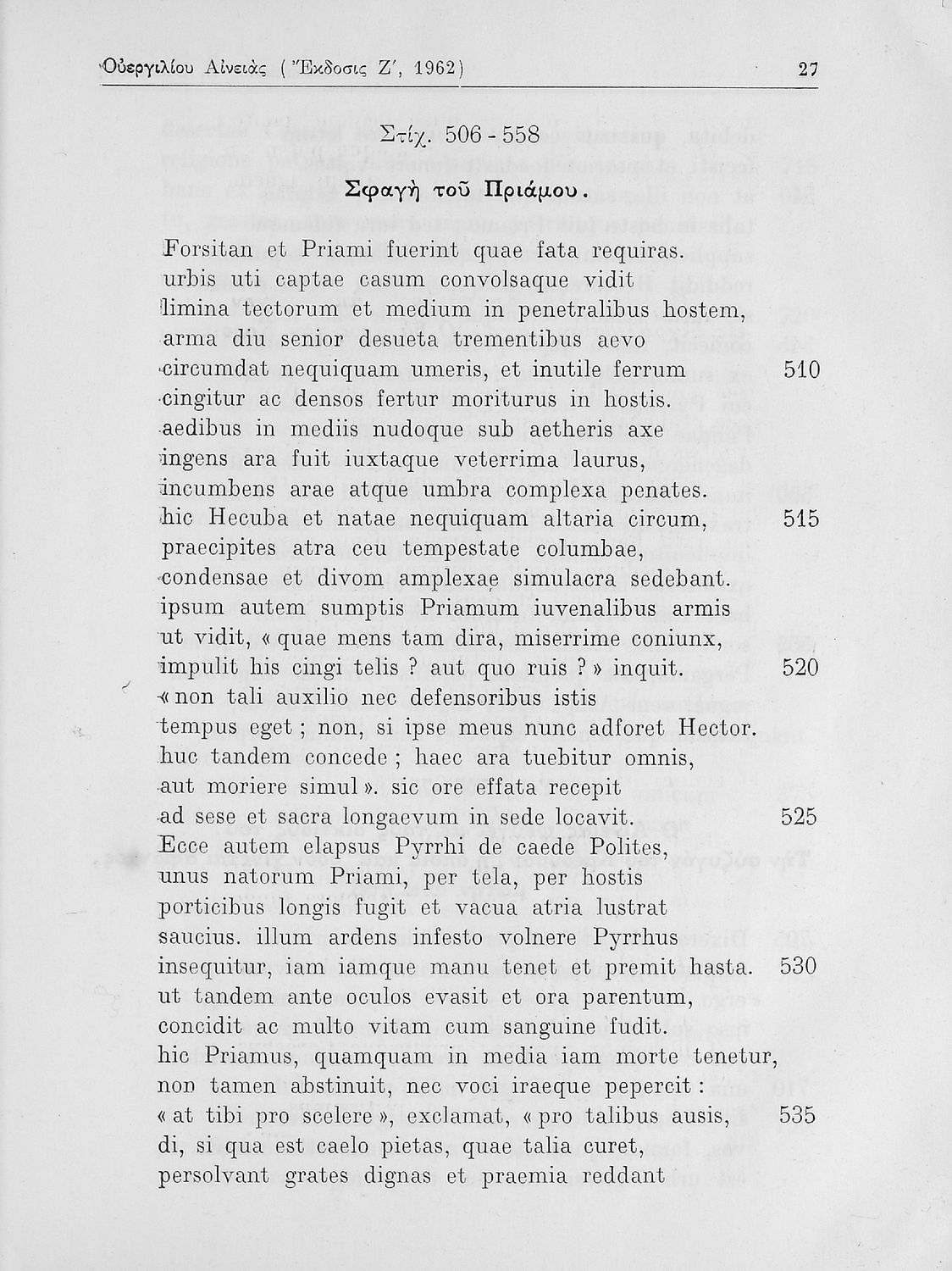 LDR 01747 2200217 4500 035 ## _a01-18344 040 ## _aΙνστιτούτο Εκπαιδευτικής Πολιτικής 041 ## _ael 100 ## _aΠόπλιος Βιργίλιος Μάρων (P. Vergilius Maro) _aΜάρκος Τύλλιος Κικέρωνας (Marcus Tullius Ciceco) _aΚουίντος Οράτιος Φλάκκος (Q. Horati Flacci) _aΦωκίωνας Β. Βουσβούνης _aΕρρίκος Σκάσσης _aΖαφείριος Ν. Φραγκίσκος (εισαγωγή/σχόλια) 110 ## _a18344 245 0# _aΟυεργιλίου Αινειάς (Εκλογαί), M. Tulli Ciceronis Somnium Scipionis,Οράτιου Ωδαί 250 ## _a7η Έκδοση 260 ## _aΑθήνα _bΟργανισμός Εκδόσεως Σχολικών Βιβλίων _c1962 300 ## _a188 _c20 520 ## _aΣχολικό εγχειρίδιο Λατινικών για τη ΣΤ΄ Γυμνασίου που περιέχει αποσπάσματα από έργα τριών Λατίνων συγγραφέων, βιογραφικά σημειώματα των συγγραφέων, εισαγωγικά σχόλια, κείμενα και ερμηνευτικές παρατηρήσεις. 521 ## _aΣΤ' Γυμνασίου 522 ## _aΕλλάδα 546 ## _aΑπλή καθαρεύουσα 563 ## _aΣκληρό Εξώφυλλο 583 ## _a1095/18-4-1962 _c1962 650 #4 _aΆγχισος _aΑνδρομάχη _aΒάκχος _aΔίας _aΔούρειος Ίππος _aΕρμής _aΉρα _aΚαρχηδόνα _aΚορνήλιος Σκιπίων Αιμιλιανός _aΜ Αγρίππας _aΜαικήνας _aΜανίλιος _aΜόμμιος _aΠρίαμος _aΤρώες