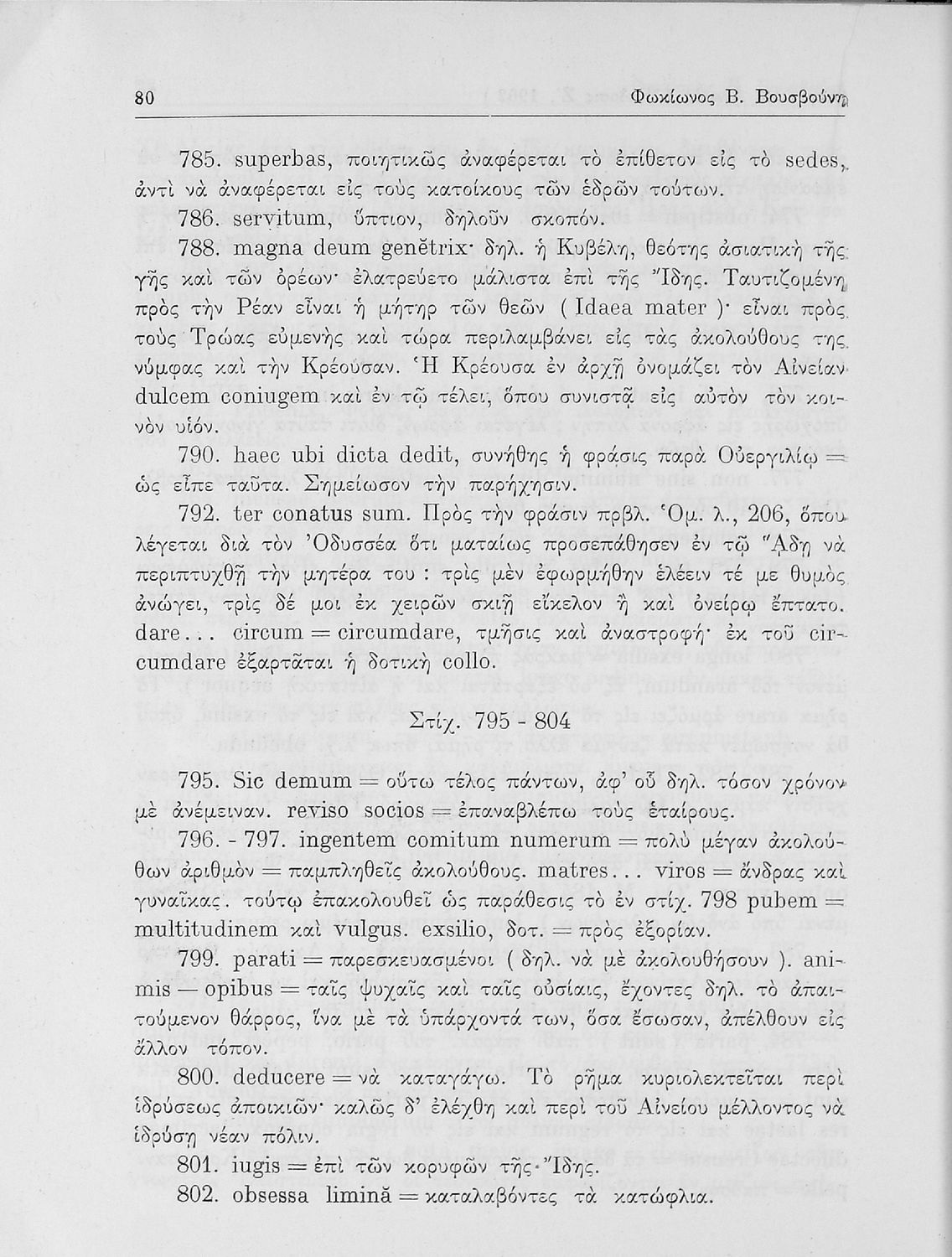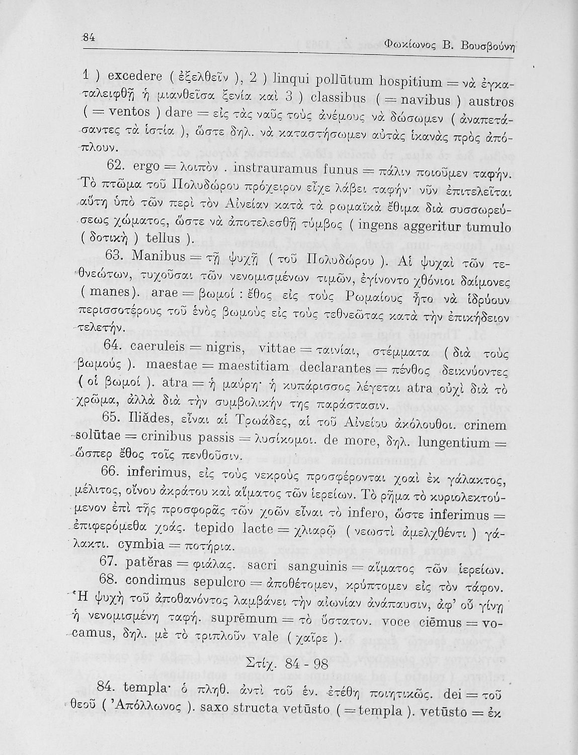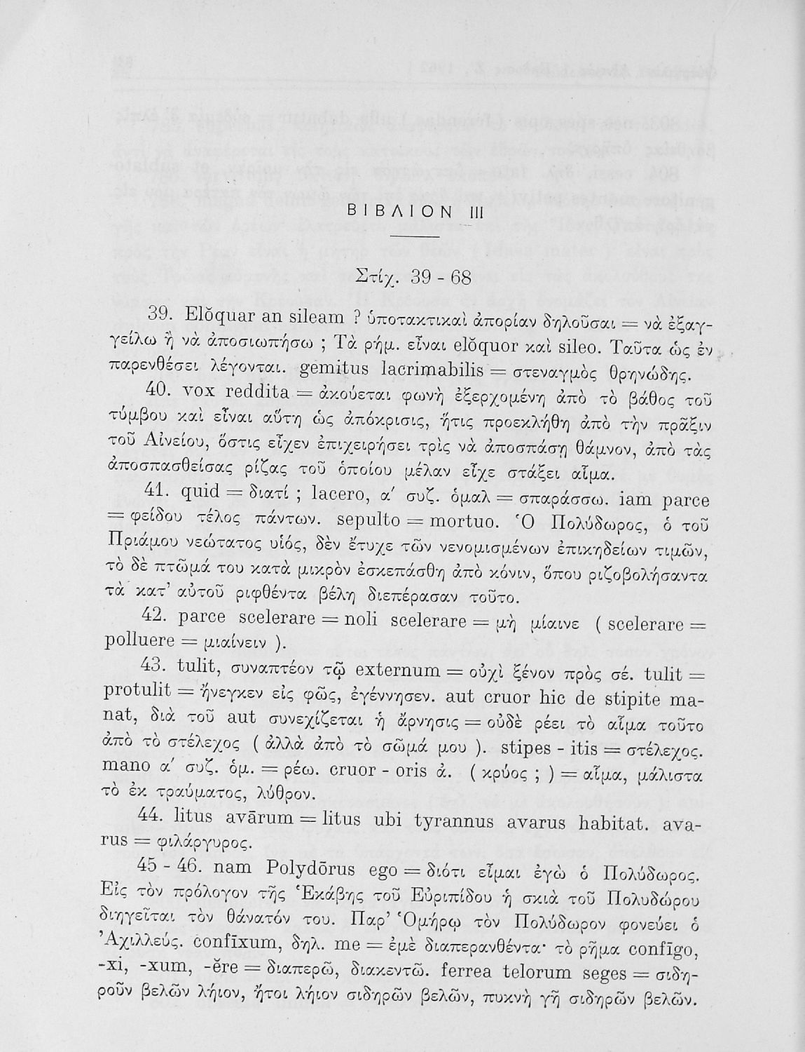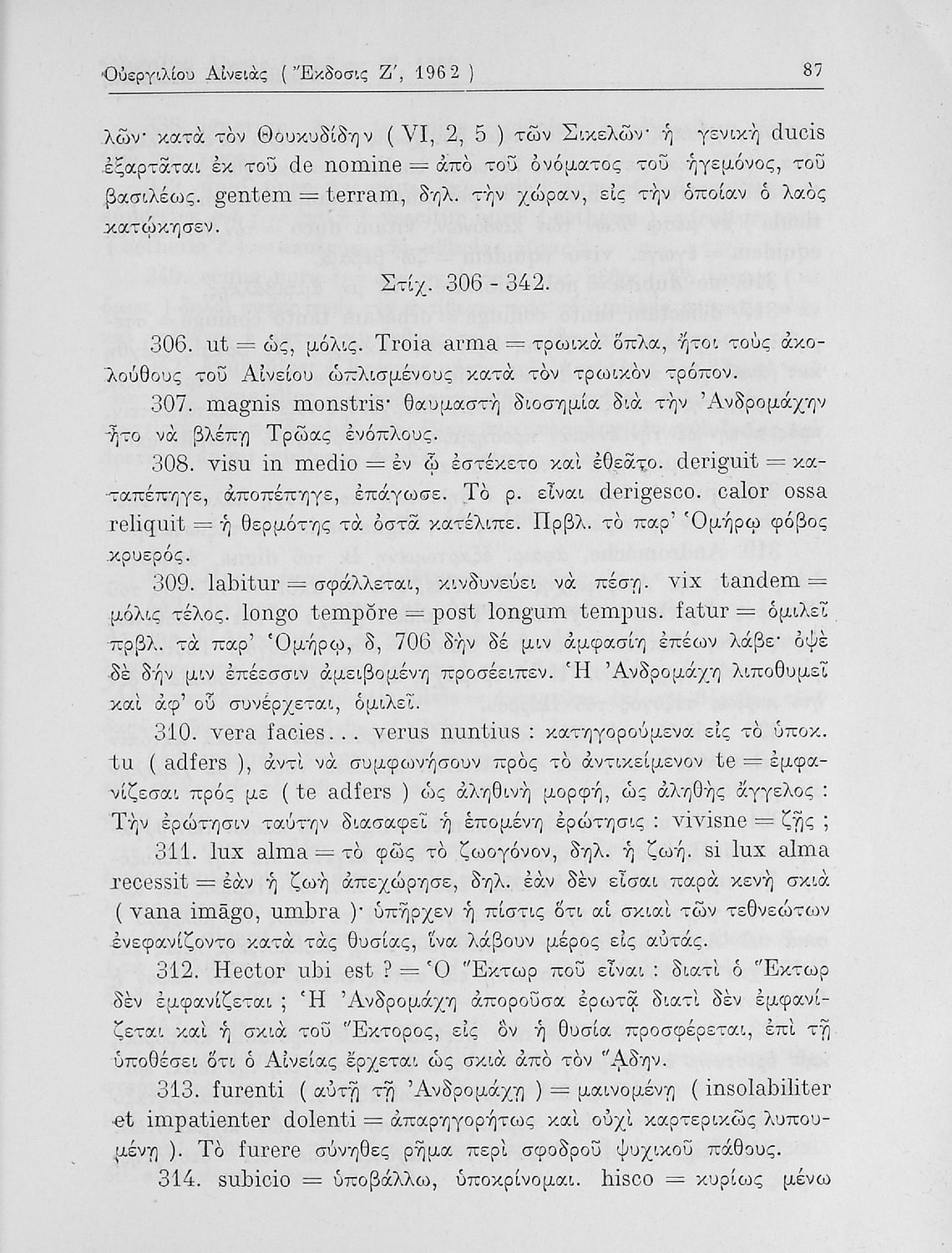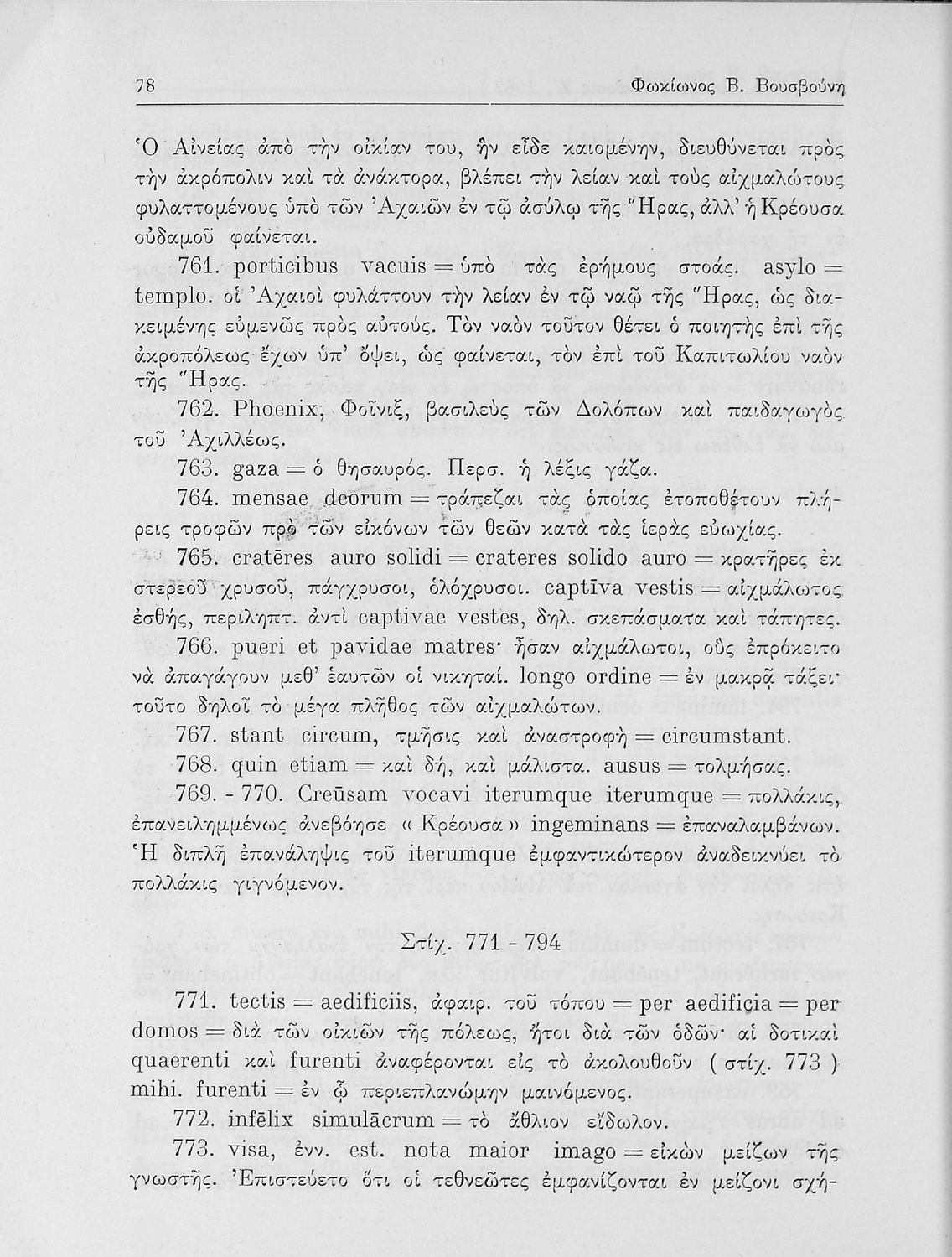 Πόπλιος Βιργίλιος Μάρων (P. Vergilius Maro), Μάρκος Τύλλιος Κικέρωνας (Marcus Tullius Ciceco), Κουίντος Οράτιος Φλάκκος (Q. Horati Flacci), Φωκίωνας Β. Βουσβούνης, Ερρίκος Σκάσσης, Ζαφείριος Ν. Φραγκίσκος (σχόλια)