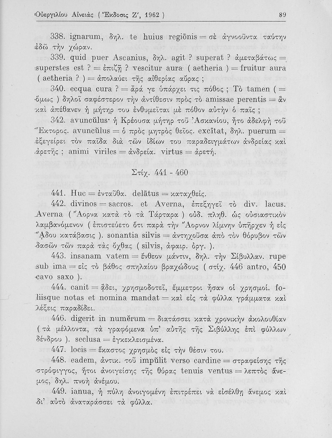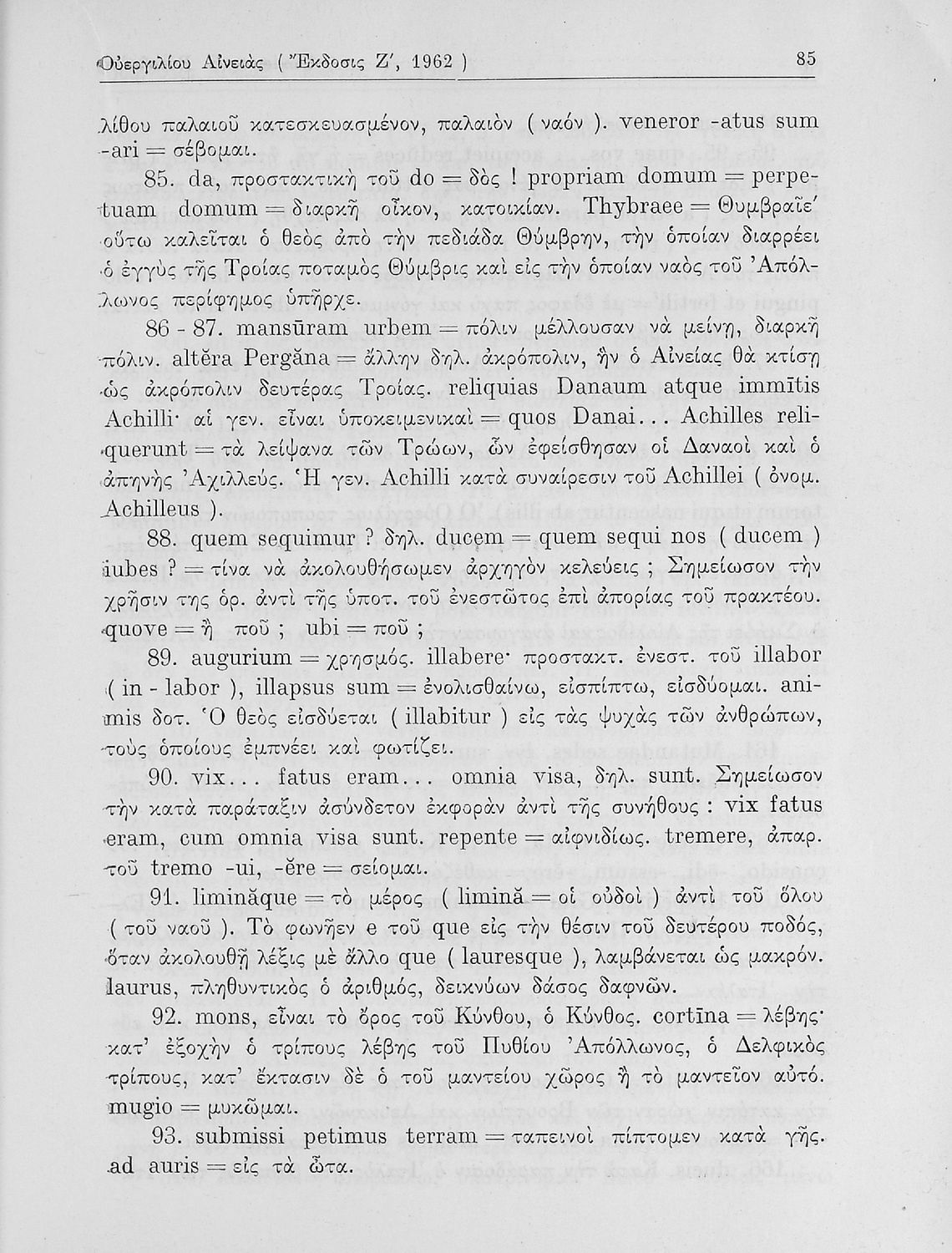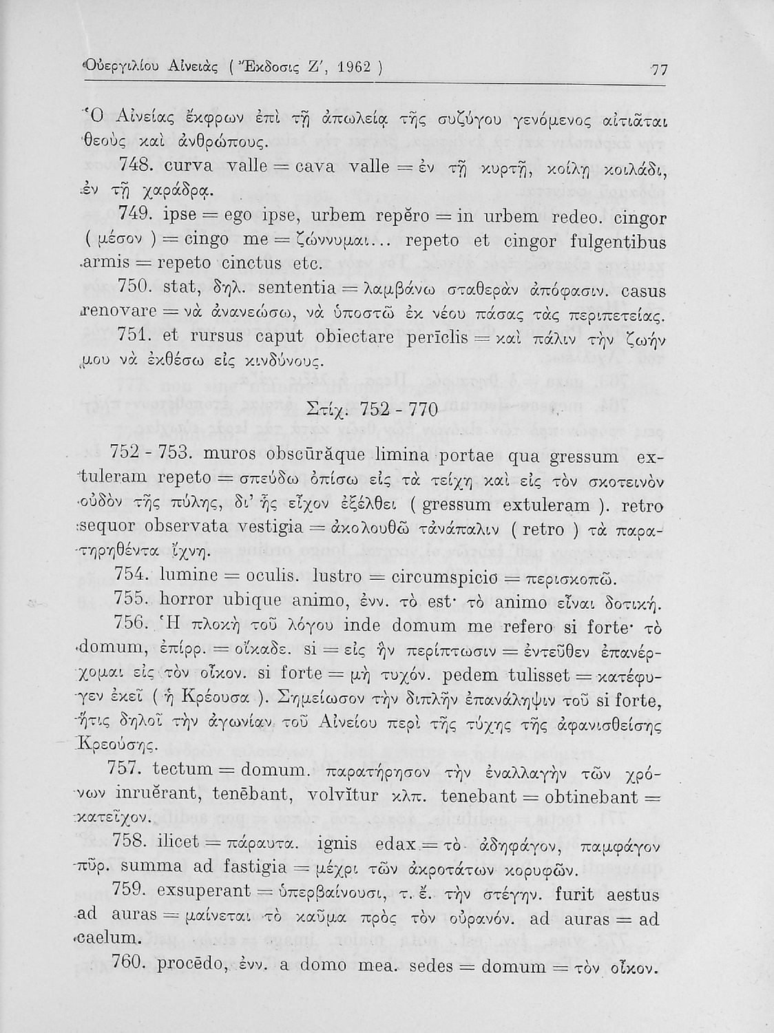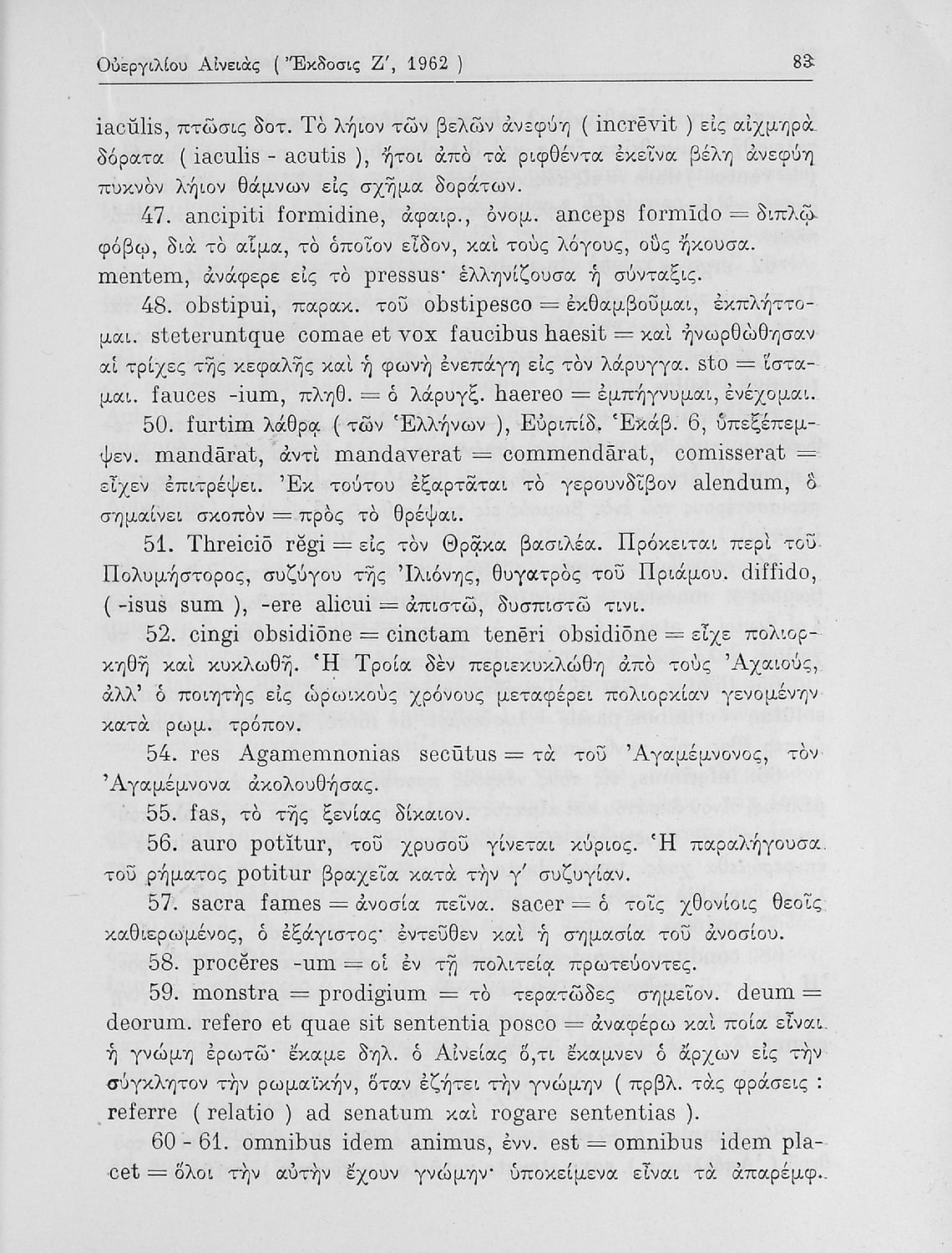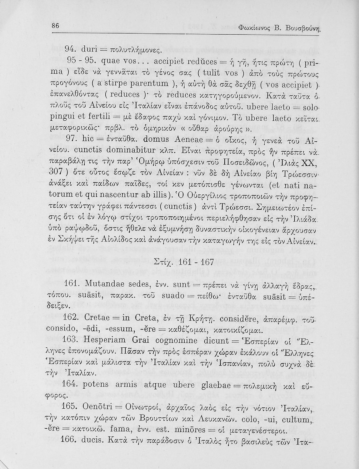 Πόπλιος Βιργίλιος Μάρων (P. Vergilius Maro), Μάρκος Τύλλιος Κικέρωνας (Marcus Tullius Ciceco), Κουίντος Οράτιος Φλάκκος (Q. Horati Flacci), Φωκίωνας Β. Βουσβούνης, Ερρίκος Σκάσσης, Ζαφείριος Ν. Φραγκίσκος (σχόλια)