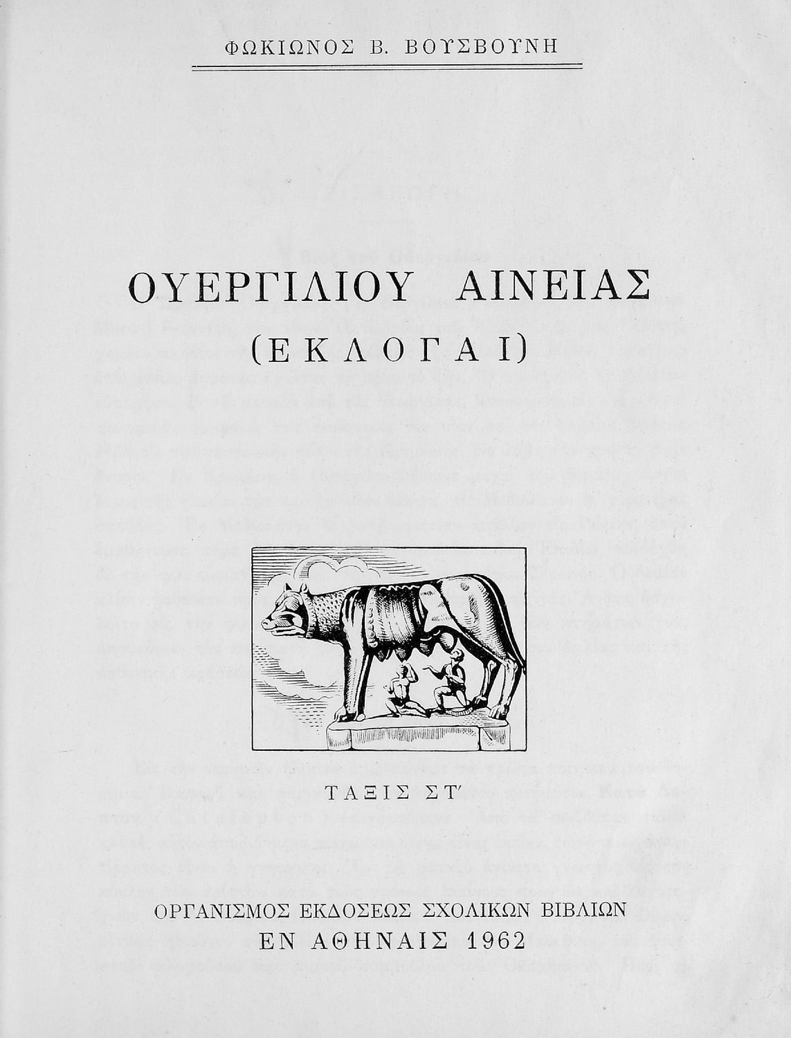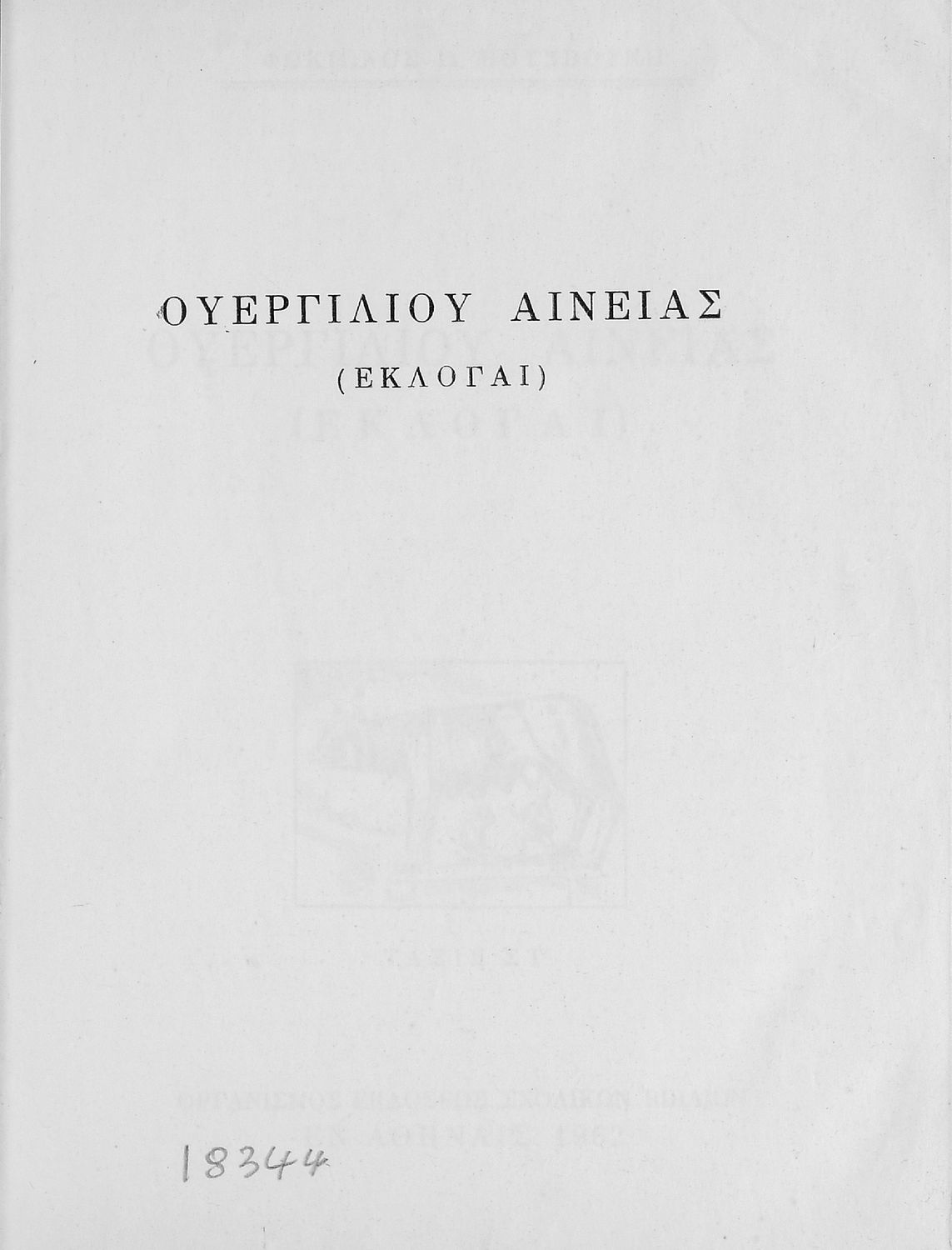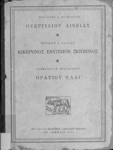 Κωδικός αναγνώρισης: 01-18344 Τίτλος: Ουεργιλίου Αινειάς (Εκλογαί), M. Tulli Ciceronis Somnium Scipionis,Οράτιου Ωδαί Συγγραφέας: Πόπλιος Βιργίλιος Μάρων (P. Vergilius Maro), Μάρκος Τύλλιος Κικέρωνας (Marcus Tullius Ciceco), Κουίντος Οράτιος Φλάκκος (Q. Horati Flacci), Φωκίωνας Β. Βουσβούνης, Ερρίκος Σκάσσης, Ζαφείριος Ν. Φραγκίσκος (εισαγωγή/σχόλια) Μέγεθος και υπόστρωμα: Σχολικό εγχειρίδιο, 20εκ., σκληρό εξώφυλλο, 188 σελίδες. |