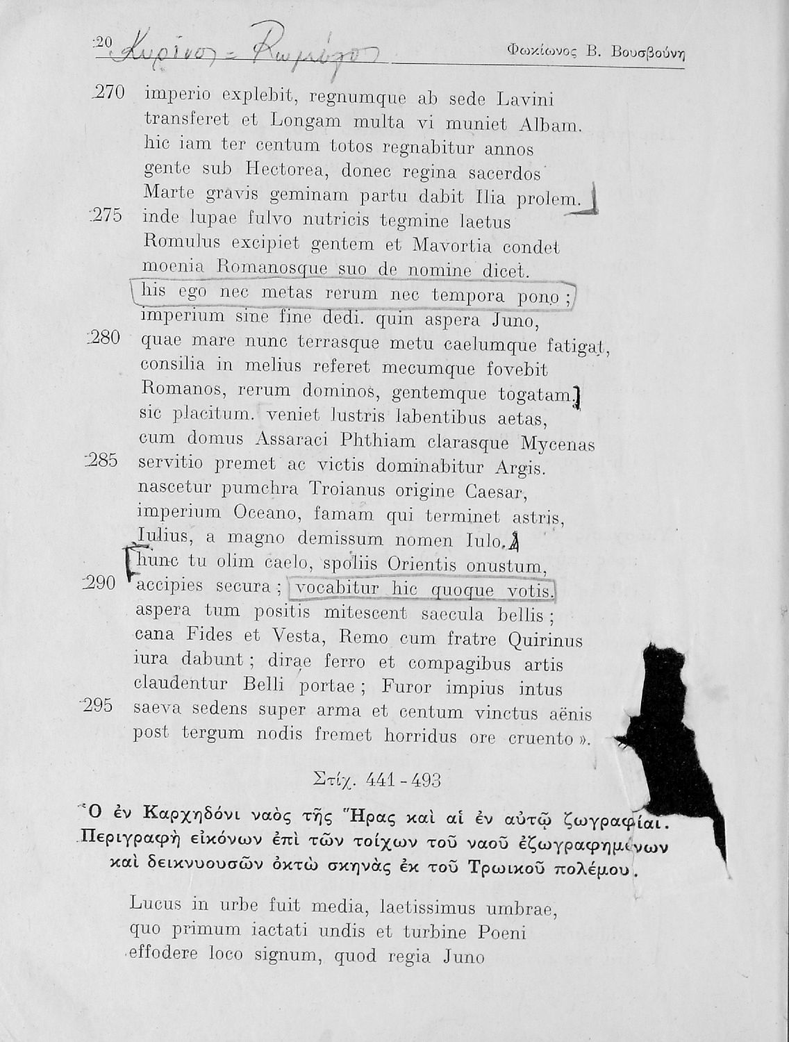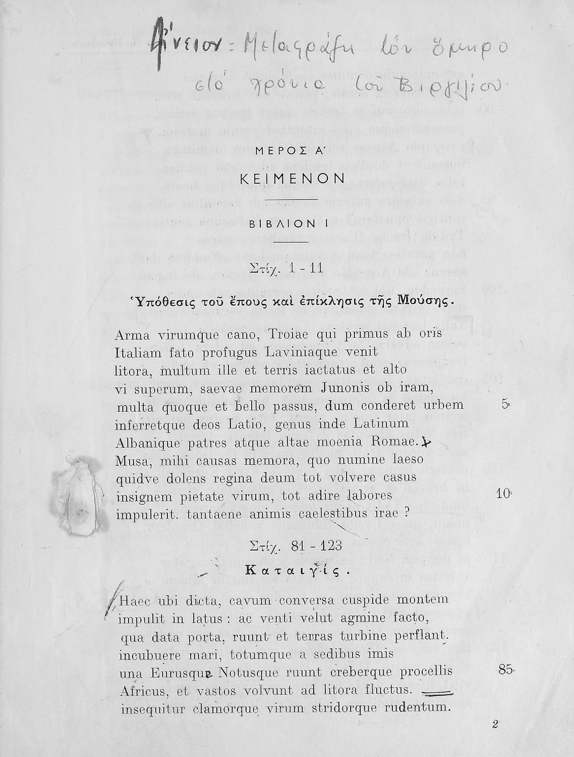Βαθμίδα εκπαίδευσης: Δευτεροβάθμια Τάξη: ΣΤ' Γυμνασίου Μάθημα: Λατινικά Γλώσσα: Απλή καθαρεύουσα Παρουσίαση περιεχομένου: Σχολικό εγχειρίδιο Λατινικών για τη ΣΤ΄ Γυμνασίου που περιέχει αποσπάσματα από έργα τριών Λατίνων συγγραφέων, βιογραφικά σημειώματα των συγγραφέων, εισαγωγικά σχόλια, κείμενα και ερμηνευτικές παρατηρήσεις. |