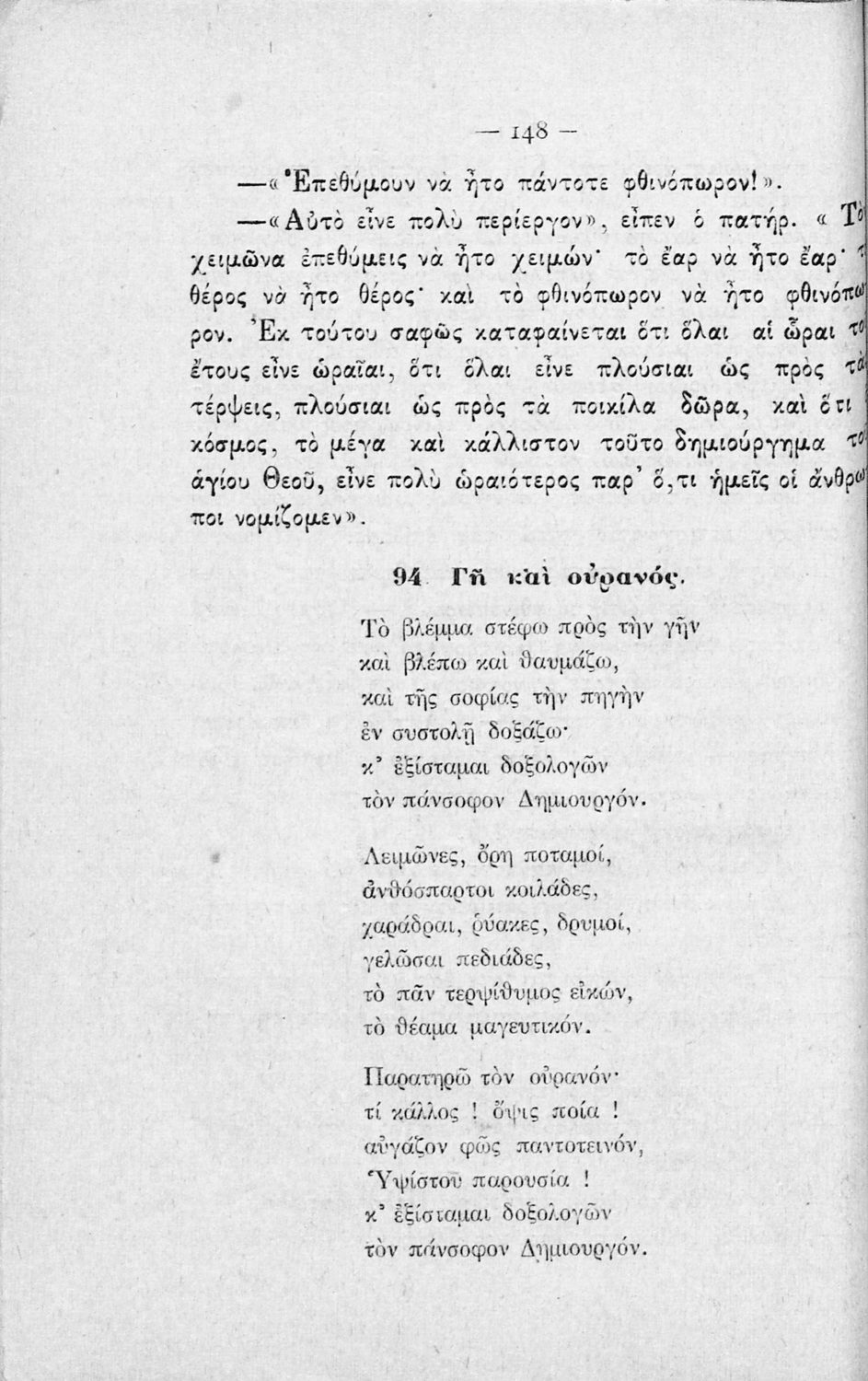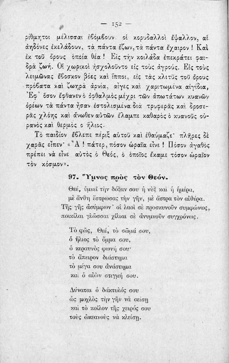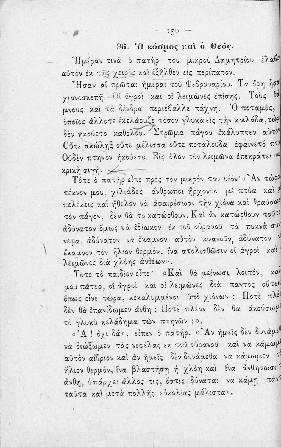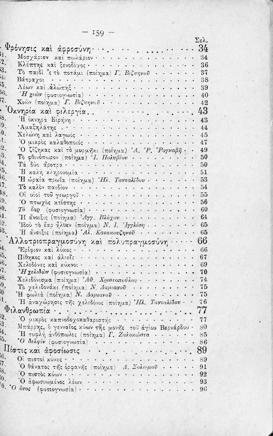 Αναγνωστικό Γ΄ Δημοτικού που περιλαμβάνει ποιήματα και πεζά με θέματα όπως η καλή και κακή συναναστροφή, η φρόνηση, η οκνηρία, η φιλανθρωπία και η πίστη στο Θεό