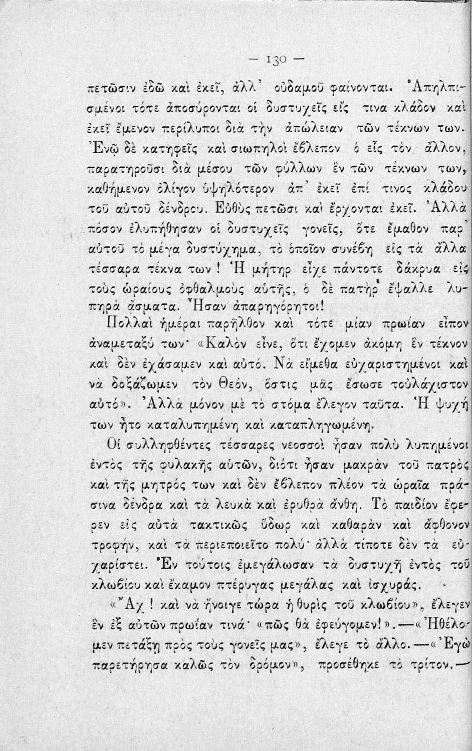 Αναγνωστικό Β' Δημοτικού που περιλαμβάνει πεζά και ποιήματα, ηθικοπλαστικού περιεχομένου, και προβάλει αξίες και αρετές όπως η τιμιότητα, η ευσπλαχνία, η γενναιότητα, η αγάπη, η φιλοπατρία, κι η ευγνωμοσύνη.