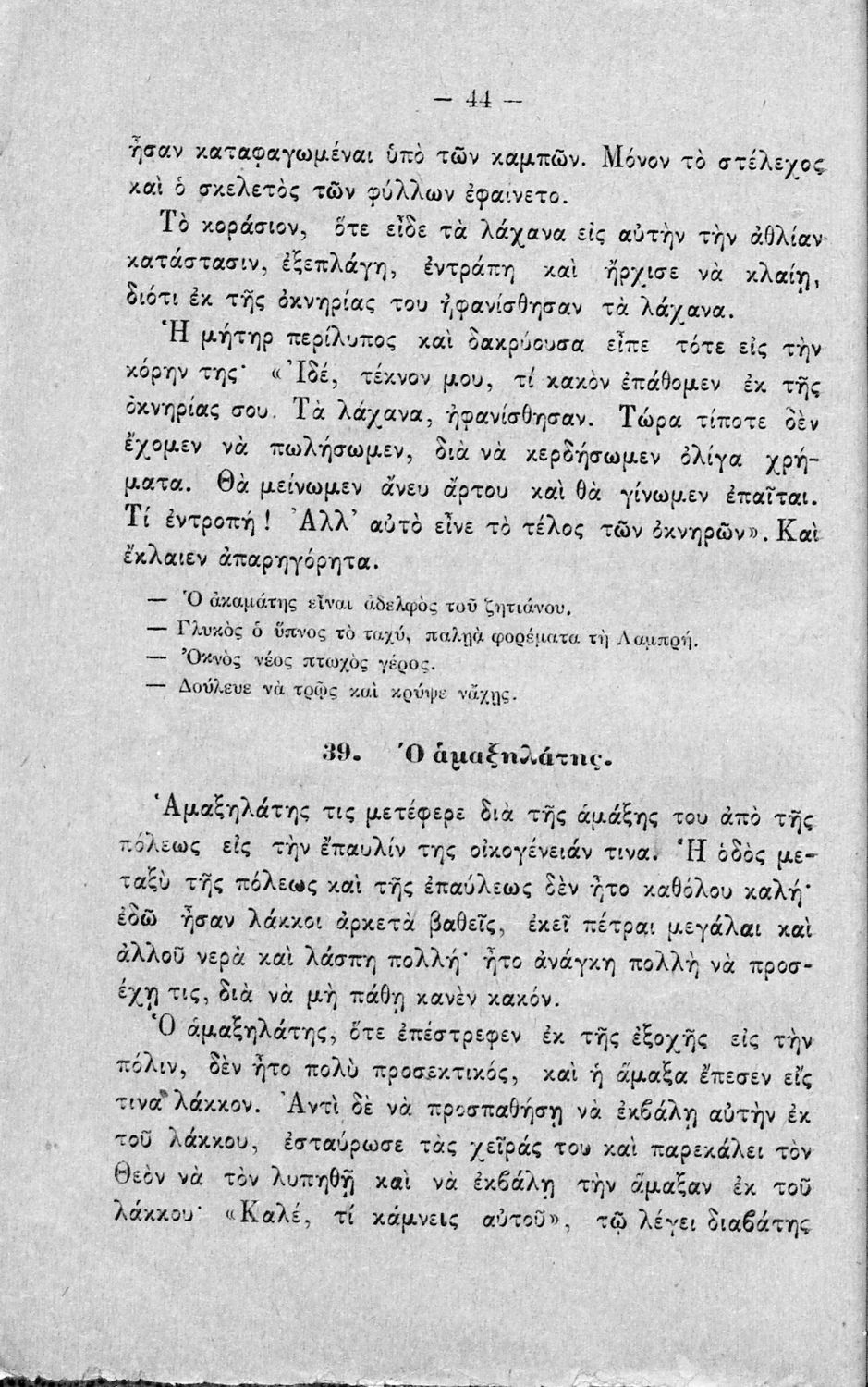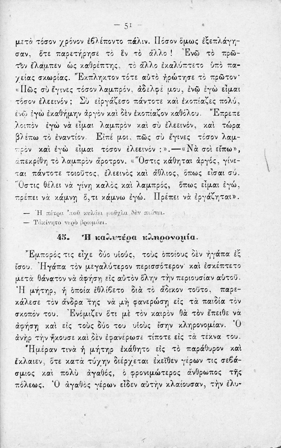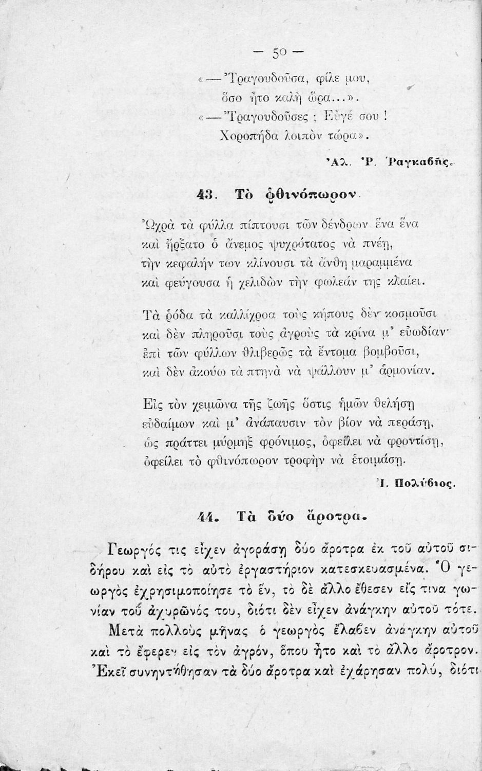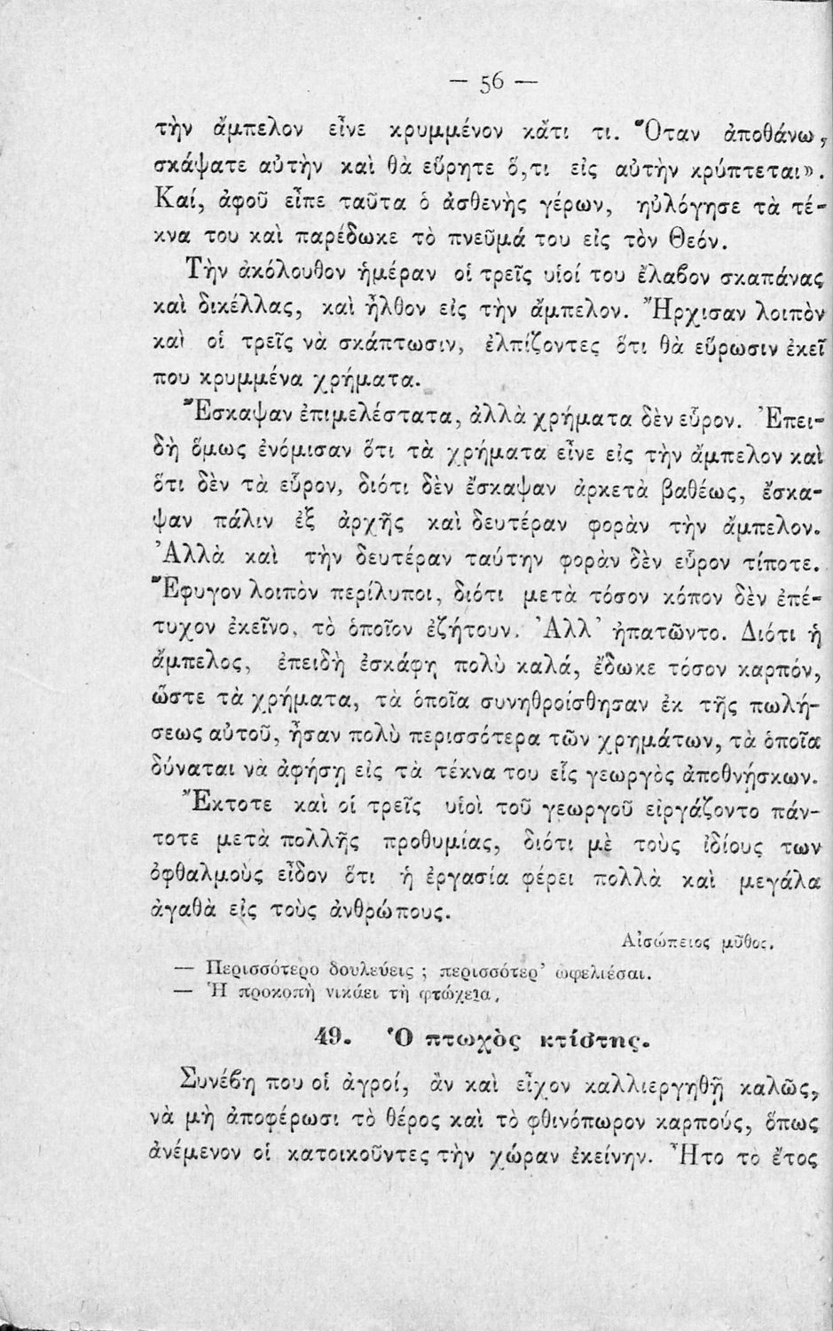 Βαθμίδα εκπαίδευσης: Πρωτοβάθμια Τάξη: Γ' Δημοτικού Μάθημα: Νέα Ελληνικά Γλώσσα: Καθαρεύουσα Παρουσίαση περιεχομένου: Αναγνωστικό Γ΄ Δημοτικού που περιλαμβάνει ποιήματα και πεζά με θέματα όπως η καλή και κακή συναναστροφή, η φρόνηση, η οκνηρία, η φιλανθρωπία και η πίστη στο Θεό |