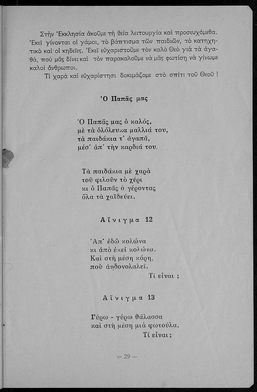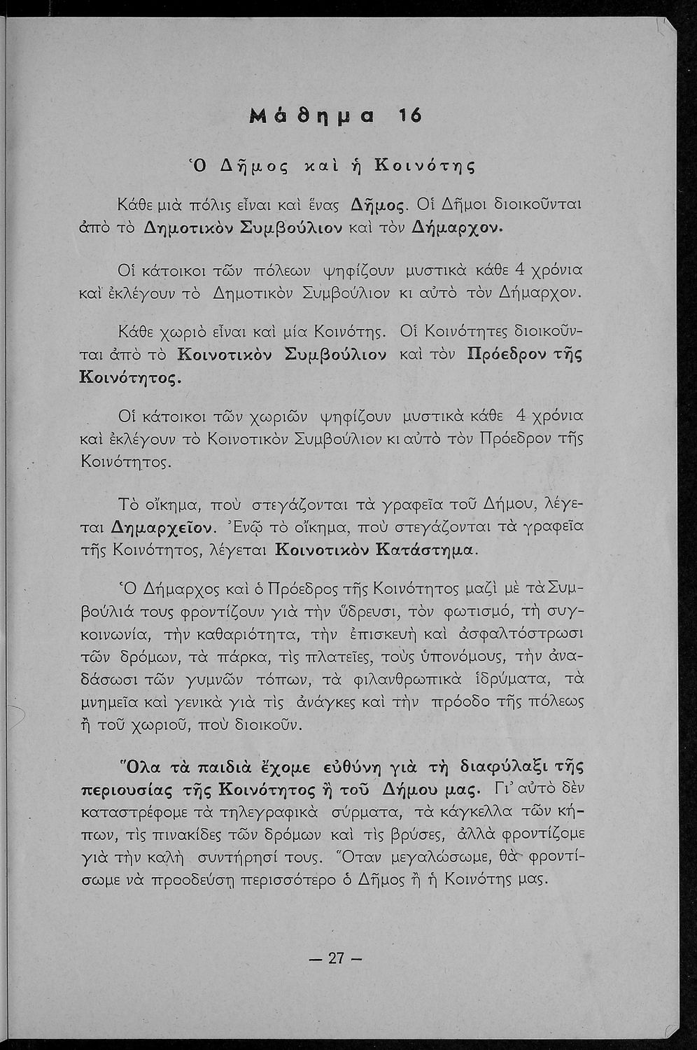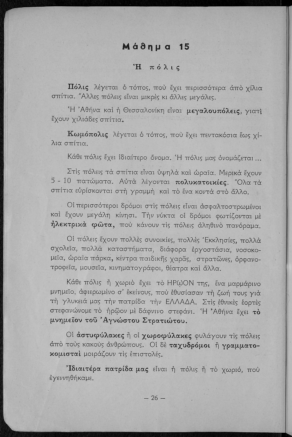 Σχολικό εγχειρίδιο Γεωγραφίας για την Γ' Δημοτικού. Είναι σύμφωνο με το αναλυτικό πρόγραμμα του 1913. Περιλαμβάνει στοιχεία πατριδογνωσίας, γεωγραφικούς ορισμούς και στοιχεία της Αττικής και των επαρχιών της.
