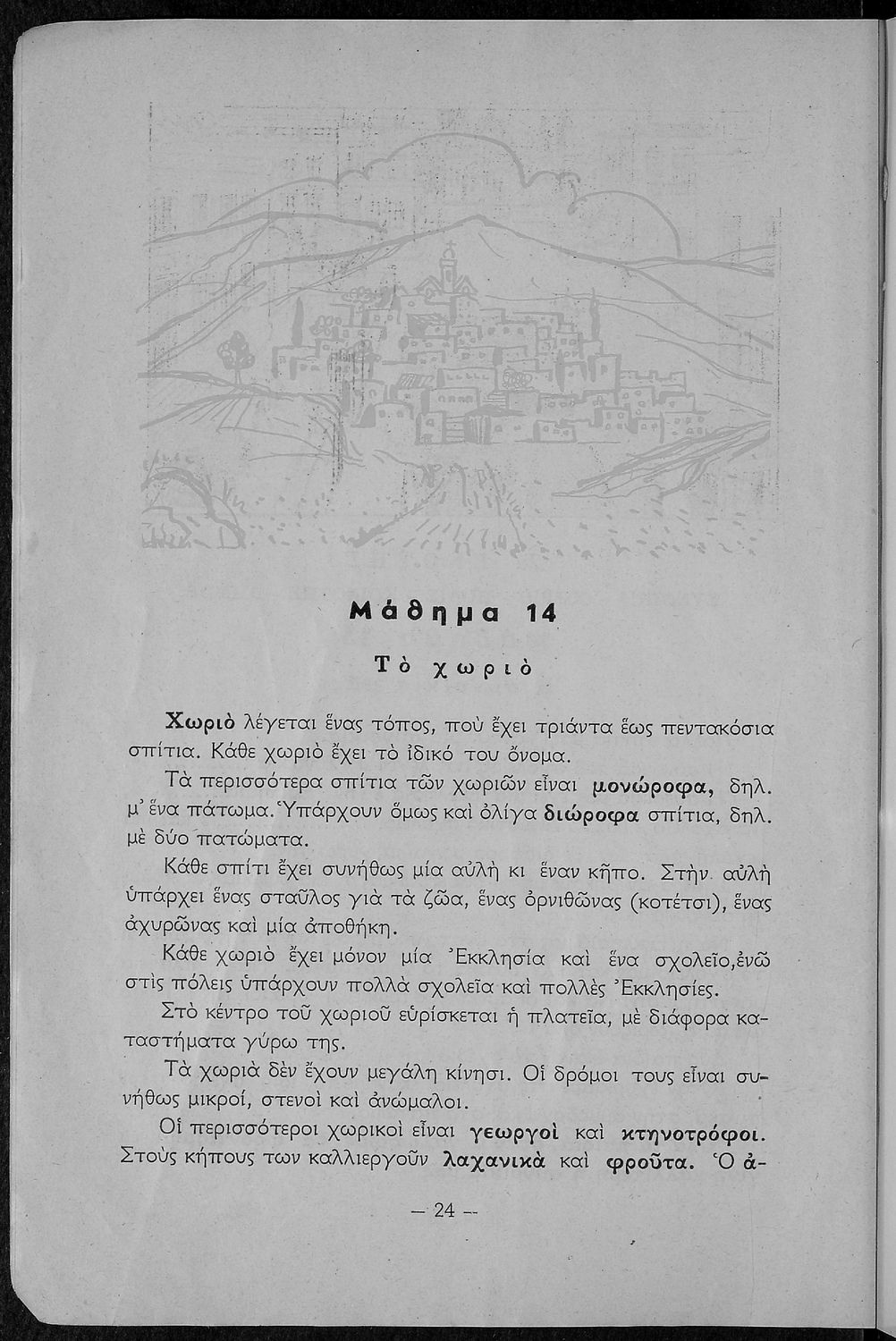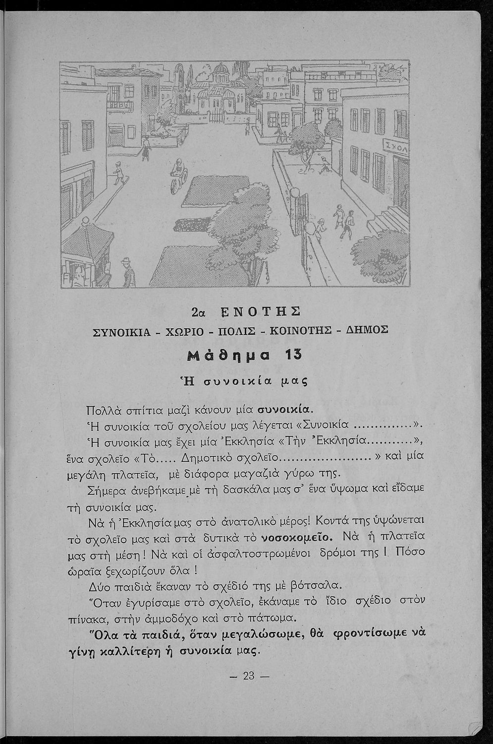 Σχολικό εγχειρίδιο Γεωγραφίας για την Γ' Δημοτικού. Είναι σύμφωνο με το αναλυτικό πρόγραμμα του 1913. Περιλαμβάνει στοιχεία πατριδογνωσίας, γεωγραφικούς ορισμούς και στοιχεία της Αττικής και των επαρχιών της.
