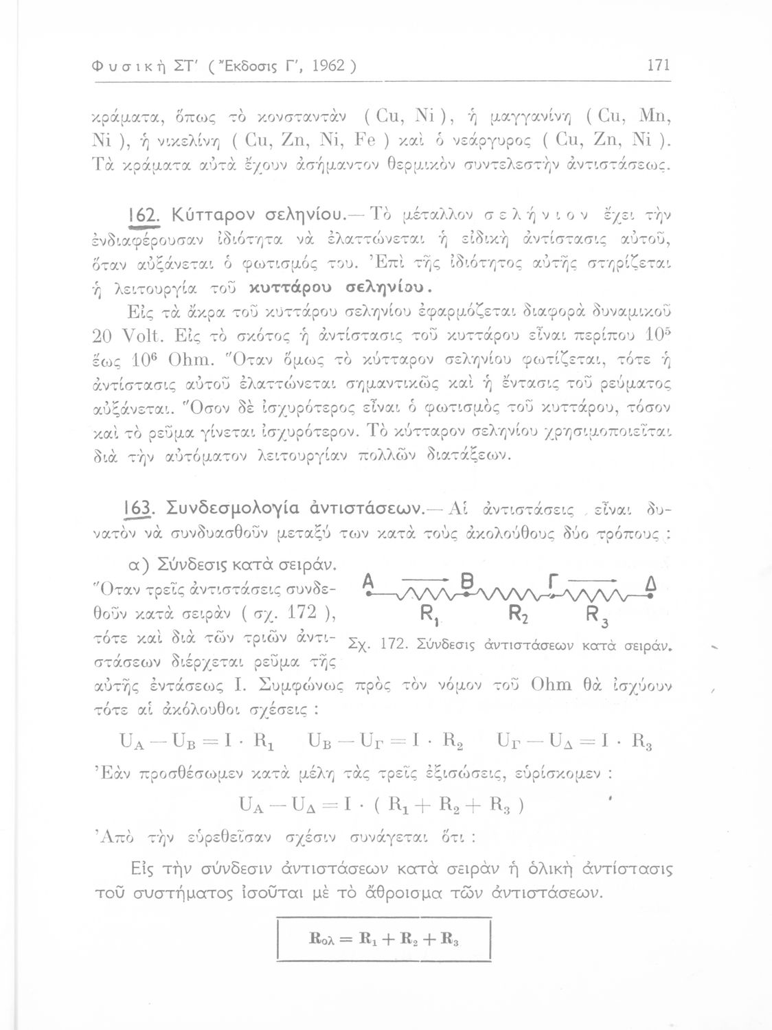 Σχολικό εγχειρίδιο Φυσικής. Το βιβλίο χωρίζεται σε τέσσερα μέρη, καθένα από τα οποία περιγράφει συγκεκριμένο πεδίο της φυσικής επιστήμης (οπτική, μαγνητισμός, ηλεκτρισμός κλπ.). Ερμηνεύονται τα φυσικά μεγέθη, ...
