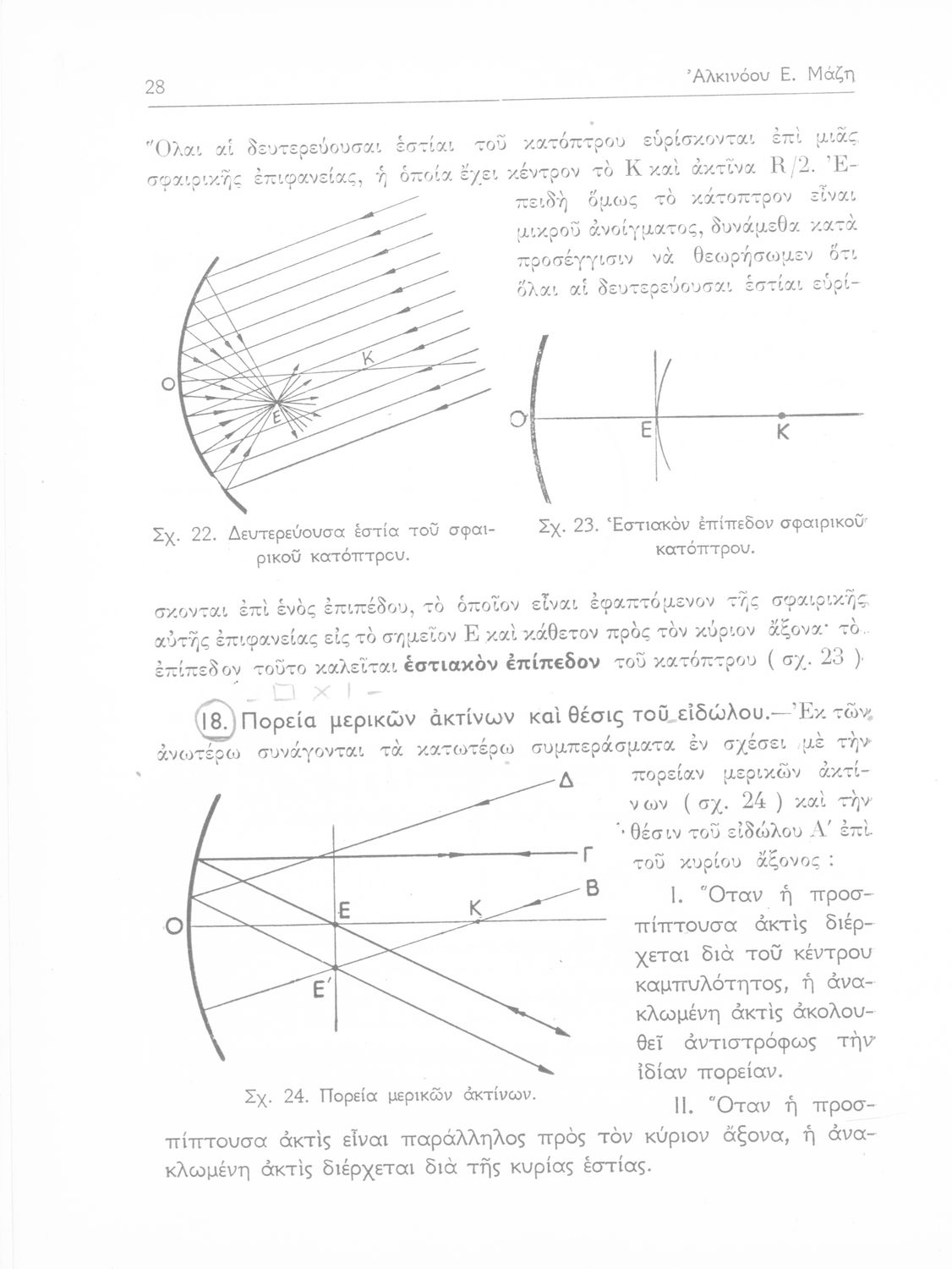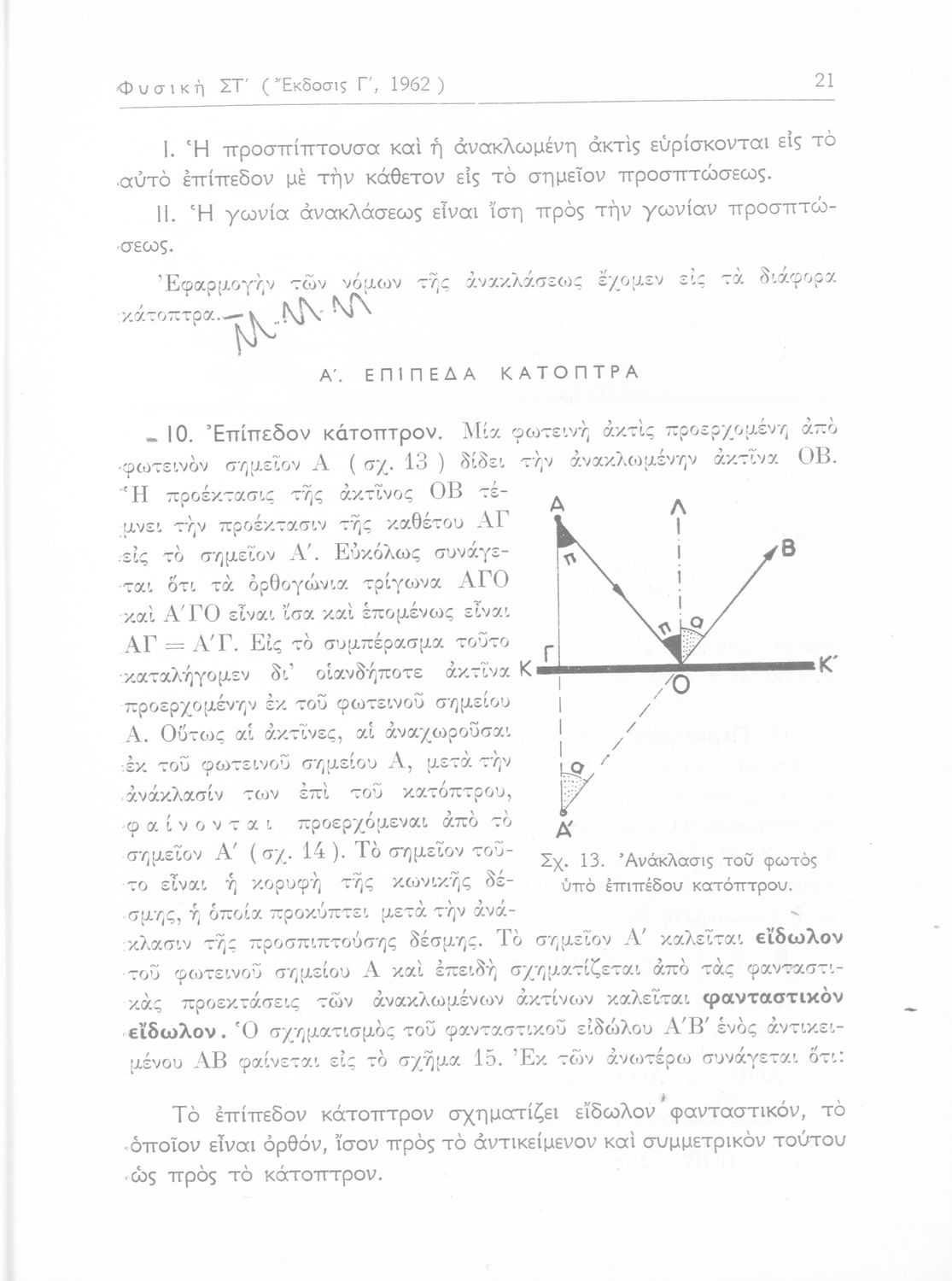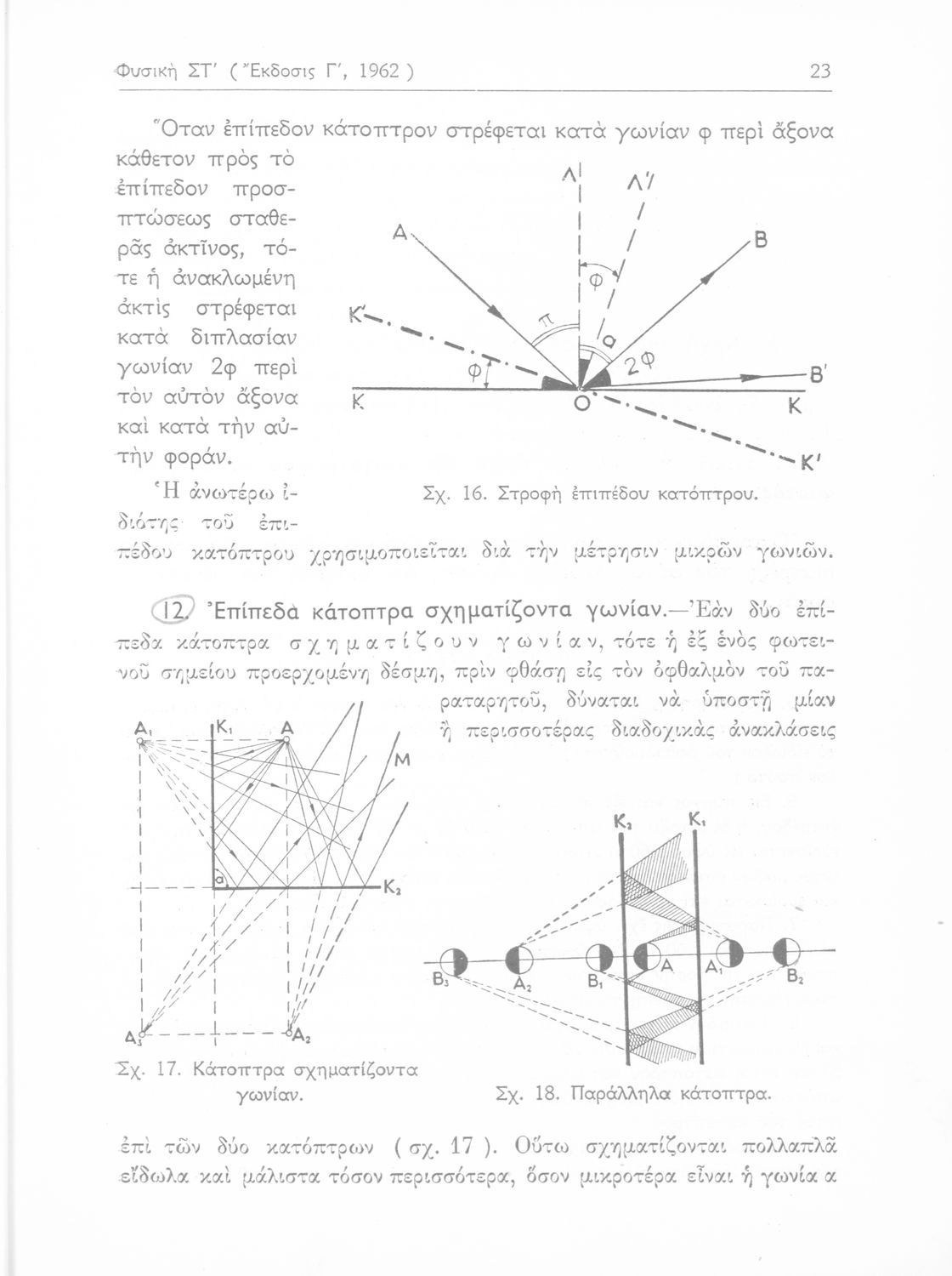 Σχολικό εγχειρίδιο Φυσικής. Το βιβλίο χωρίζεται σε τέσσερα μέρη καθένα από τα οποία περιγράφει συγκεκριμένο πεδίο της φυσικής επιστήμης (οπτική, μαγνητισμός, ηλεκτρισμός κλπ.). Ερμηνεύονται τα φυσικά μεγέθη, δίνονται ορισμοί και διευκρινίζονται οι θεμελιώδεις έννοιες για όλα τα πεδία ξεχωριστά.