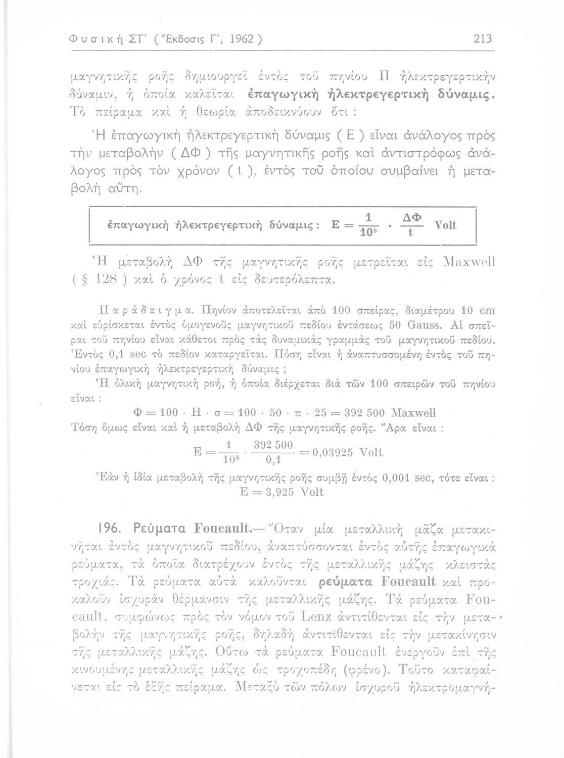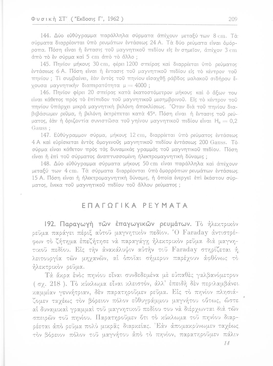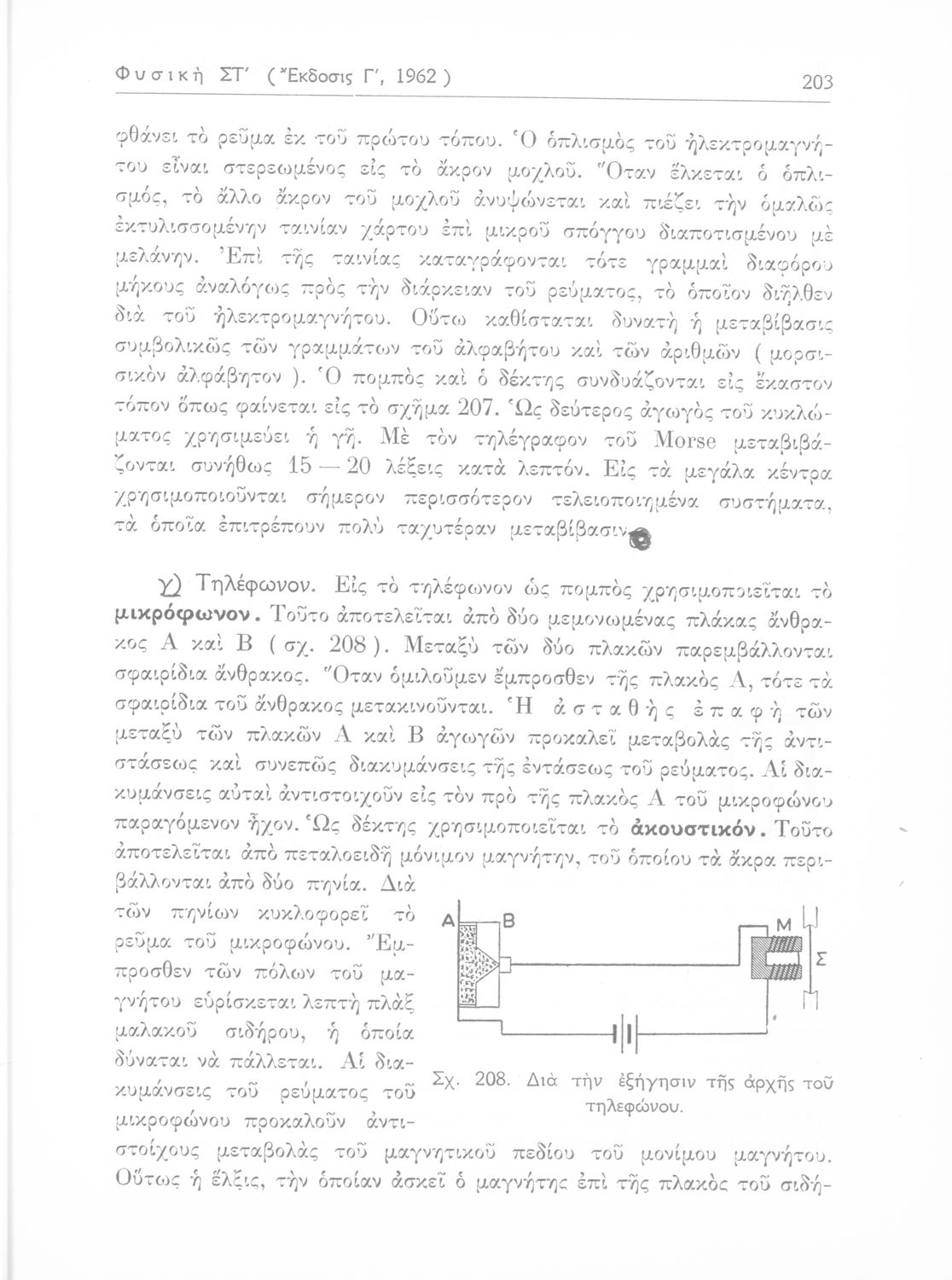 Σχολικό εγχειρίδιο Φυσικής. Το βιβλίο χωρίζεται σε τέσσερα μέρη καθένα από τα οποία περιγράφει συγκεκριμένο πεδίο της φυσικής επιστήμης (οπτική, μαγνητισμός, ηλεκτρισμός κλπ.). Ερμηνεύονται τα φυσικά μεγέθη, δίνονται ορισμοί και διευκρινίζονται οι θεμελιώδεις έννοιες για όλα τα πεδία ξεχωριστά.