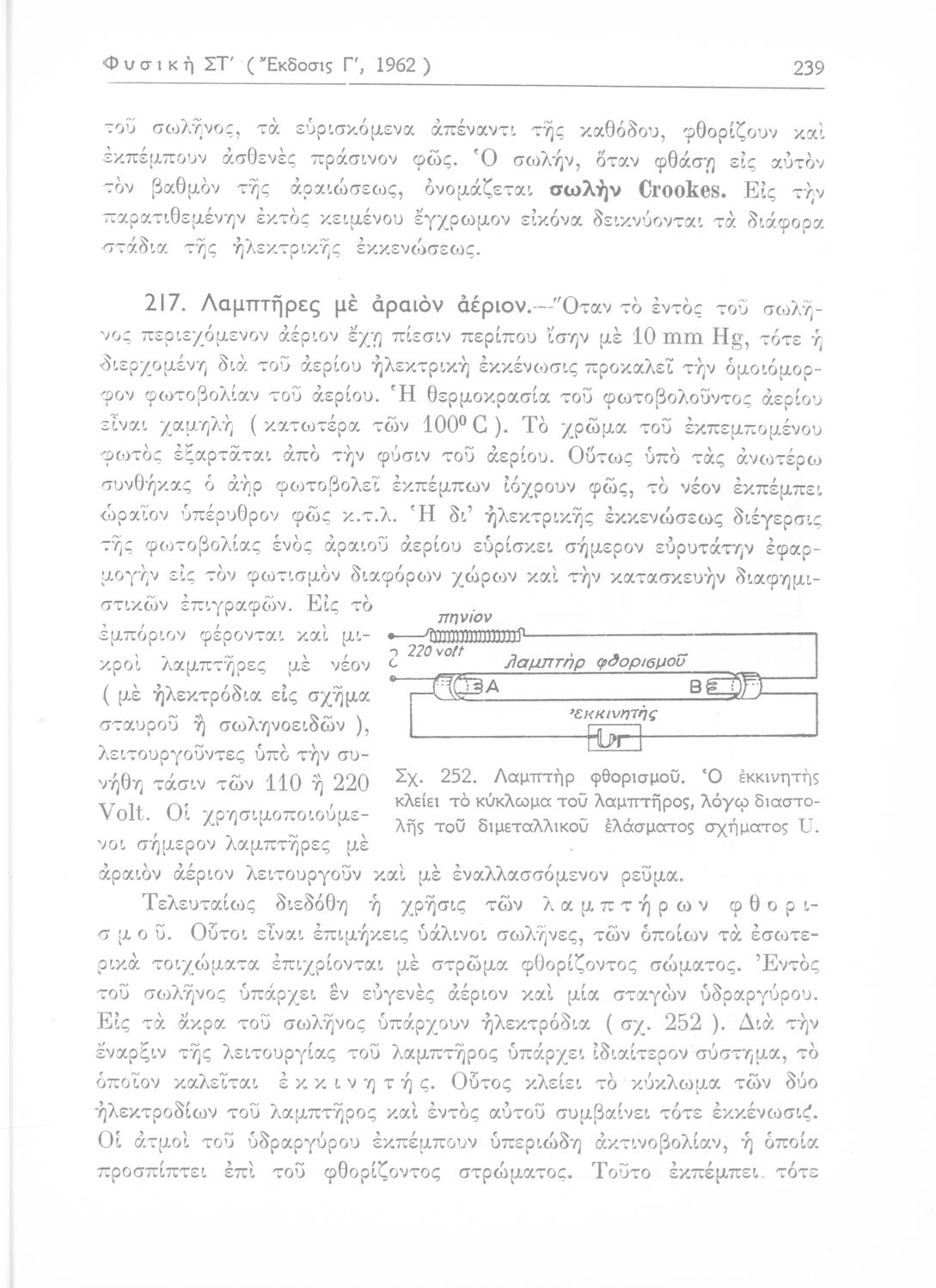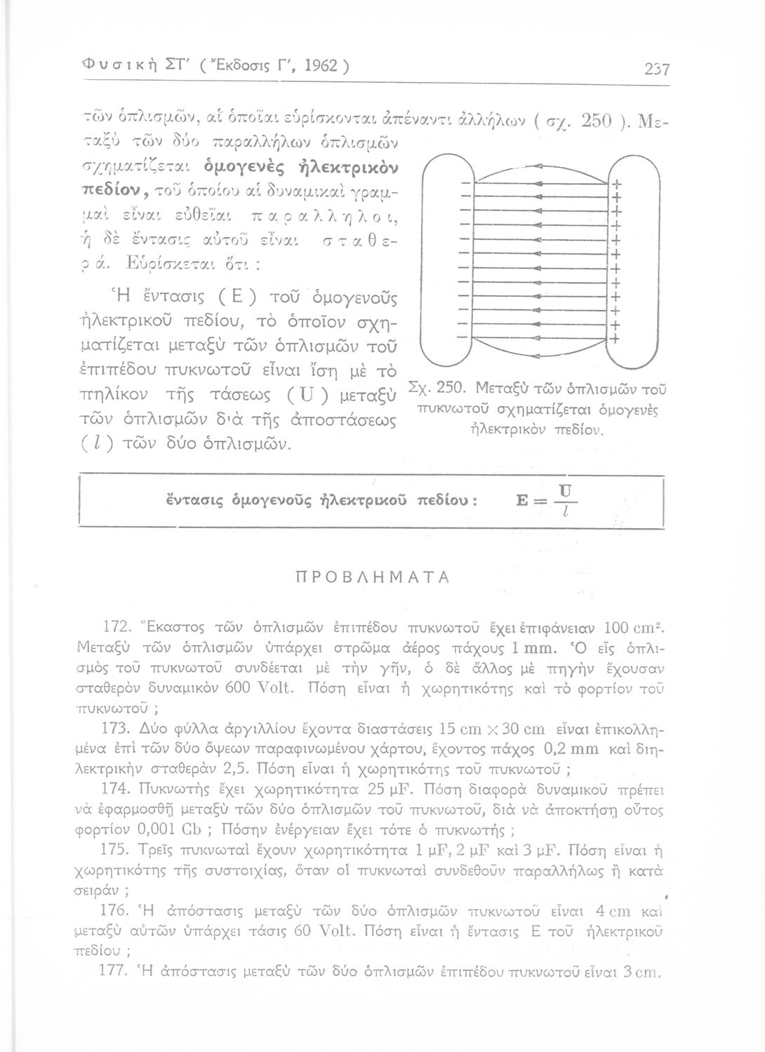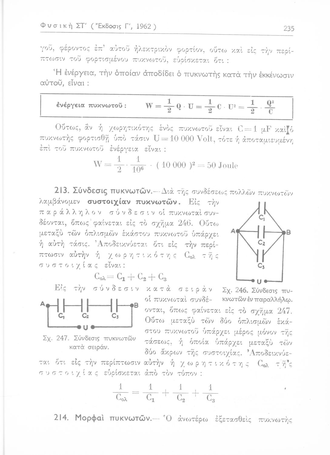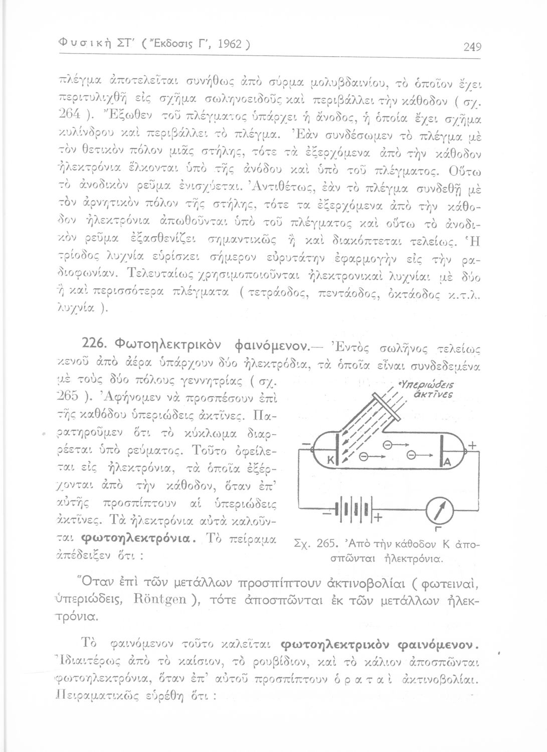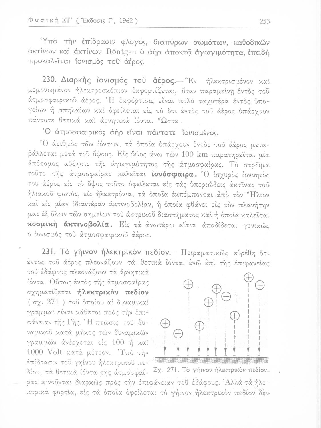 Σχολικό εγχειρίδιο Φυσικής. Το βιβλίο χωρίζεται σε τέσσερα μέρη καθένα από τα οποία περιγράφει συγκεκριμένο πεδίο της φυσικής επιστήμης (οπτική, μαγνητισμός, ηλεκτρισμός κλπ.). Ερμηνεύονται τα φυσικά μεγέθη, δίνονται ορισμοί και διευκρινίζονται οι θεμελιώδεις έννοιες για όλα τα πεδία ξεχωριστά.