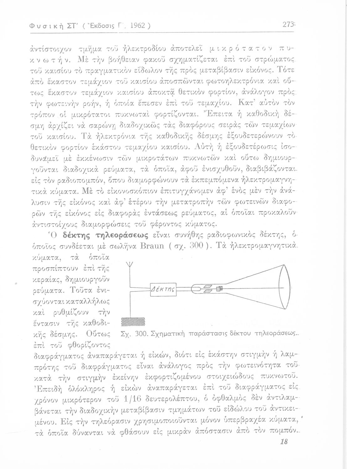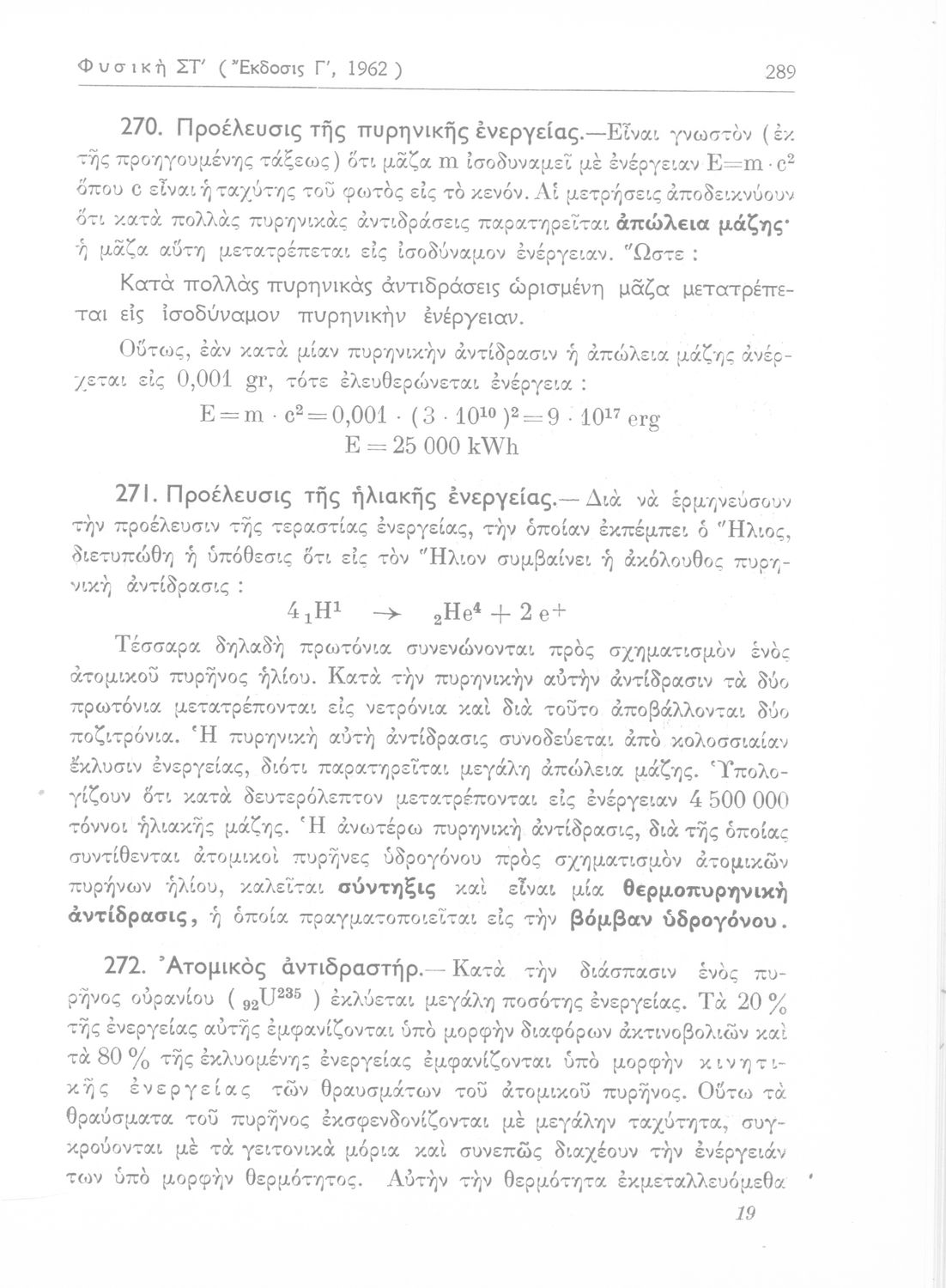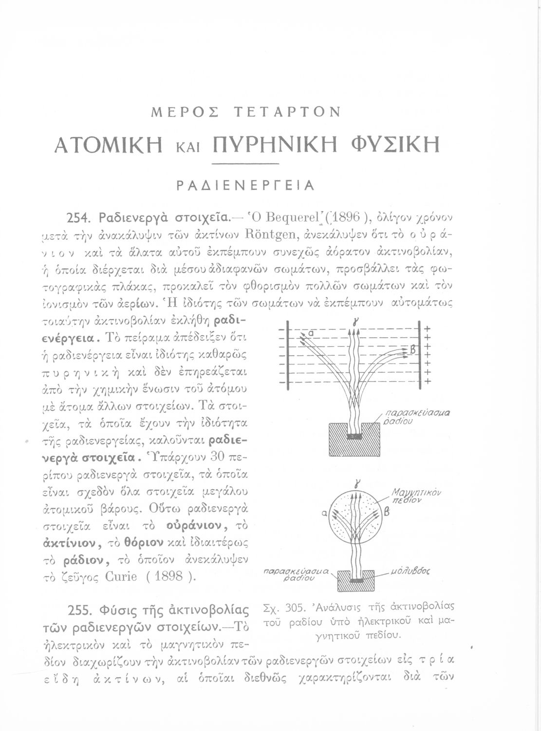 Σχολικό εγχειρίδιο Φυσικής. Το βιβλίο χωρίζεται σε τέσσερα μέρη καθένα από τα οποία περιγράφει συγκεκριμένο πεδίο της φυσικής επιστήμης (οπτική, μαγνητισμός, ηλεκτρισμός κλπ.). Ερμηνεύονται τα φυσικά μεγέθη, δίνονται ορισμοί και διευκρινίζονται οι θεμελιώδεις έννοιες για όλα τα πεδία ξεχωριστά.