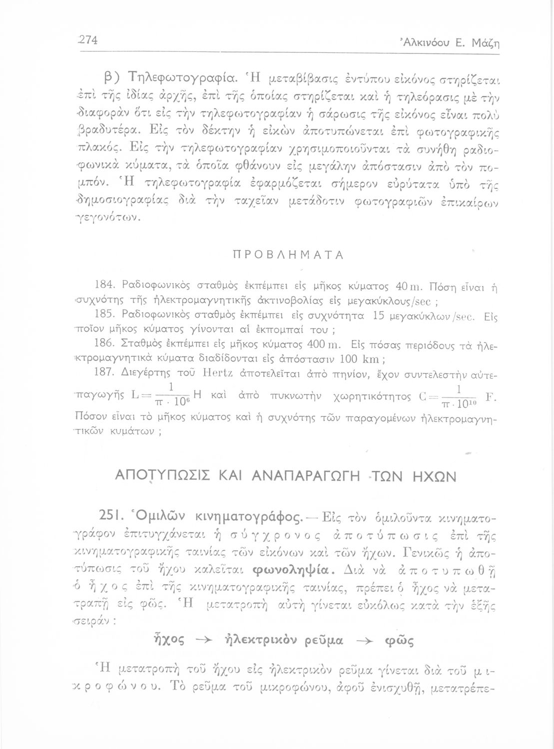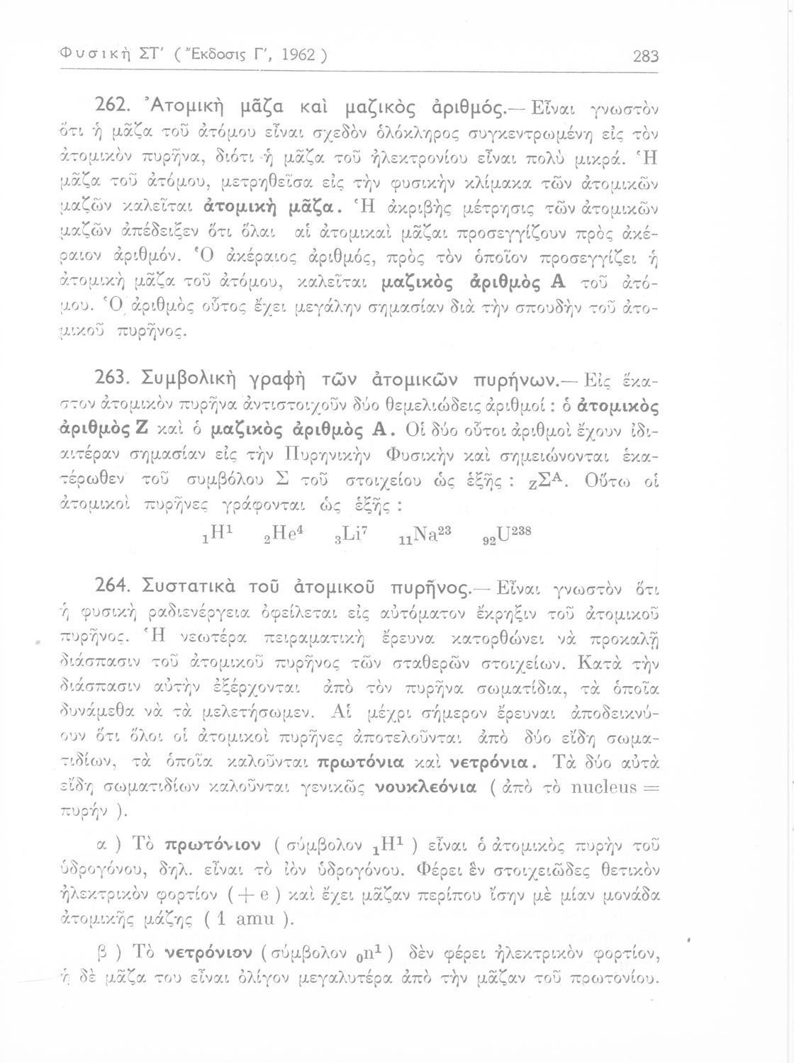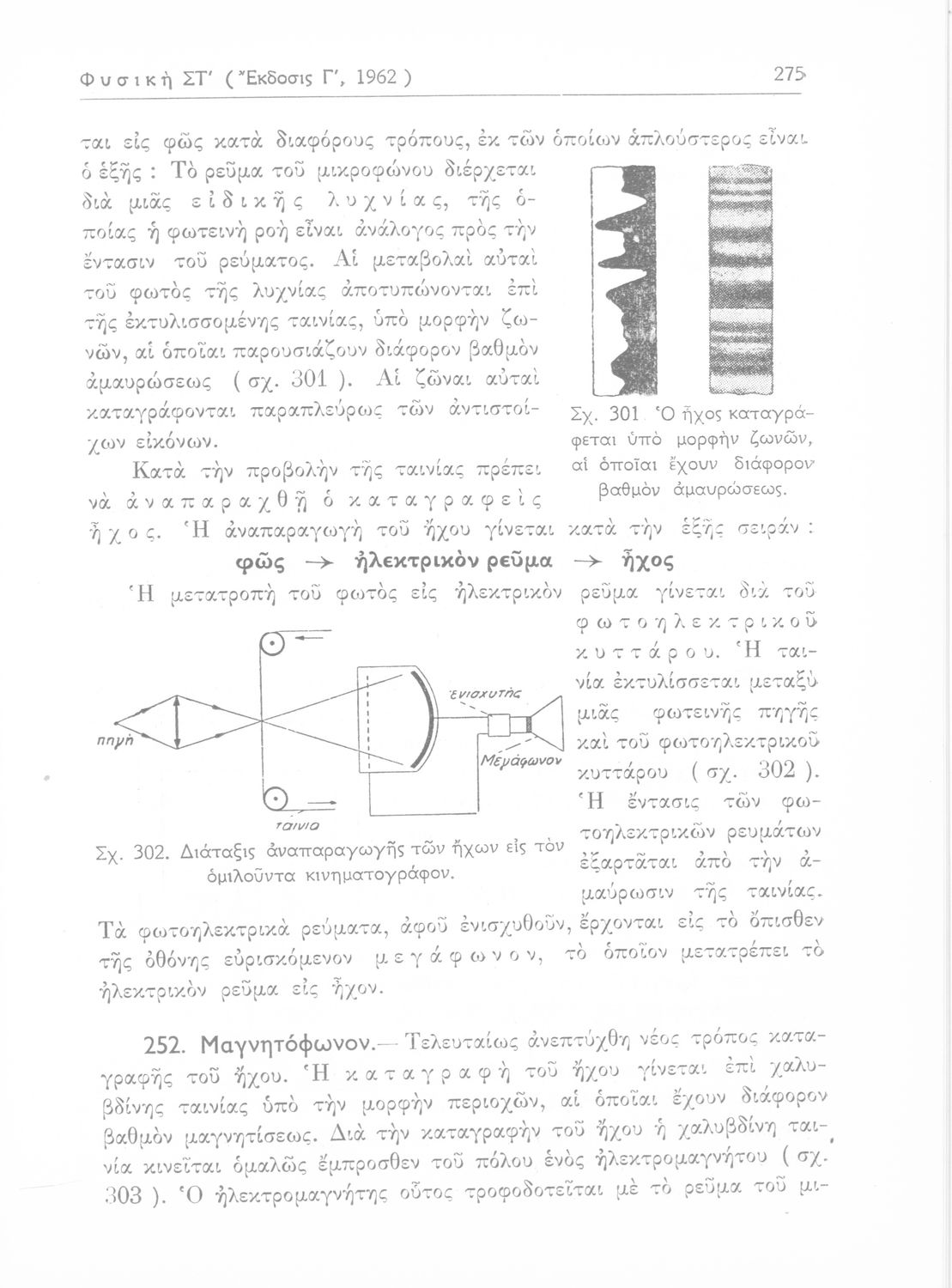 Σχολικό εγχειρίδιο Φυσικής. Το βιβλίο χωρίζεται σε τέσσερα μέρη καθένα από τα οποία περιγράφει συγκεκριμένο πεδίο της φυσικής επιστήμης (οπτική, μαγνητισμός, ηλεκτρισμός κλπ.). Ερμηνεύονται τα φυσικά μεγέθη, δίνονται ορισμοί και διευκρινίζονται οι θεμελιώδεις έννοιες για όλα τα πεδία ξεχωριστά.
