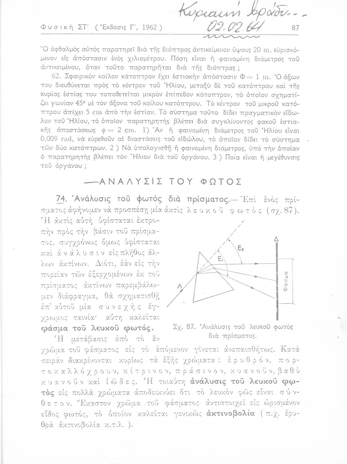 Φυσική δια την ΣΤ΄ τάξιν των Εξαταξίων Γυμνασίων