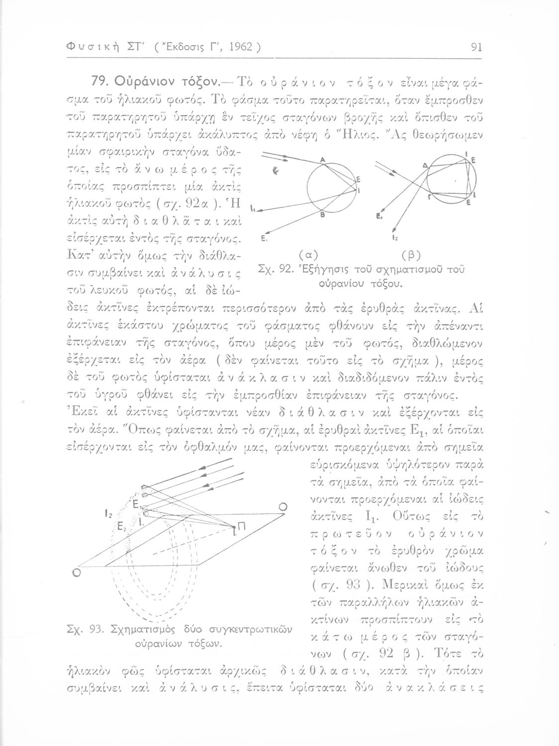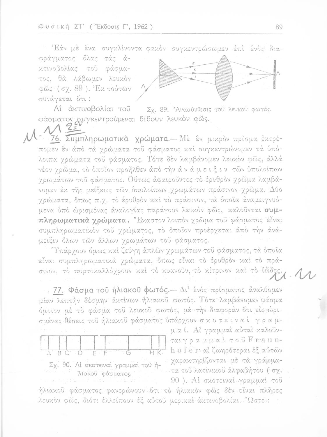 Σχολικό εγχειρίδιο Φυσικής. Το βιβλίο χωρίζεται σε τέσσερα μέρη καθένα από τα οποία περιγράφει συγκεκριμένο πεδίο της φυσικής επιστήμης (οπτική, μαγνητισμός, ηλεκτρισμός κλπ.). Ερμηνεύονται τα φυσικά μεγέθη, δίνονται ορισμοί και διευκρινίζονται οι θεμελιώδεις έννοιες για όλα τα πεδία ξεχωριστά.