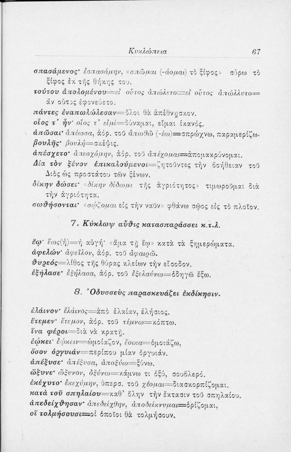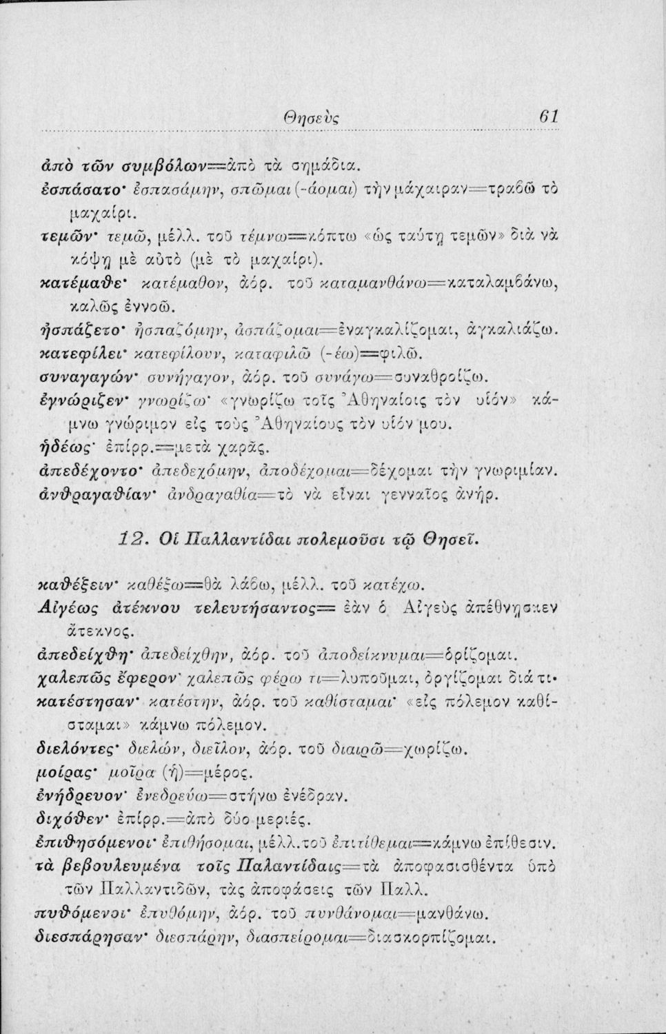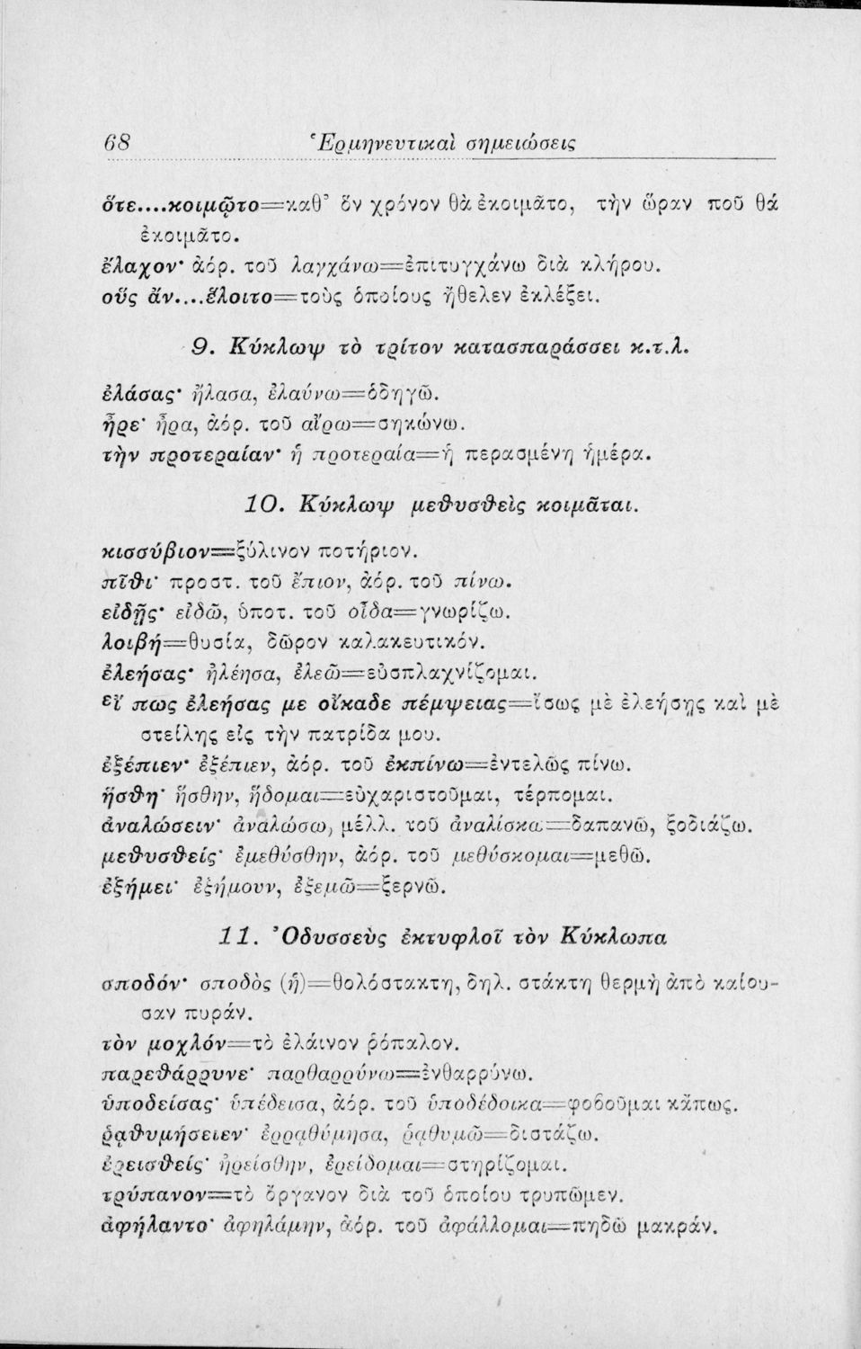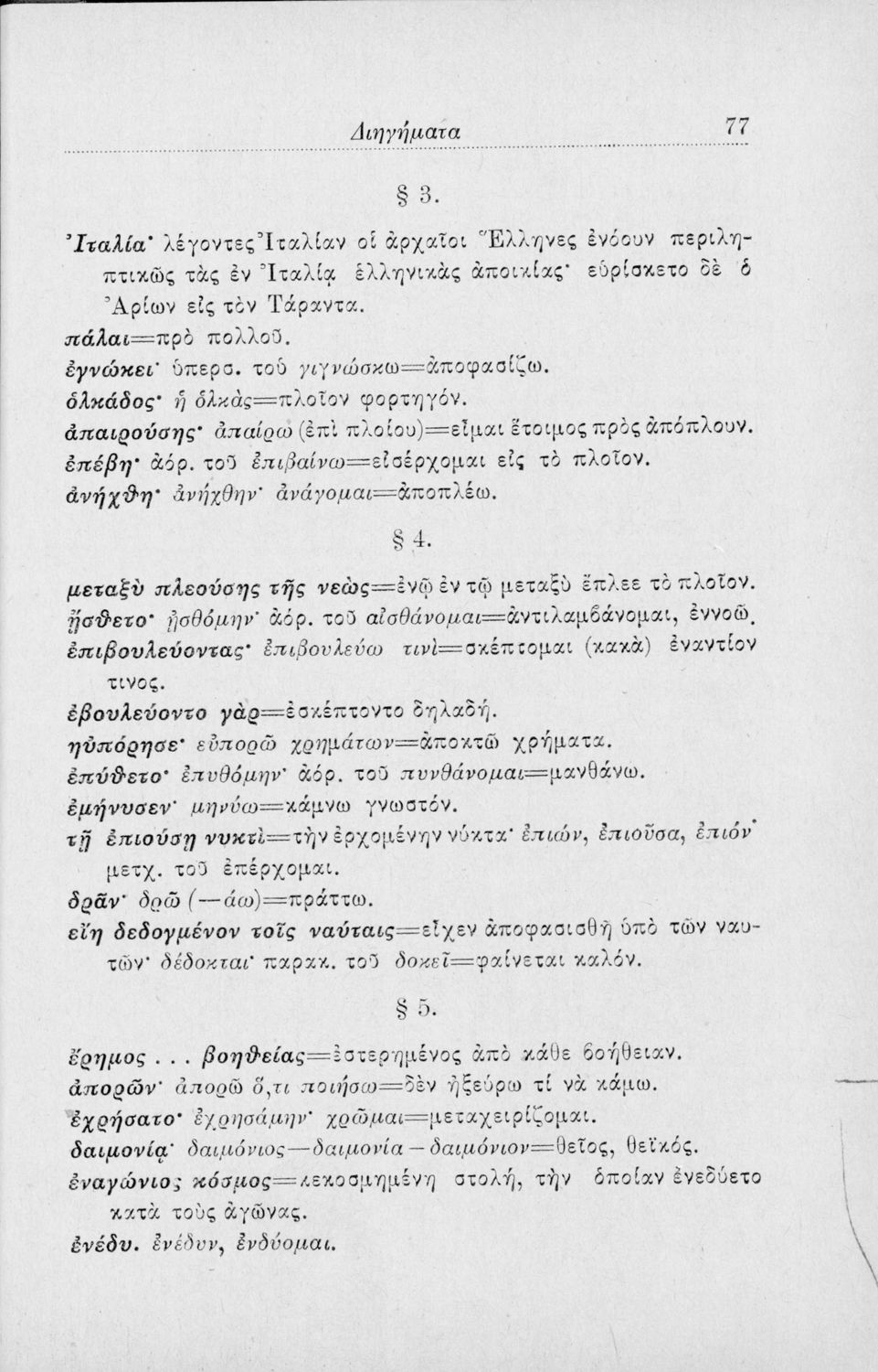 Σχολικό εγχειρίδιο Αρχαίων Ελληνικών Γ' Ελληνικού Σχολείου που περιλαμβάνει γραμματική της αρχαίας ελληνικής, αποσπάσματα από το έργο του Ξενοφώντα Ελληνικά και τα έργα του Λουκιανού Ενύπνιον και Ανάχαρσις, ...