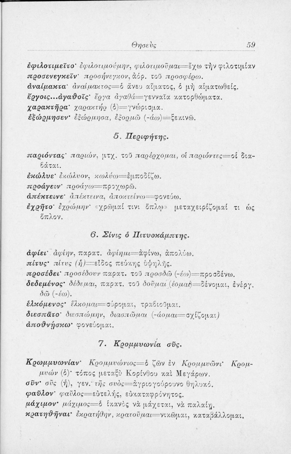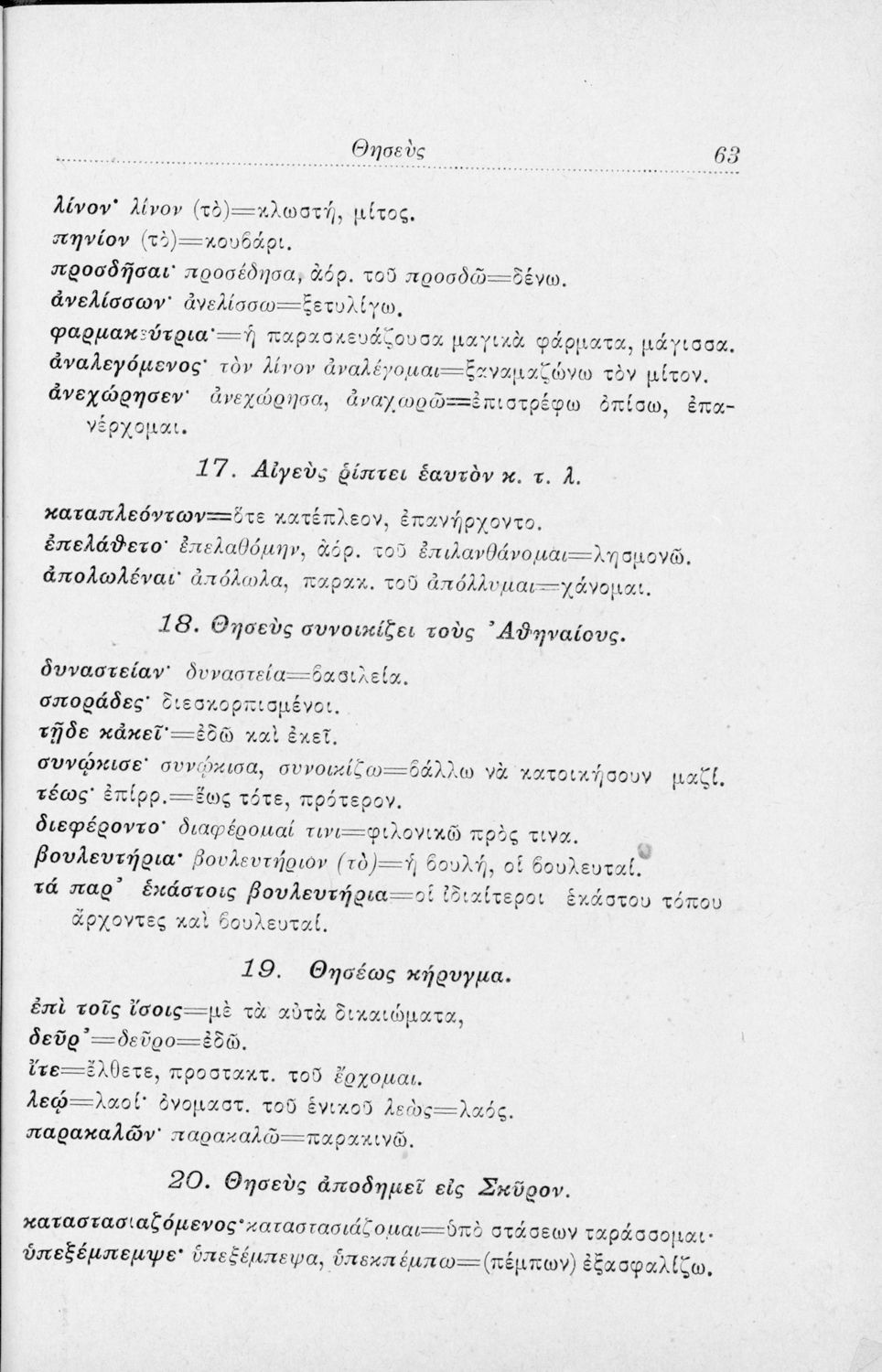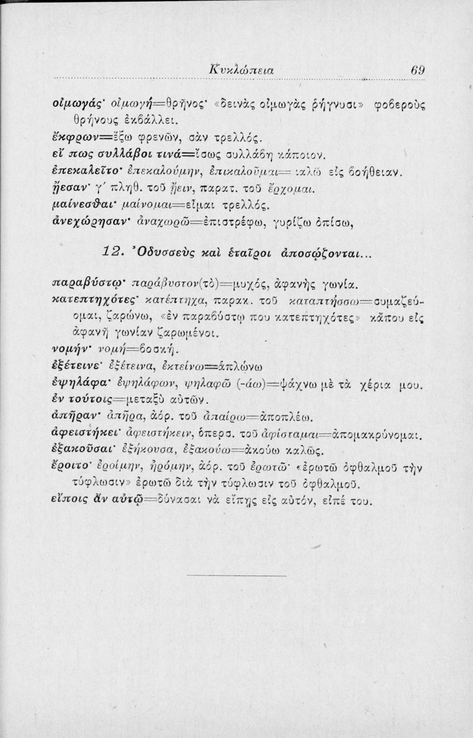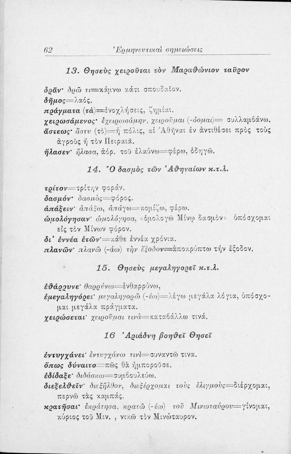 Σχολικό εγχειρίδιο Αρχαίων Ελληνικών Γ' Ελληνικού Σχολείου που περιλαμβάνει γραμματική της αρχαίας ελληνικής, αποσπάσματα από το έργο του Ξενοφώντα Ελληνικά και τα έργα του Λουκιανού Ενύπνιον και Ανάχαρσις, ...