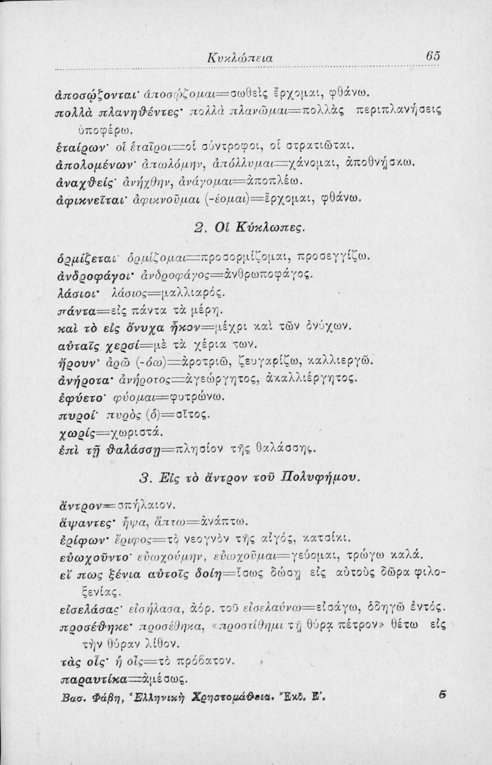 Σχολικό εγχειρίδιο Αρχαίων Ελληνικών για τις Ε΄ Δημοτικού και Α' Ελληνικού Σχολείου που περιλαμβάνει σύντομα διηγήματα εμπνευσμένα από τους μύθους του Αισώπου, περιγραφές ελληνικών πόλεων, επιστολές και ...