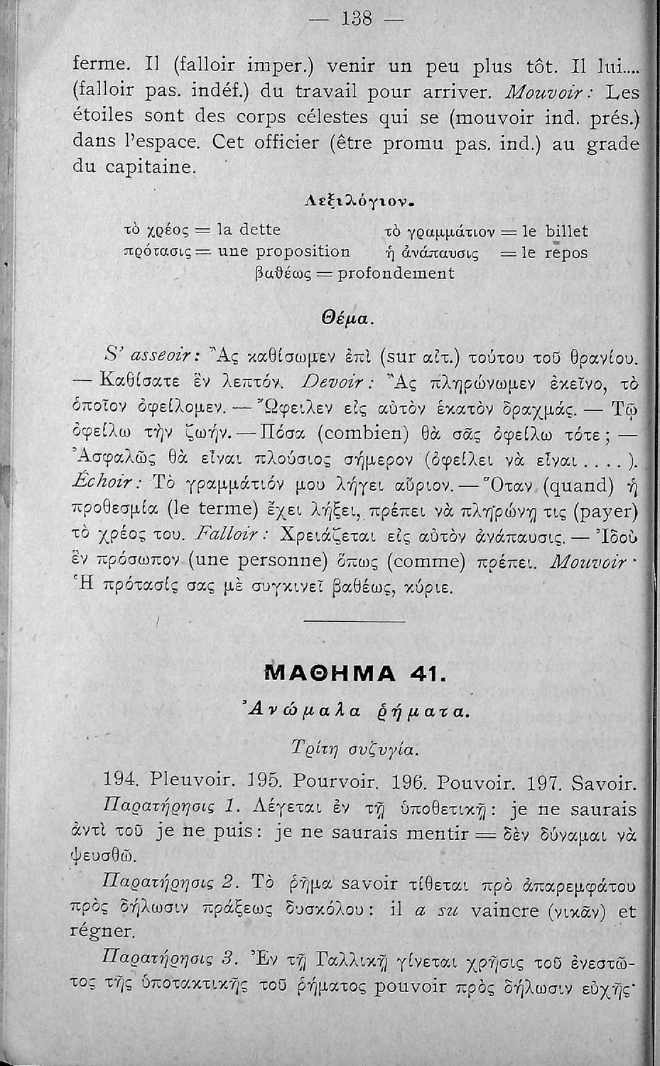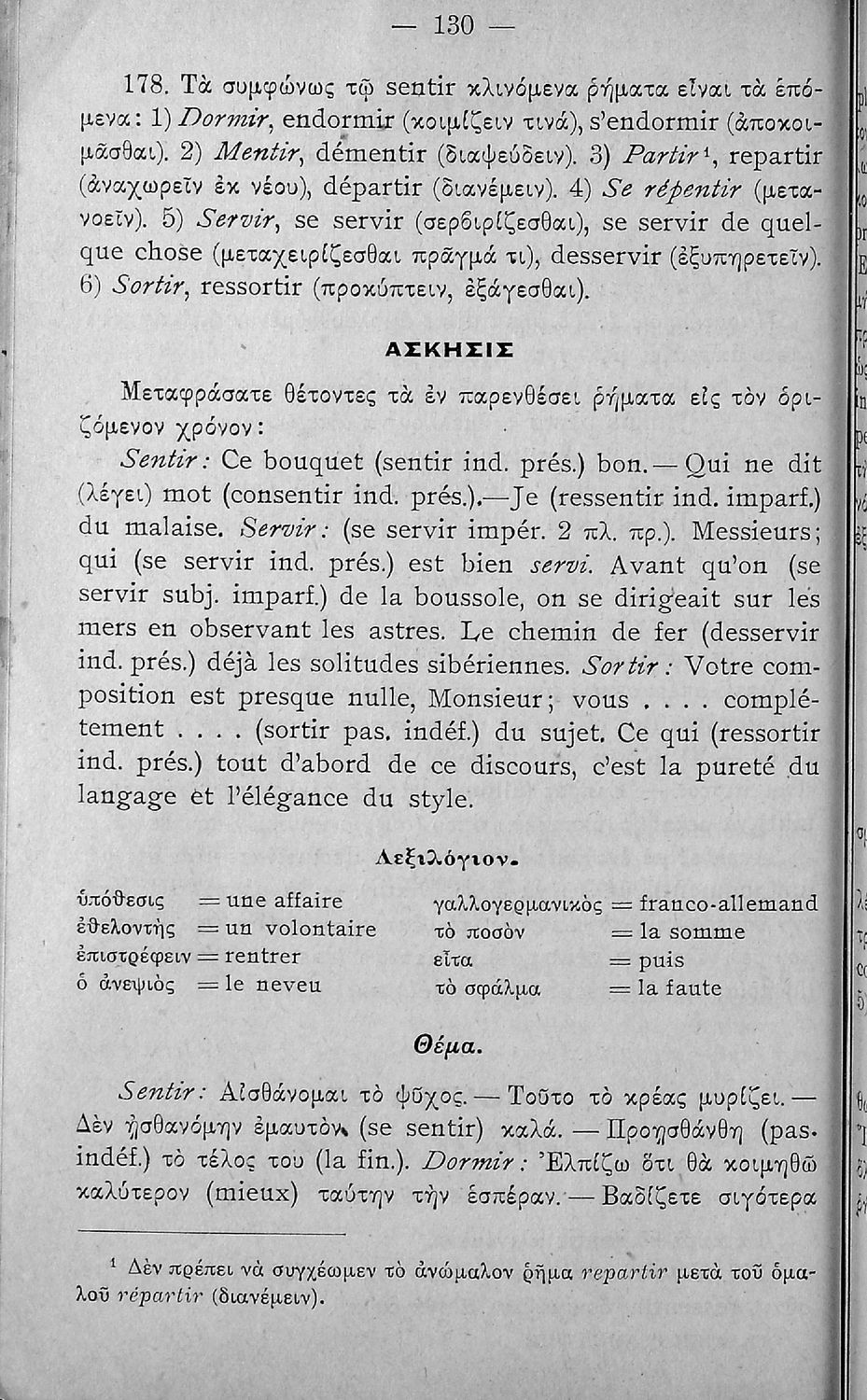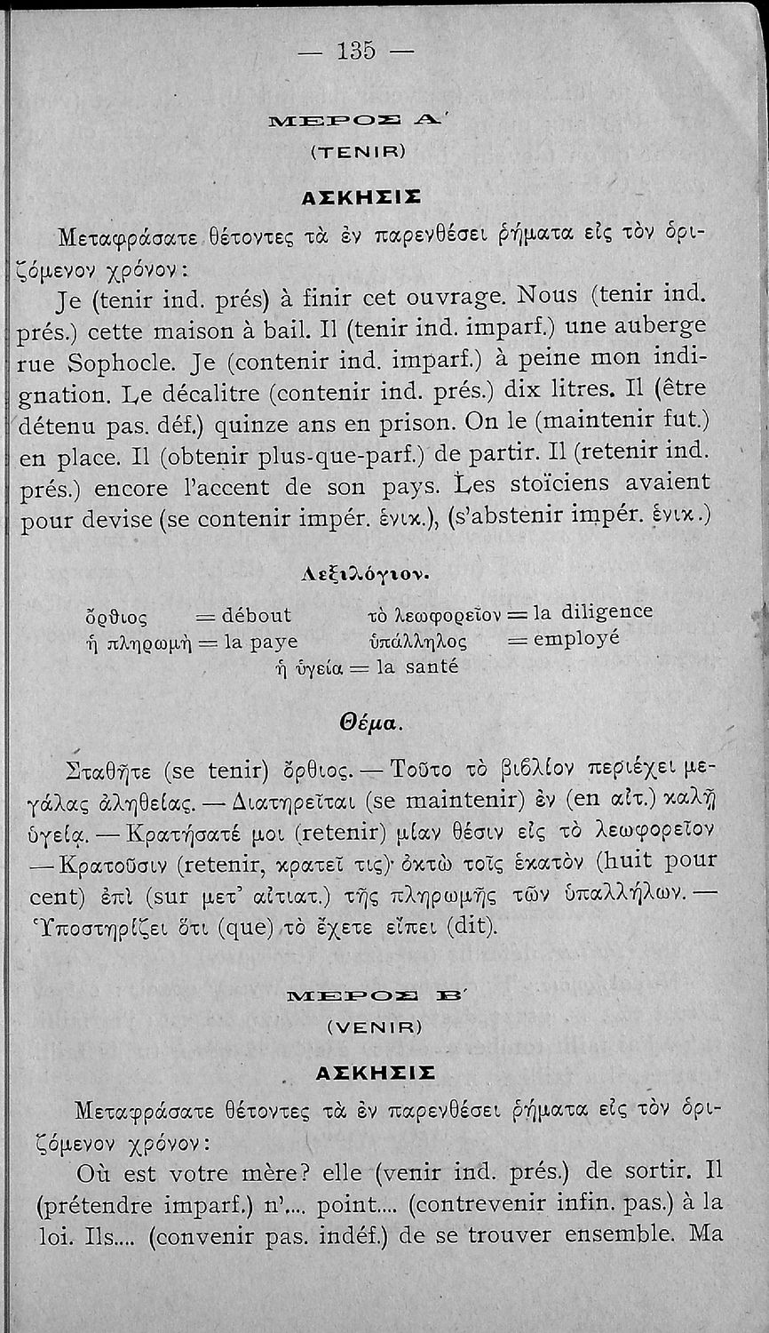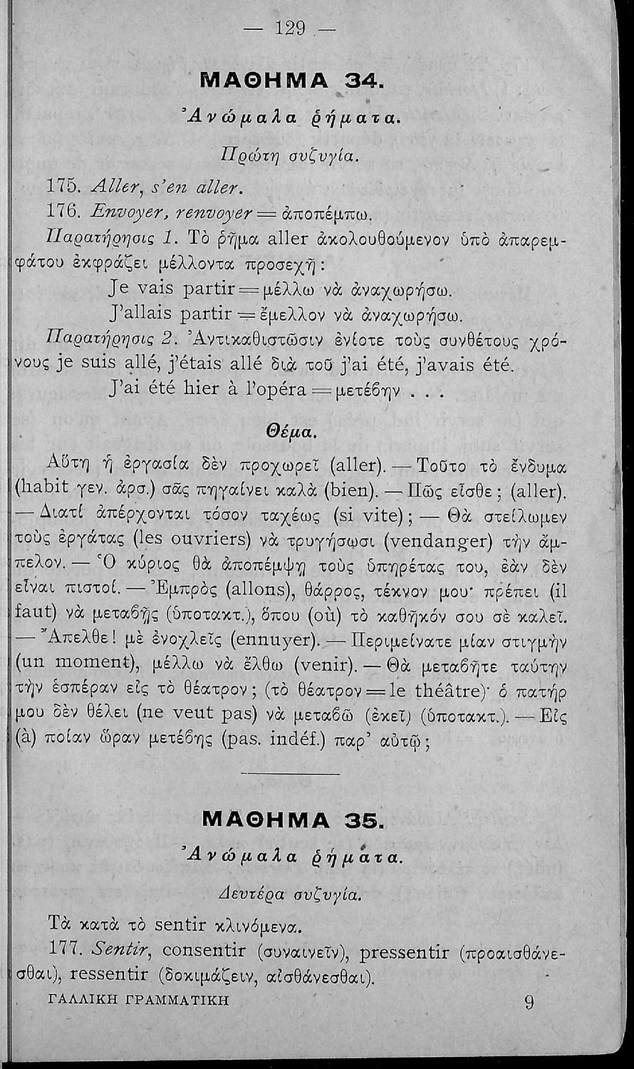 Γραμματική της Γαλλικής γλώσσας για τα Τετρατάξια Γυμνάσια, τη Γ΄ τάξη των Αστικών Σχολείων των Θηλέων και τα Διδασκαλεία της Δημοτικής Εκπαίδευσης που περιλαμβάνει θεωρία, ασκήσεις και λεξιλόγιο.